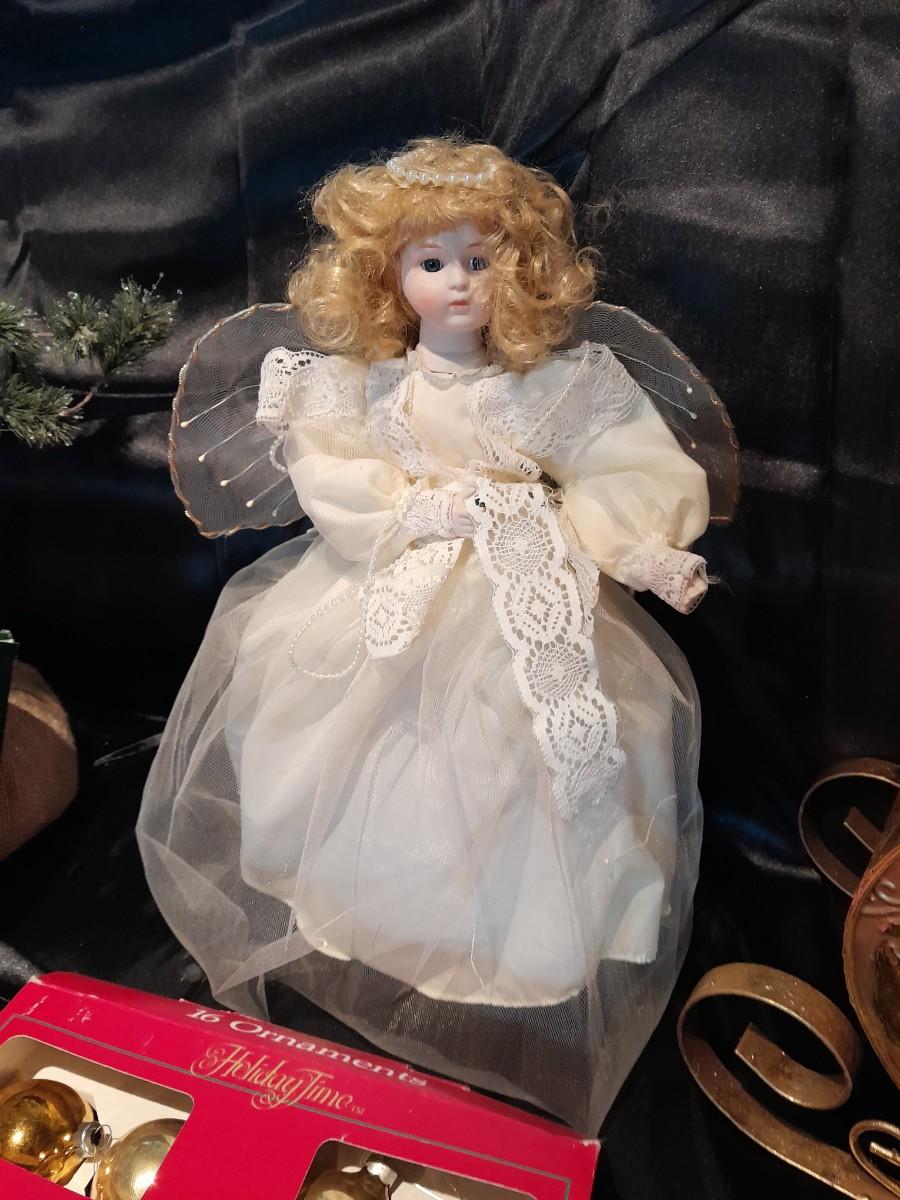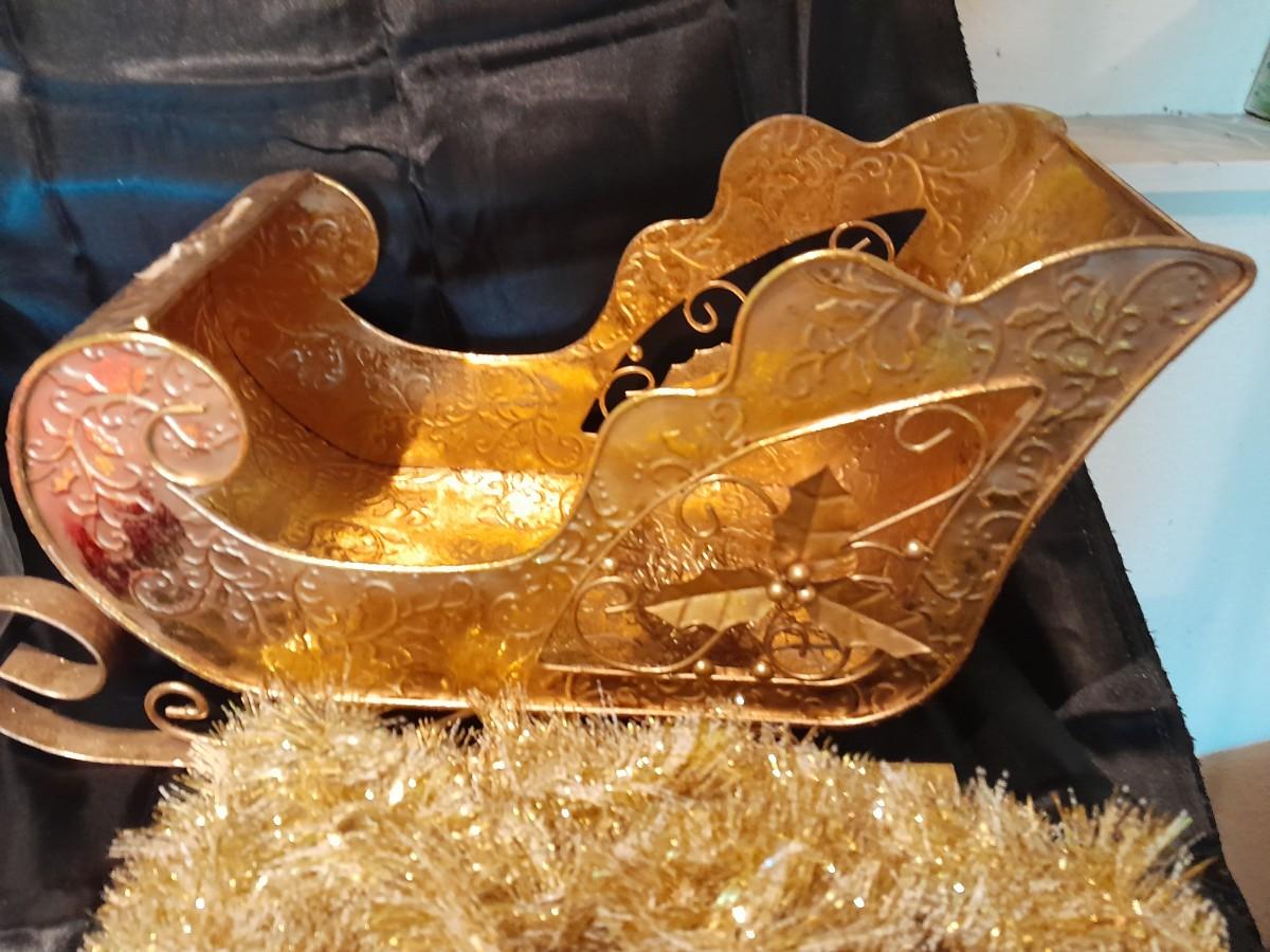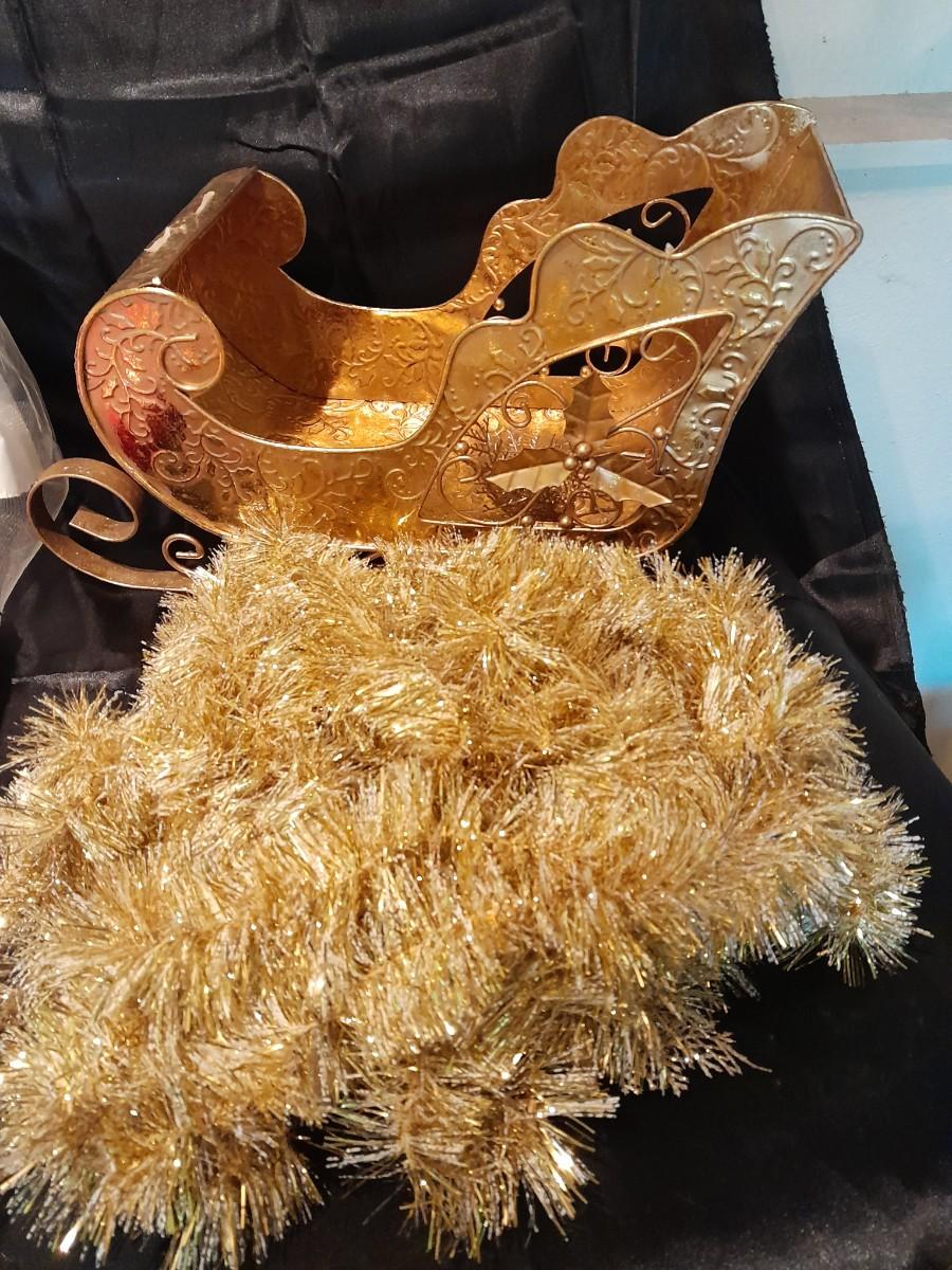 LOT 265 FIBER OPTIC FAIRY ANGEL LARGE GOLDEN SLEIGH, ORNAMENTS AND MORE