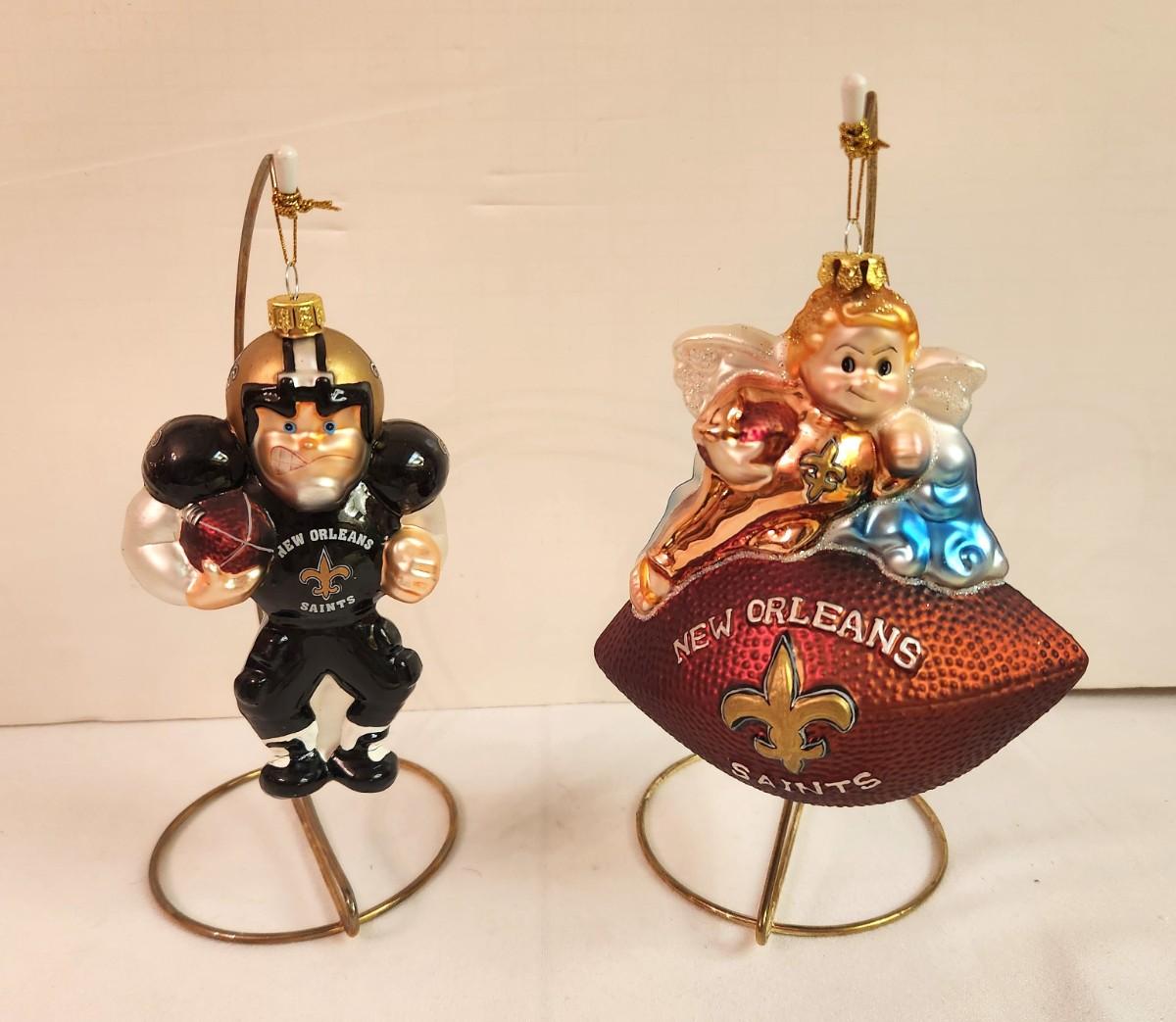 Lot #265 Lor od 2 NOLA Saints Ornaments on Stand