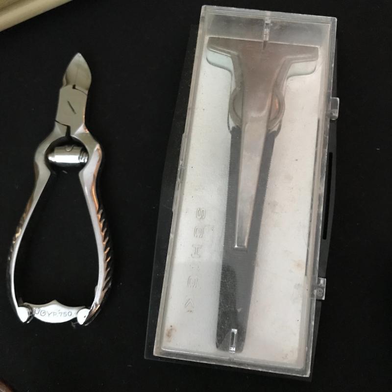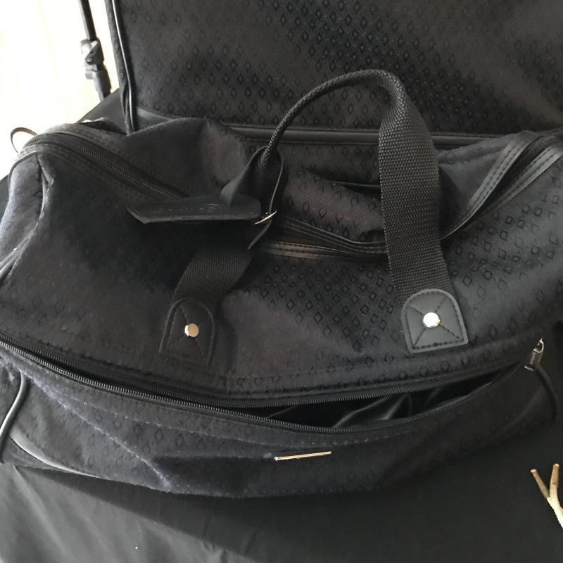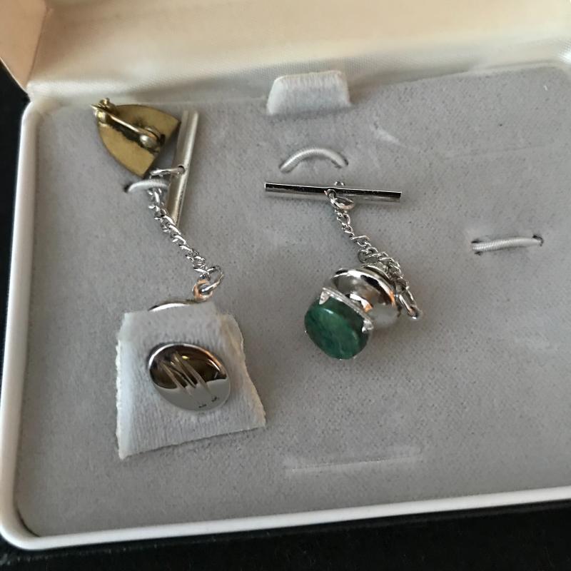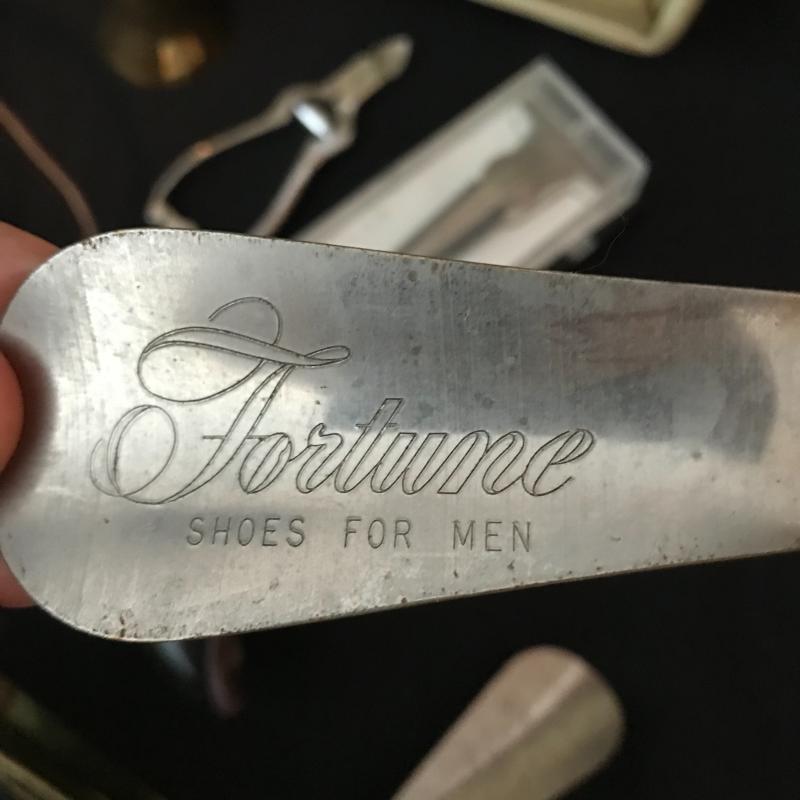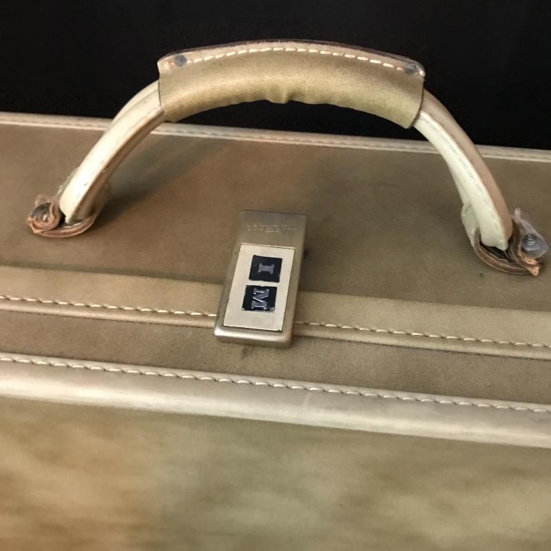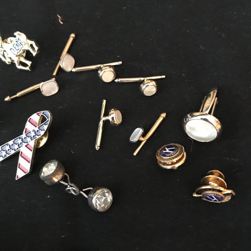 Lot includes many items for the stylish traveler including Jaguar suitcase and matching bag, vintage Hartmann suitcase (does not have key but locks can be replaced), Kiwanis Bell/pins and Mens cuff links, vintage Schivk razor in case, belt buckles, shoe horns and more. See pics. No shipping available. Local pickup only in Asheville, NC.