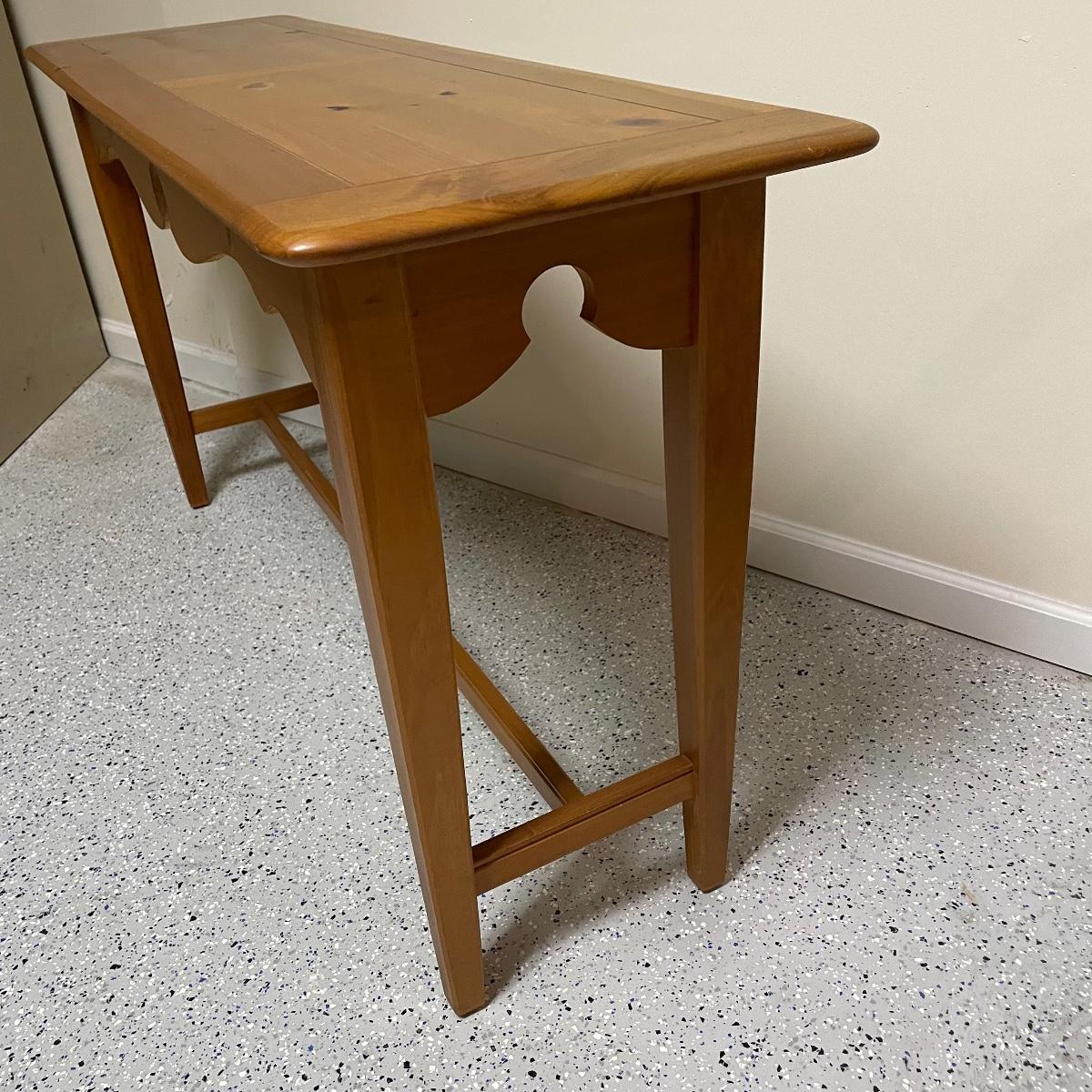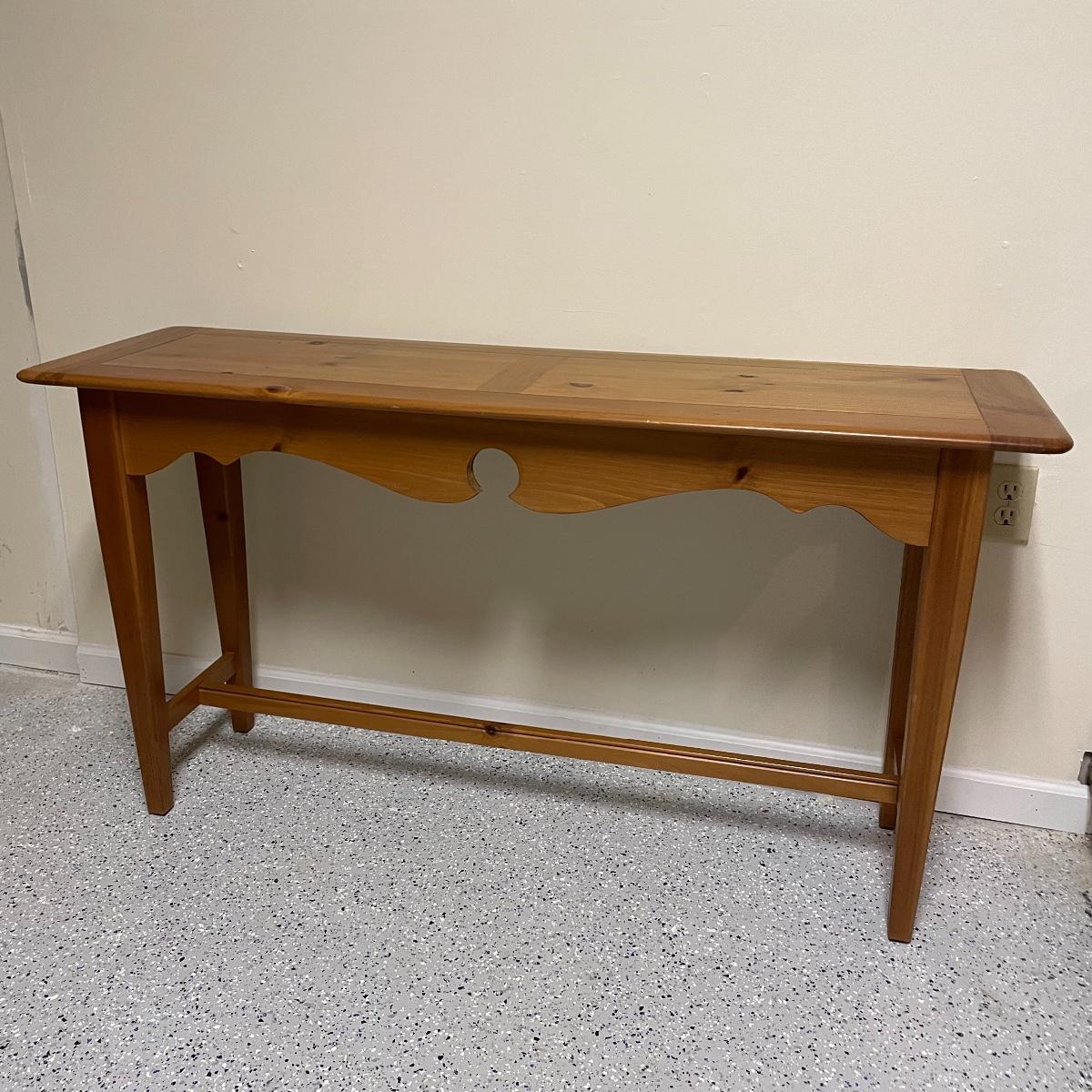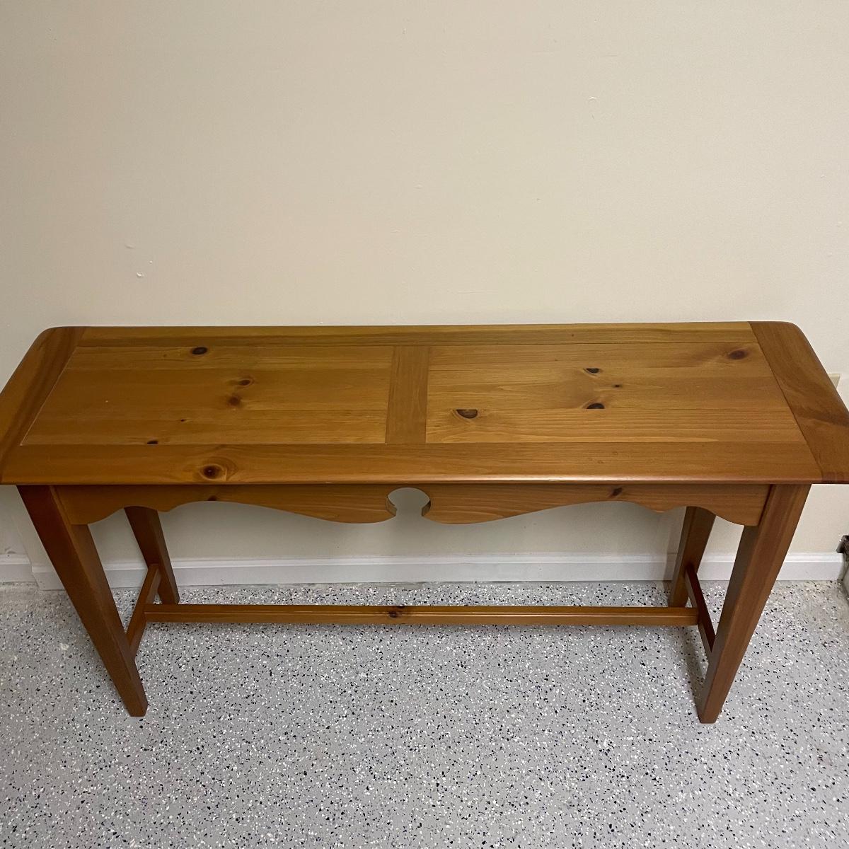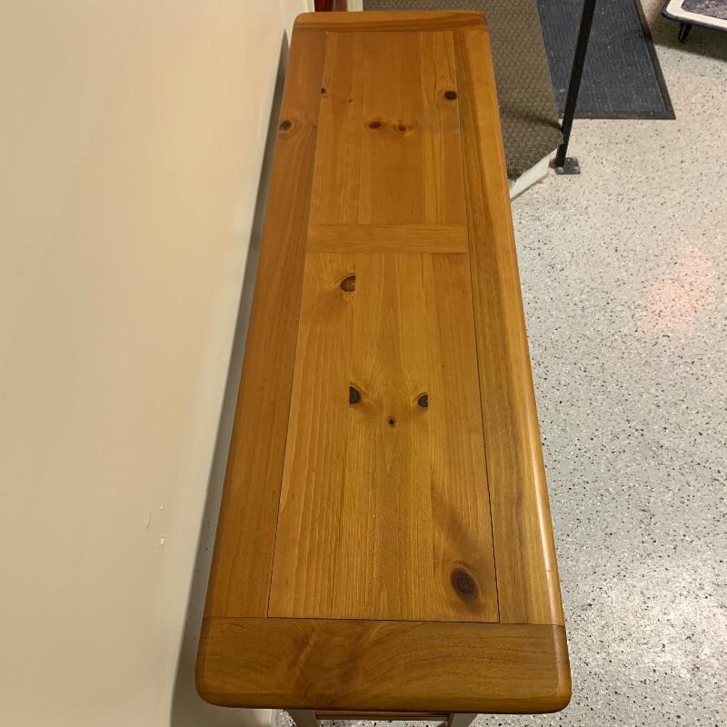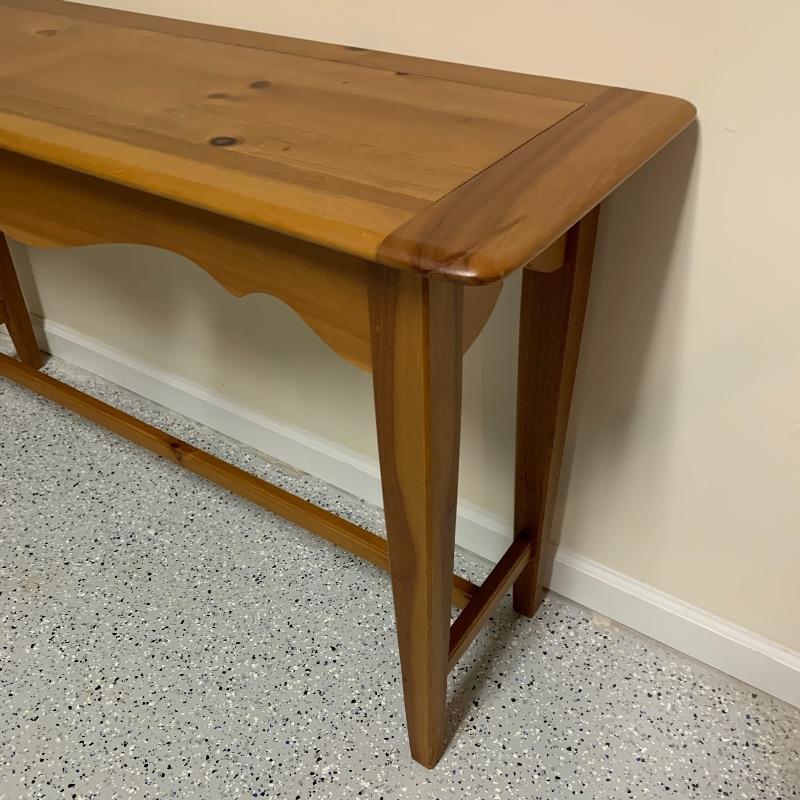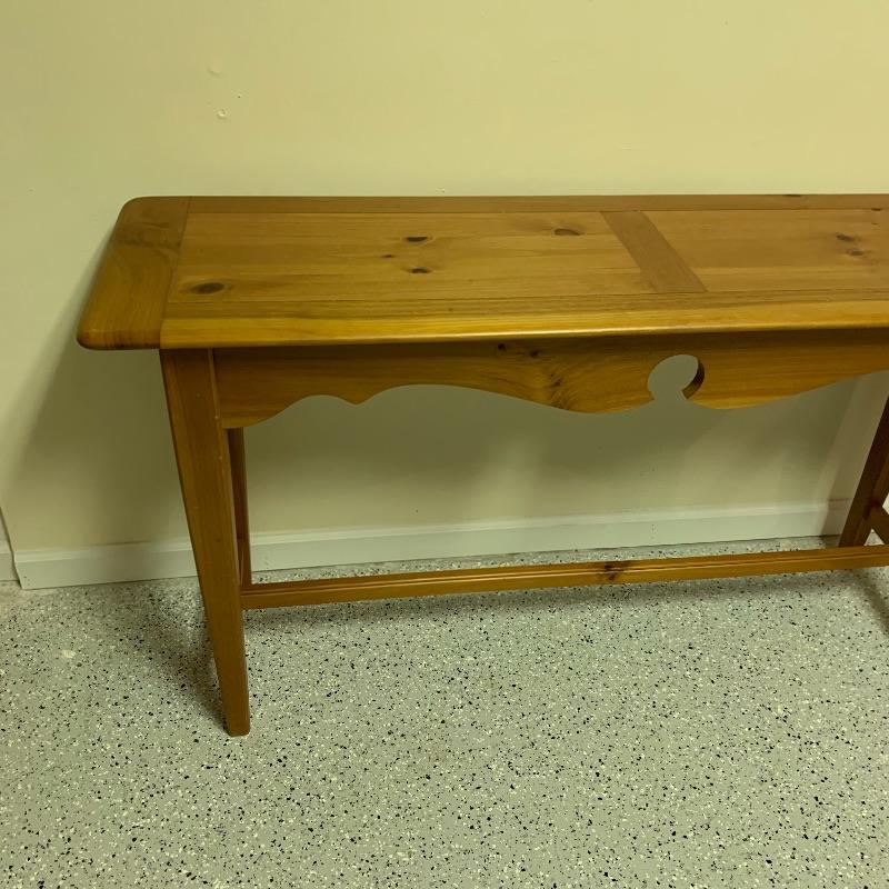 This lightweight wooden table would fit perfectly right behind your sofa to give you space to display your plants or it could be a great buffet table for your party snacks. The table measures 54.5” x 16.5” x 29.5”. Local pickup only.