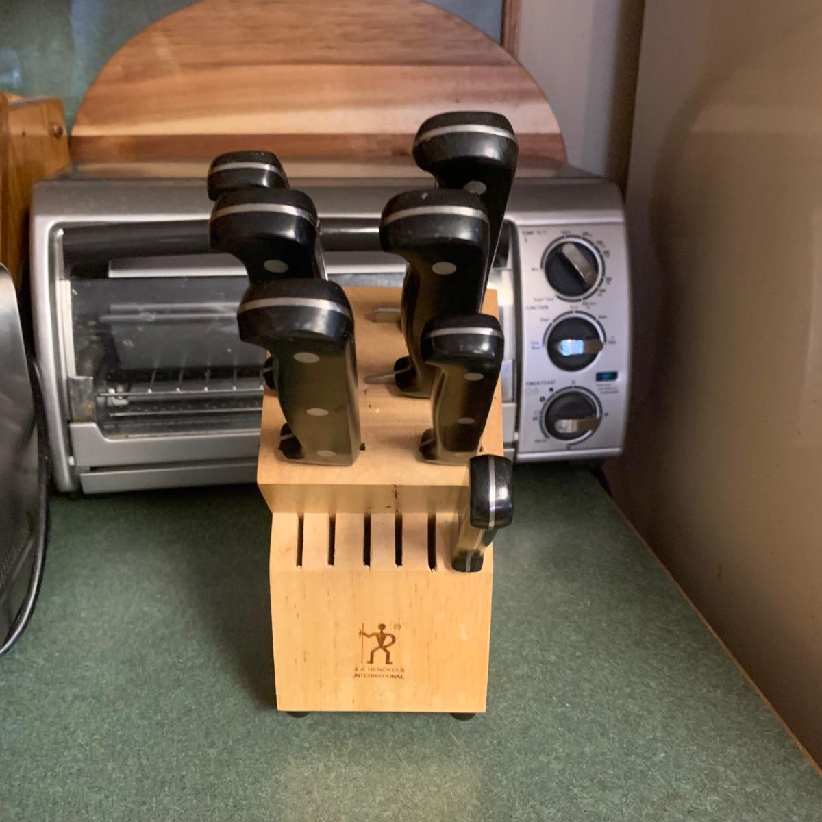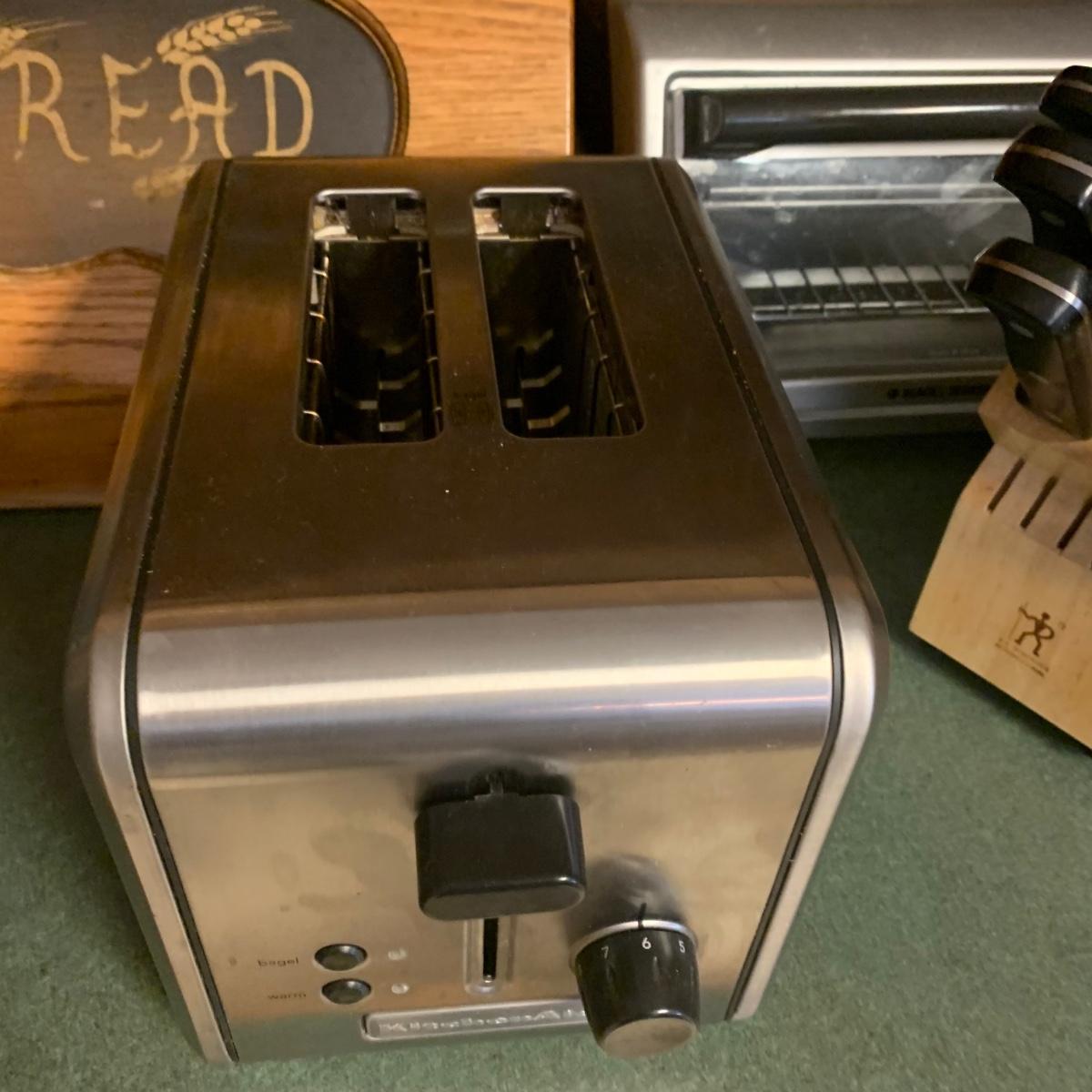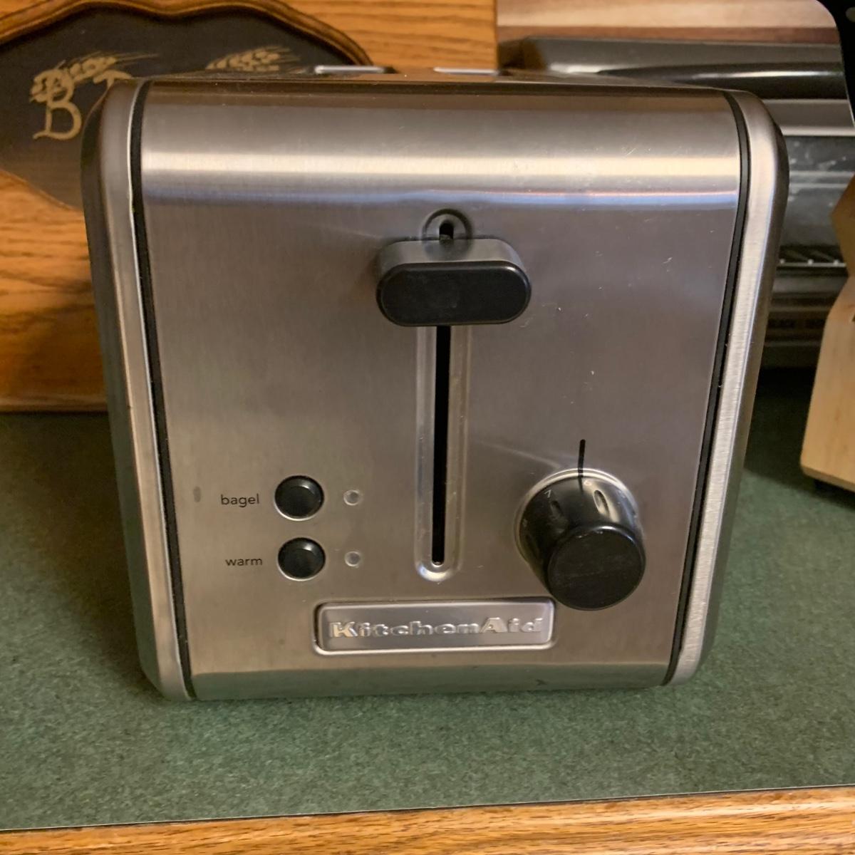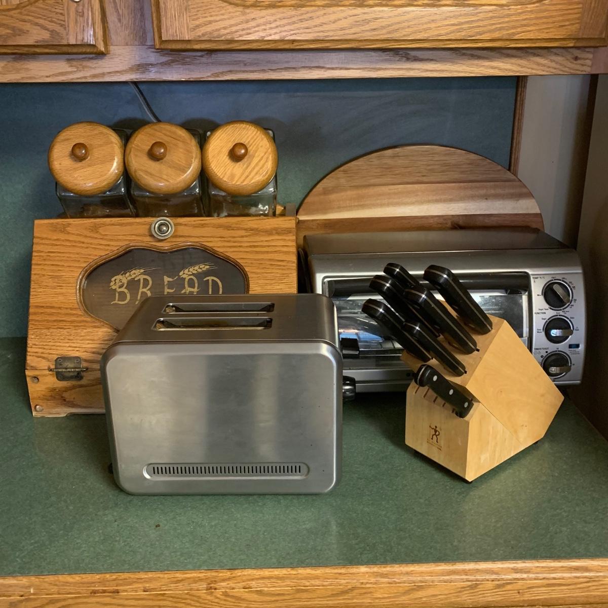 LOT 265R: Kitchen Counter Collection: Toaster, Toaster Oven, Breadbox & Knives