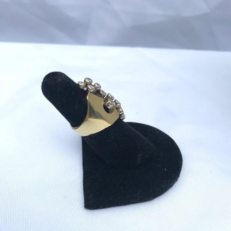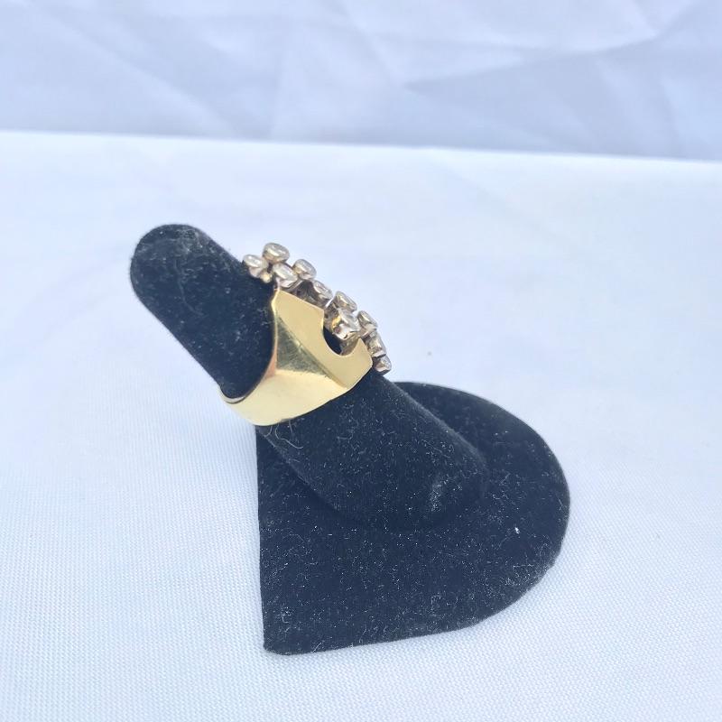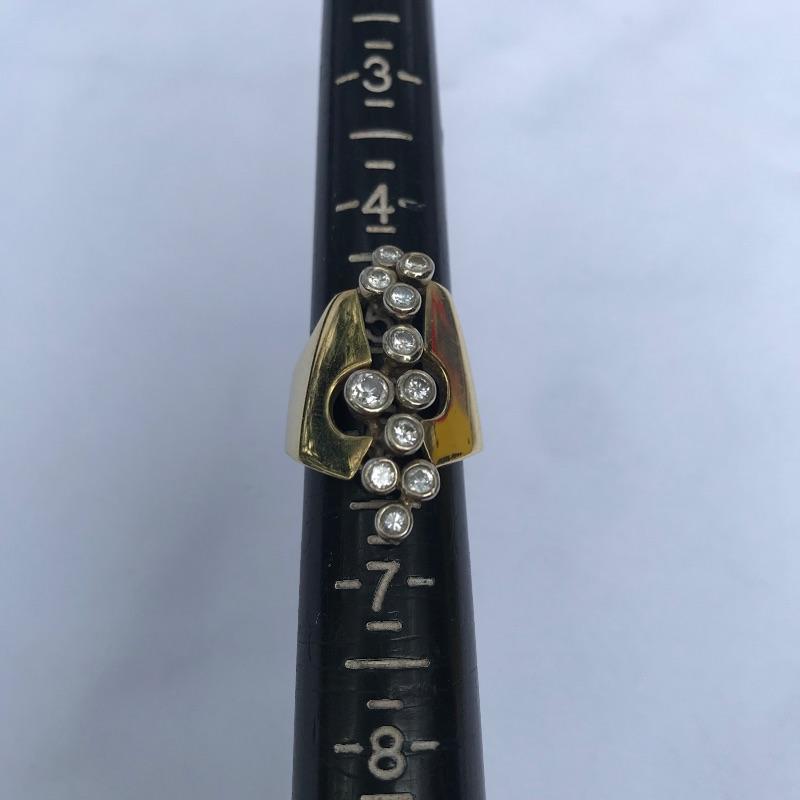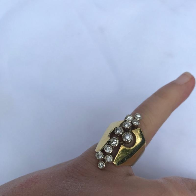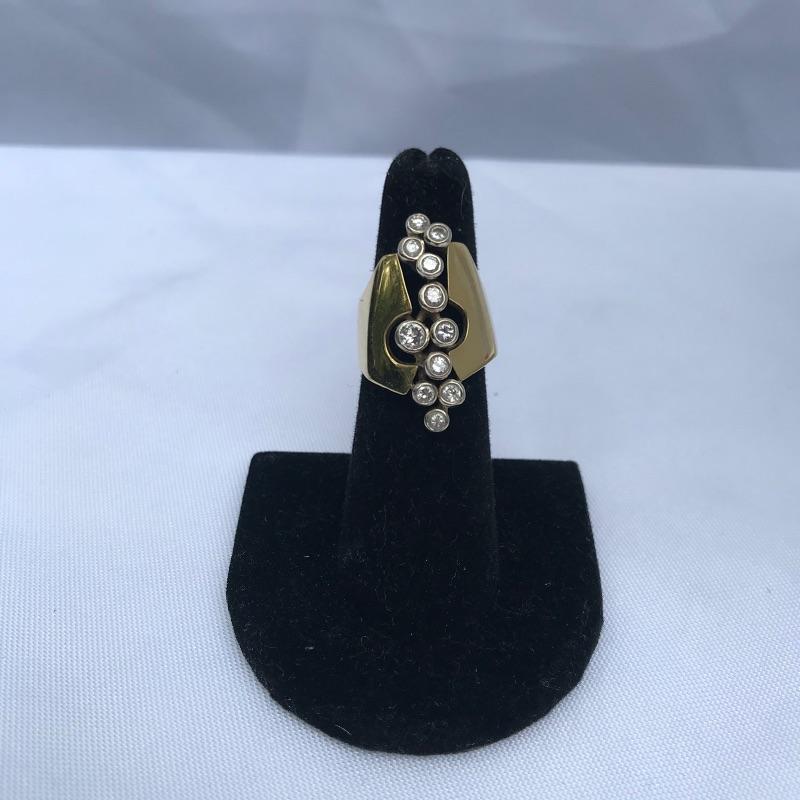 This ring is extremely versatile and precious too! Markings found are slightly blurry, but appear to be 14K. The jewels registered positive for diamonds, all eleven of them! This ring is perfect for a special occasion or an intimate evening with friends. Ring size appears somewhere around 5.5 to 6, see photos. Starting price based on melt value of gold. Shipping available.