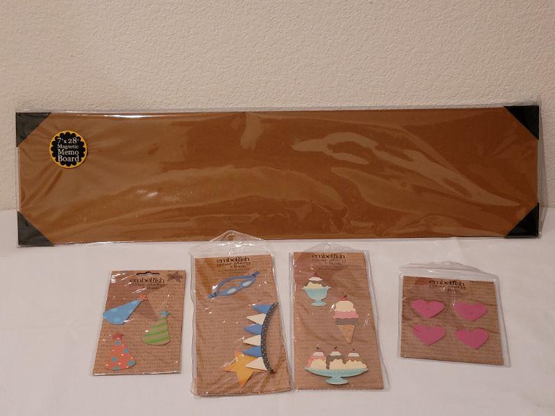 Lot 266: Embellish Your Story Magnet Memo Board and (4) Packages of Magnets