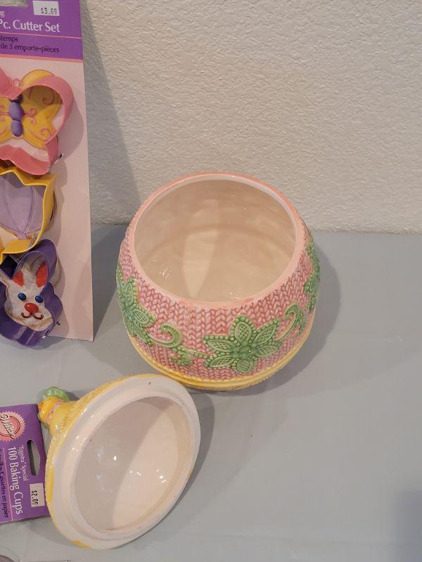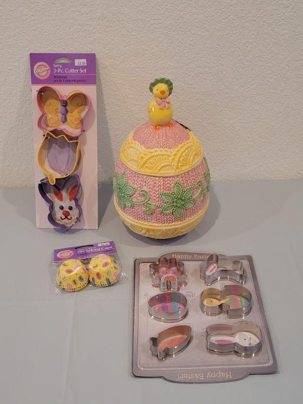 Lot 266: New Cookie Jar, Cookie Cutters and Mini Cupcake Baking Cups