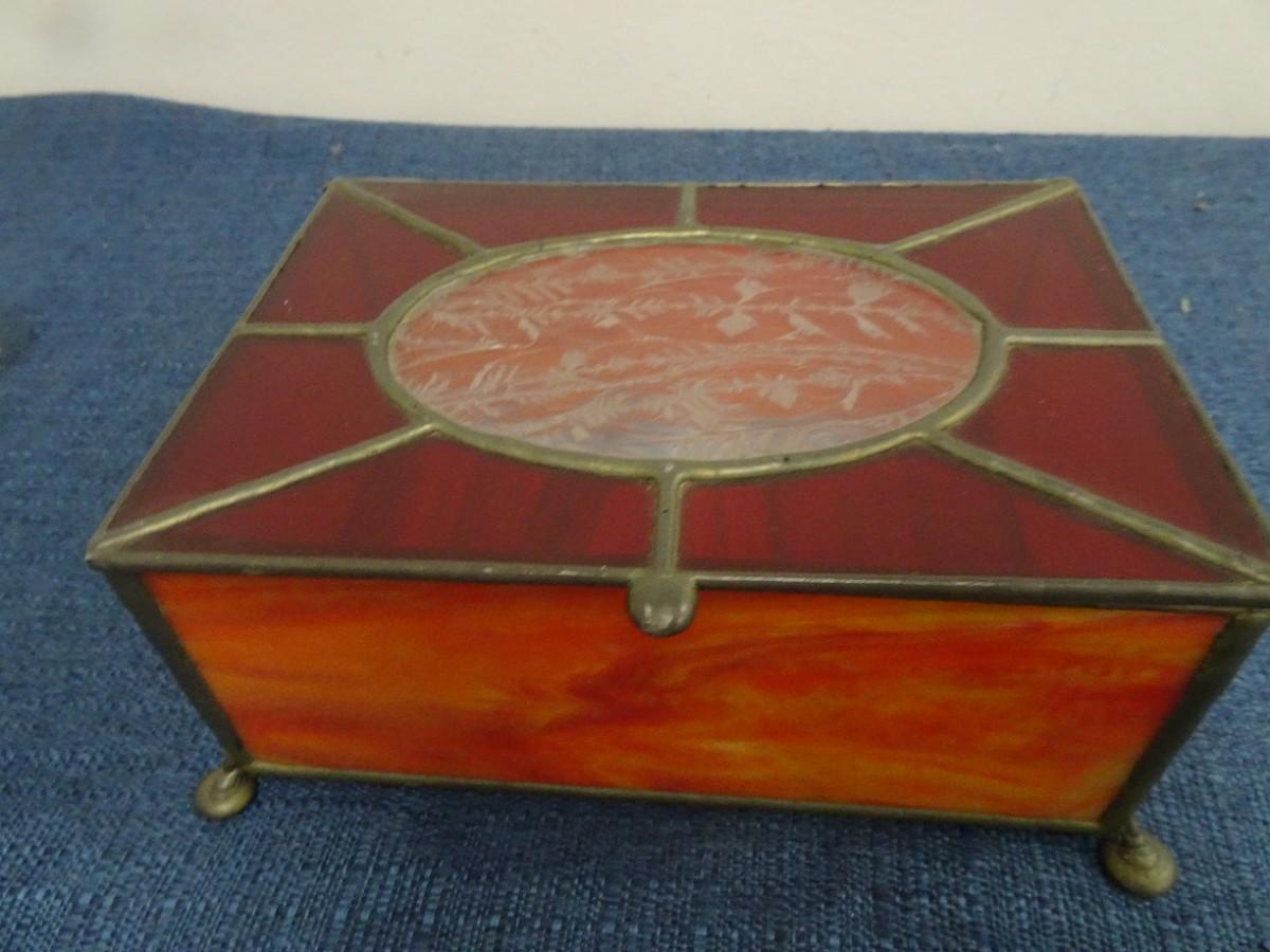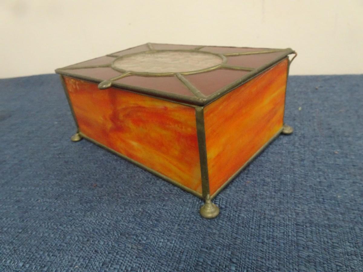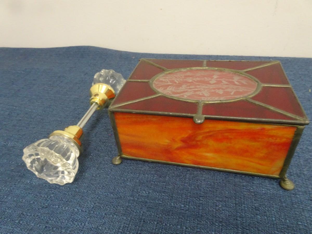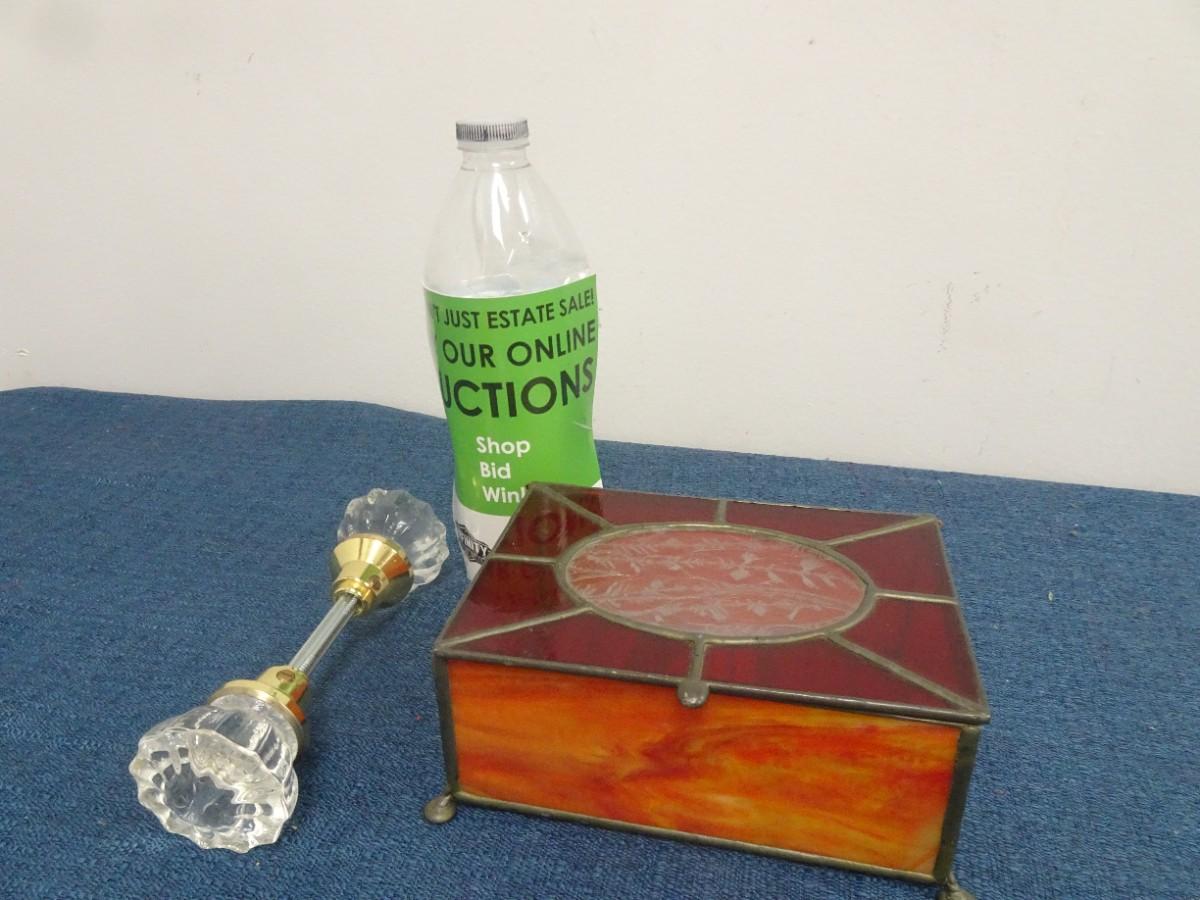 LOT 266. GLASS DOOR KNOB A STAINED GLASS BOX