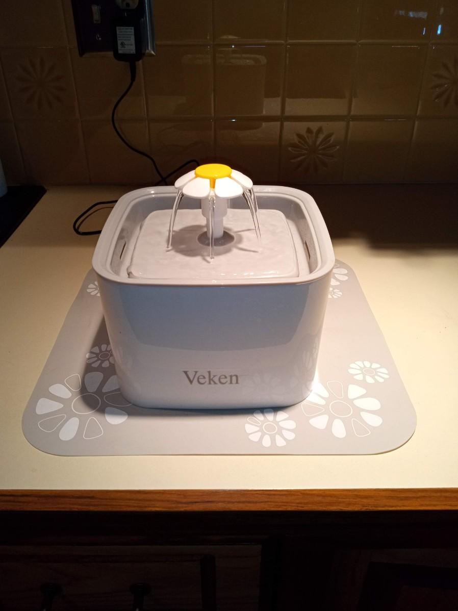 SMALL PUMP INSIDE KEEPS THE WATER FLOWING AND KEEPS IT FRESH