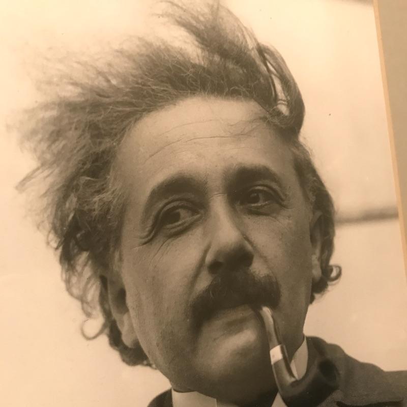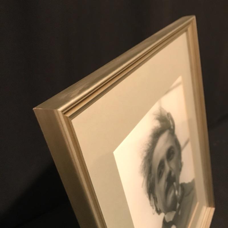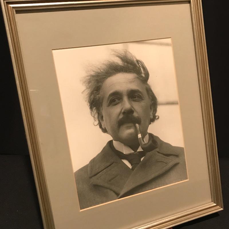 Framed photo of a handsome young Albert Einstein. Looking dapper with pipe in his mouth, this photo of this great thinker makes a great addition to any office space. Measures 15” x 12” Shipping available