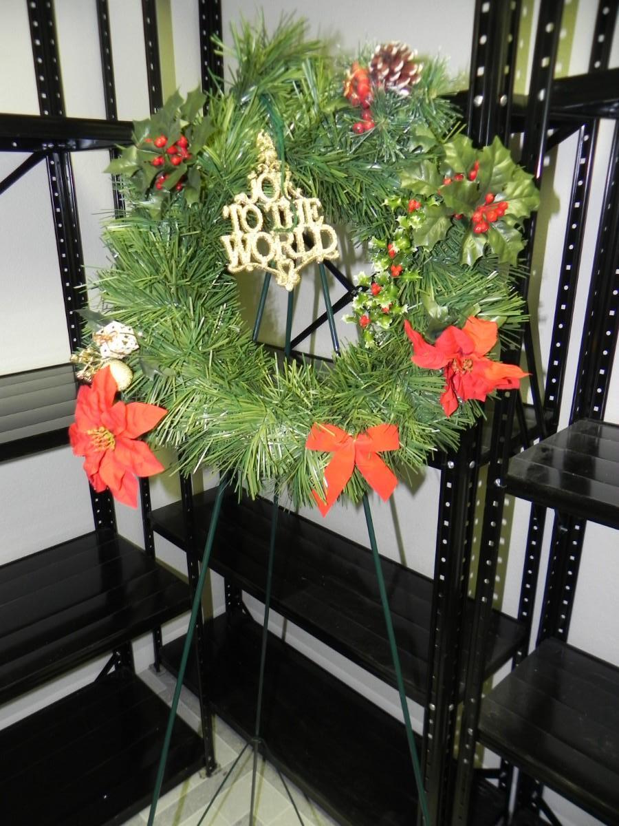 CHRISTMAS WREATH AND STAND, GARLAND AND BULBS TO DECORATE GARLAND AND MORE