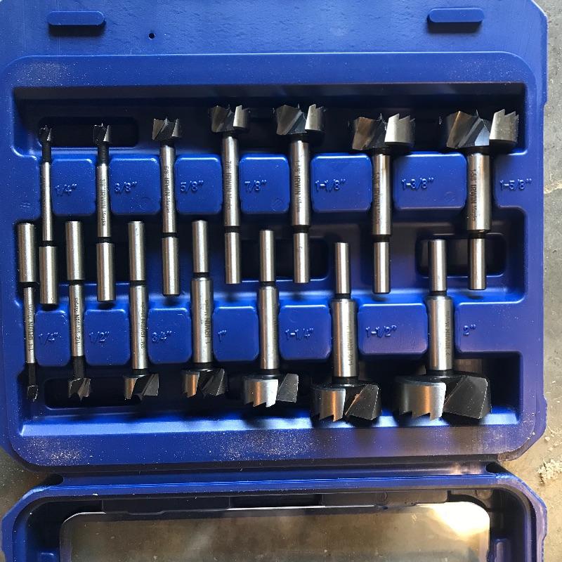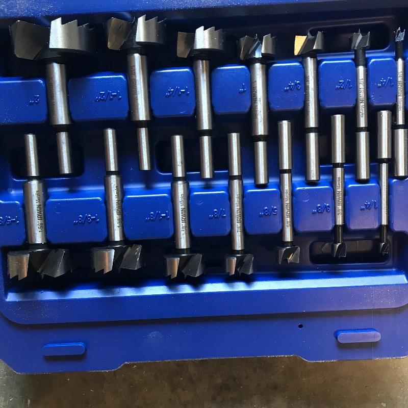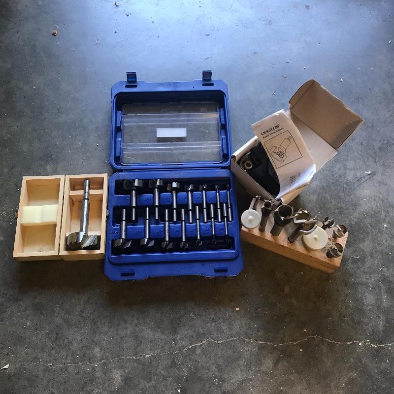 Lot contains an Irwin 14 piece set of Forstner Bits from 1/4” - 2”. 2 1/2” boxed Forstner bit, 1” paddle bit and collection on wood stand. Also in Lot is Canadian made 1” Aluminum Tenon Cutter by Veritas. Shipping available.