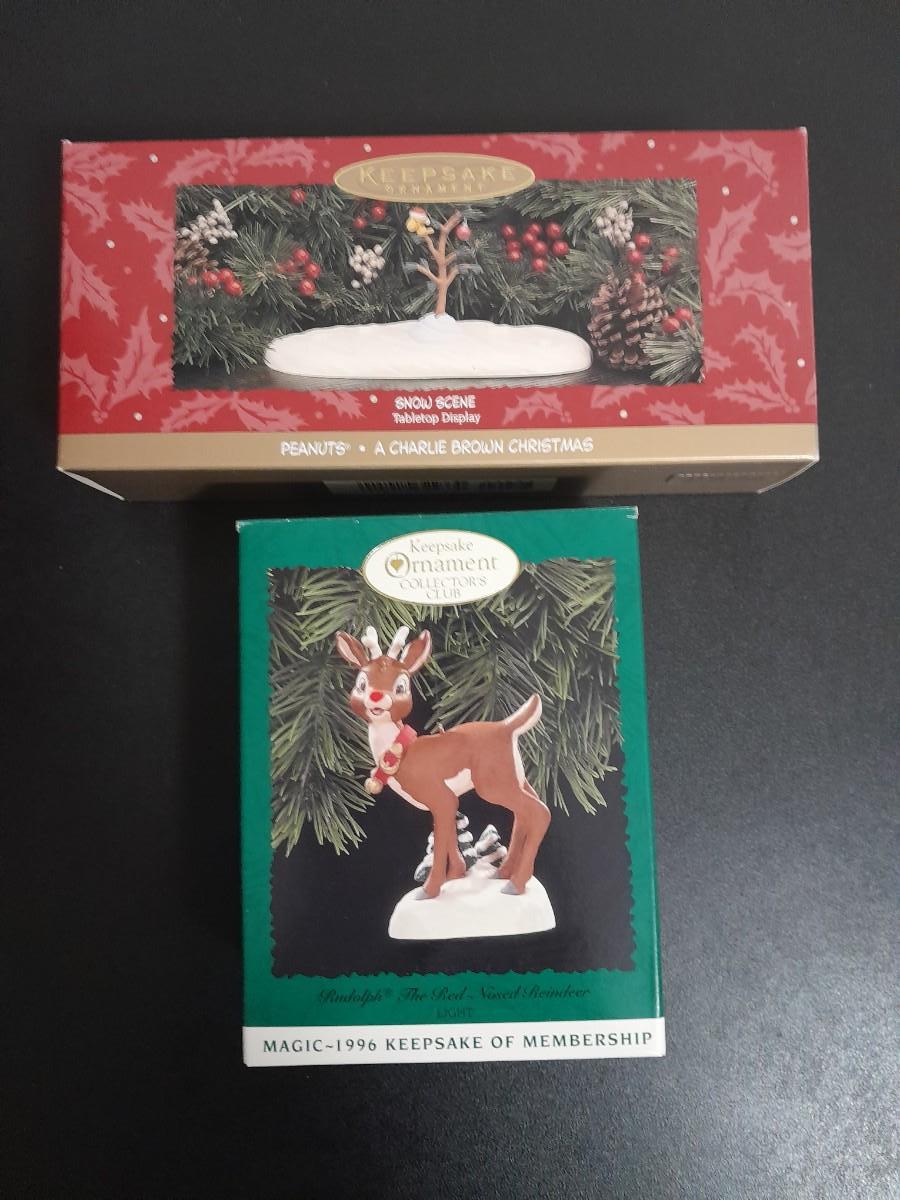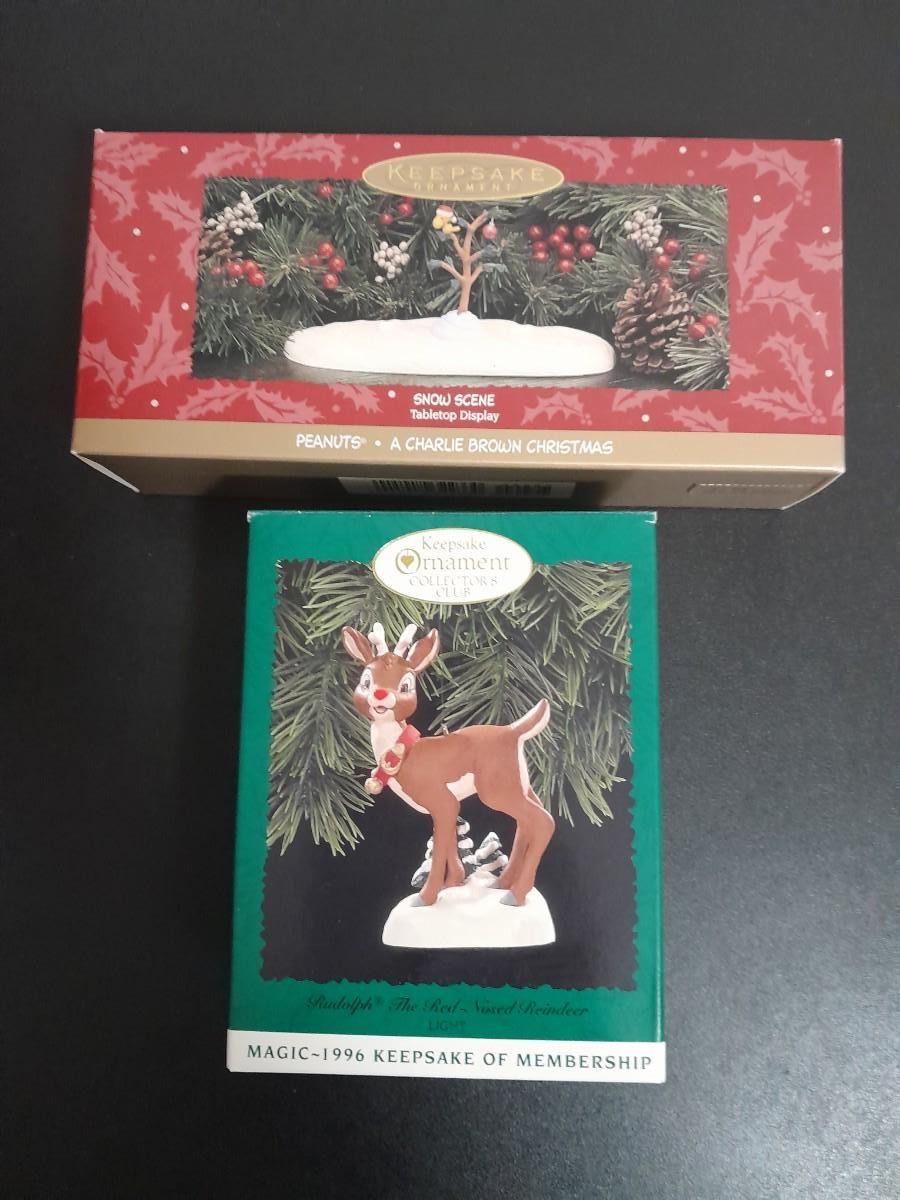 HALLMARK CHRISTMAS PEANUTS SNOW SCENE, AND RUDOLPH