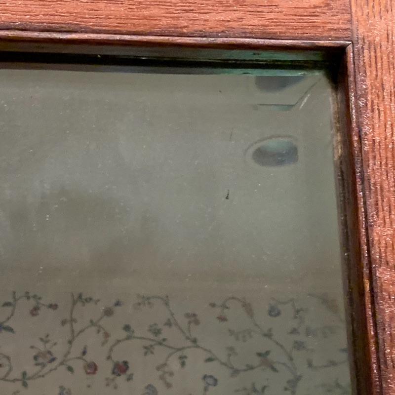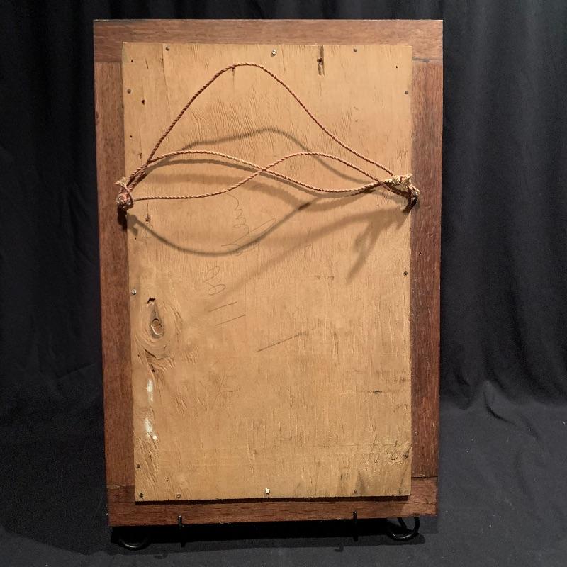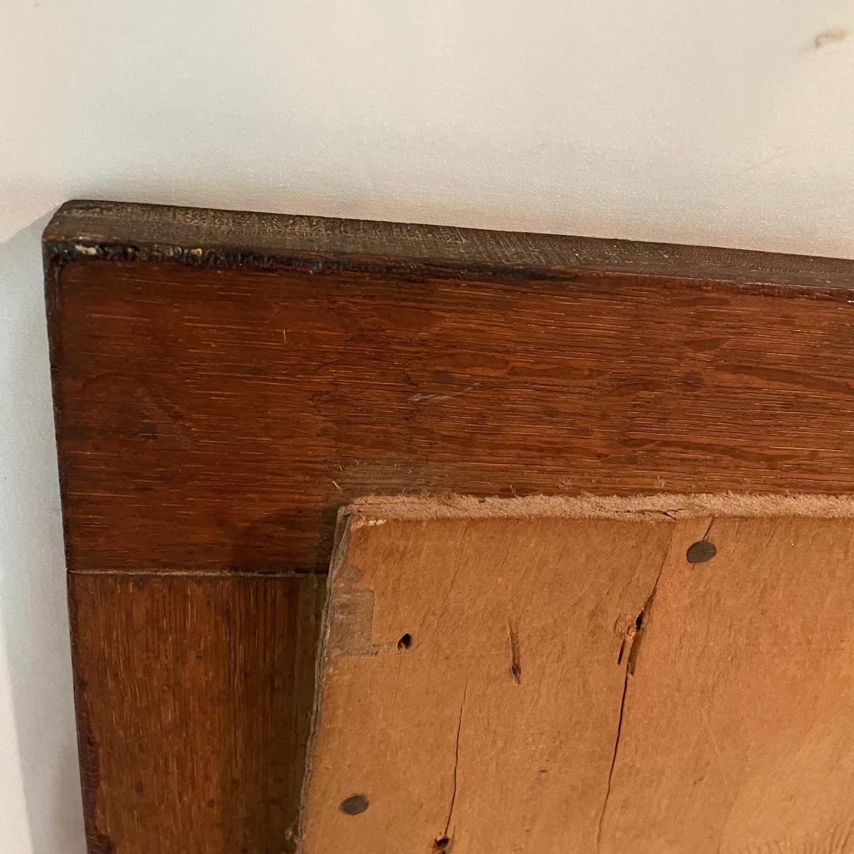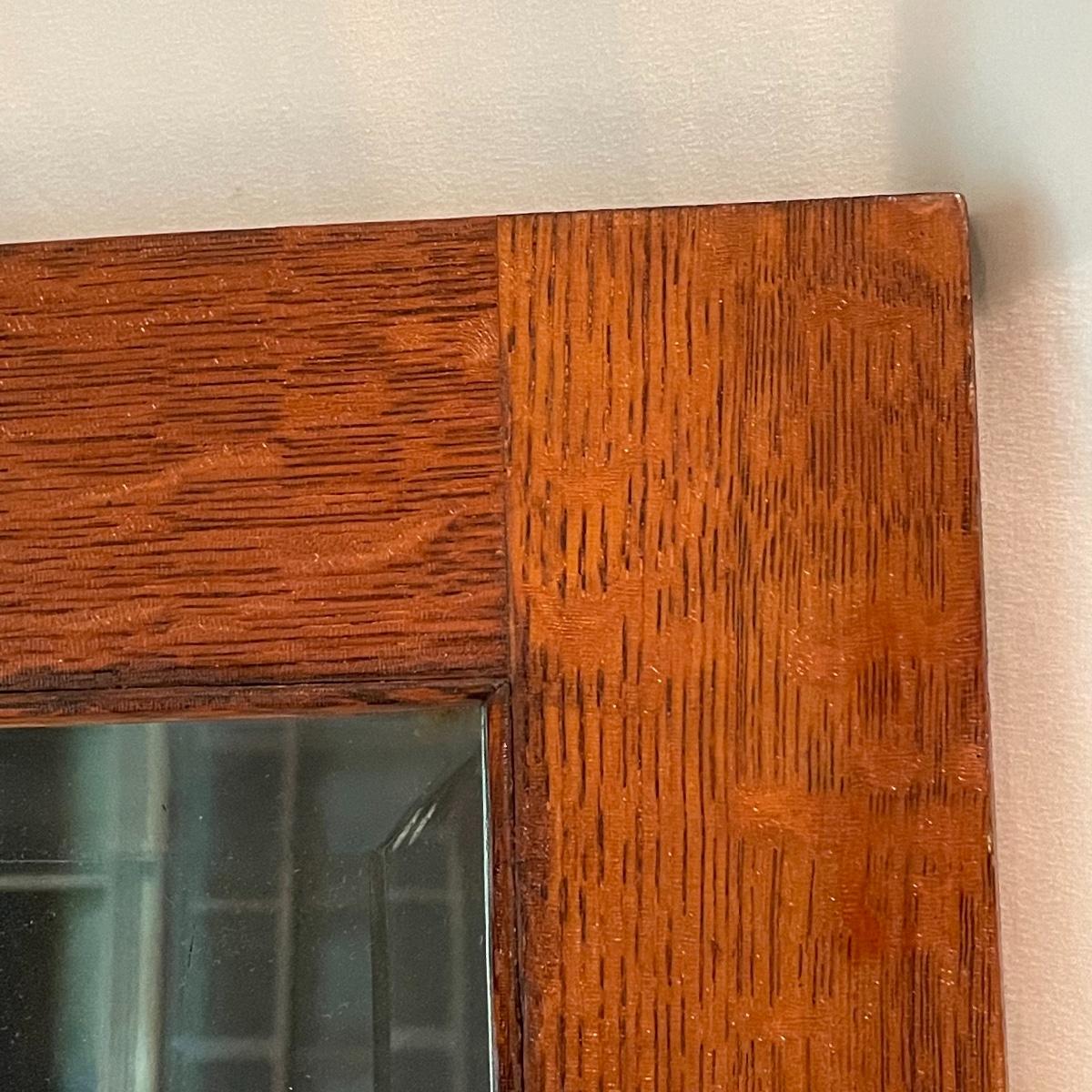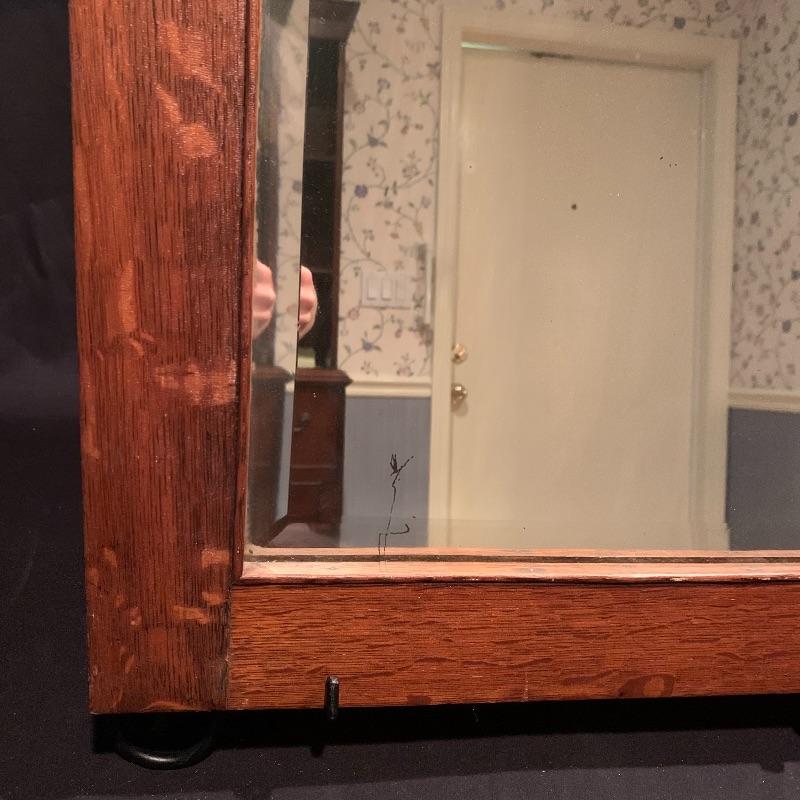 This mirror comes in a beautiful and sturdy varnished wooden frame. The mirror is beveled. It has a few blemishes, but none that distract from the loveliness or functionality of the mirror. The frame measures 21.25” x 31.5”. It is quite heavy. There is a strong rope attached to the back for hanging on the wall. Shipping available, but understand this item is heavy. Please call UPS with dimensions at 828-252-6930 for a quote prior to bidding.