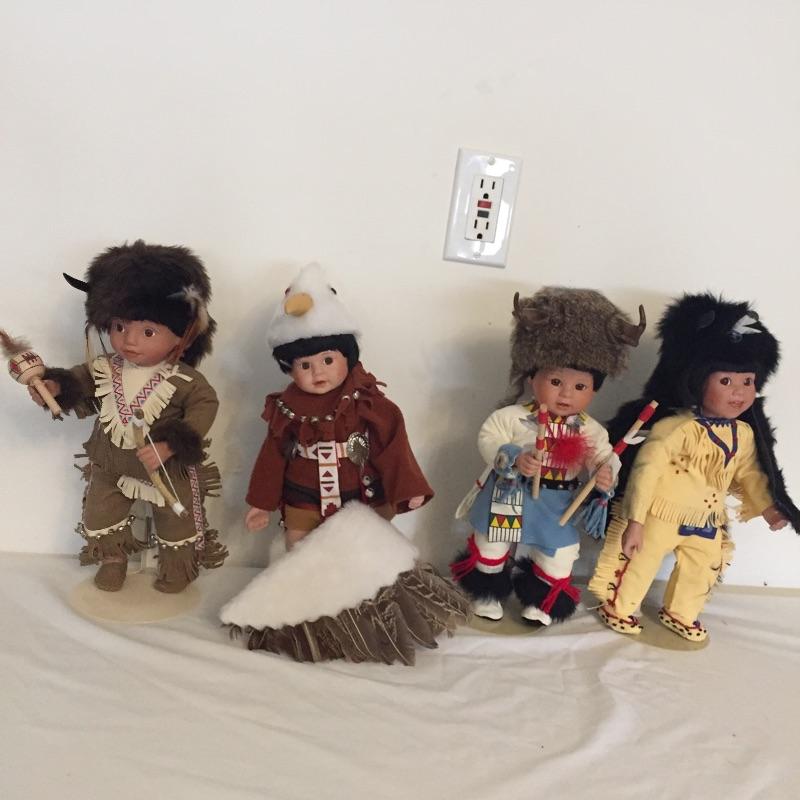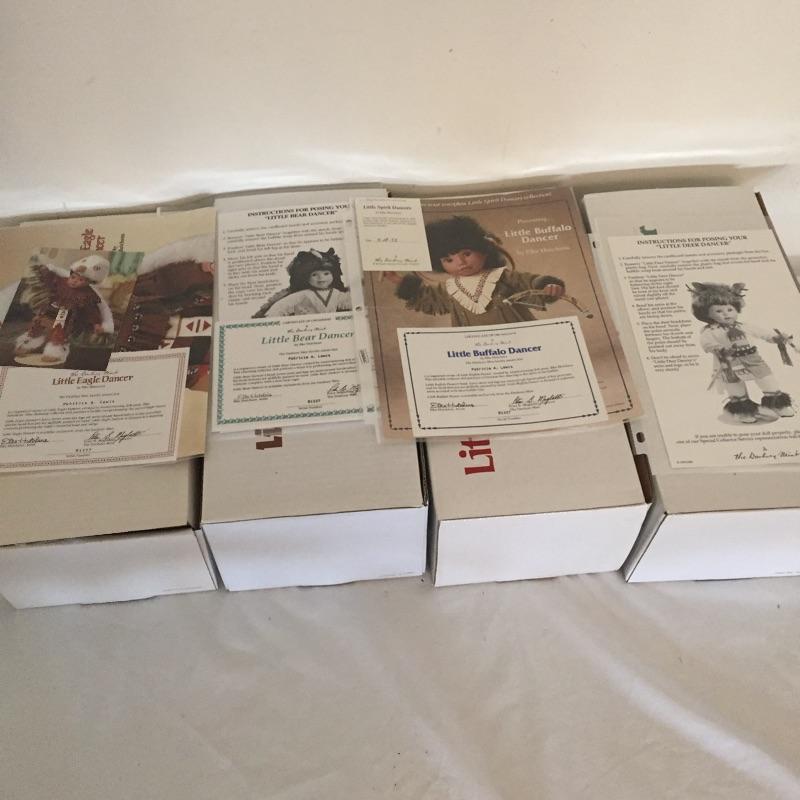 Native American Collection Dolls From Danbury Mint includes Little Eagle Dancer, Little Bear Dancer, Little Buffalo Dancer with COA and Little Deer Dancer that has no COA.