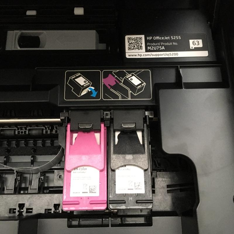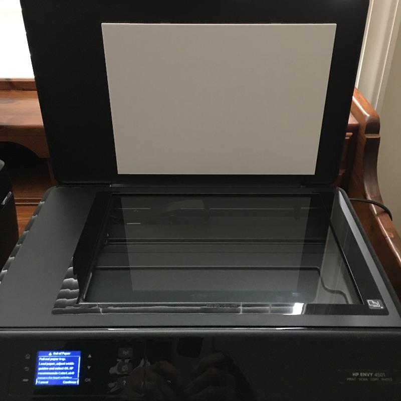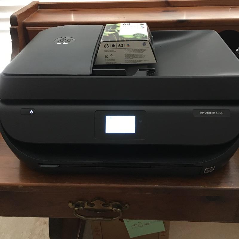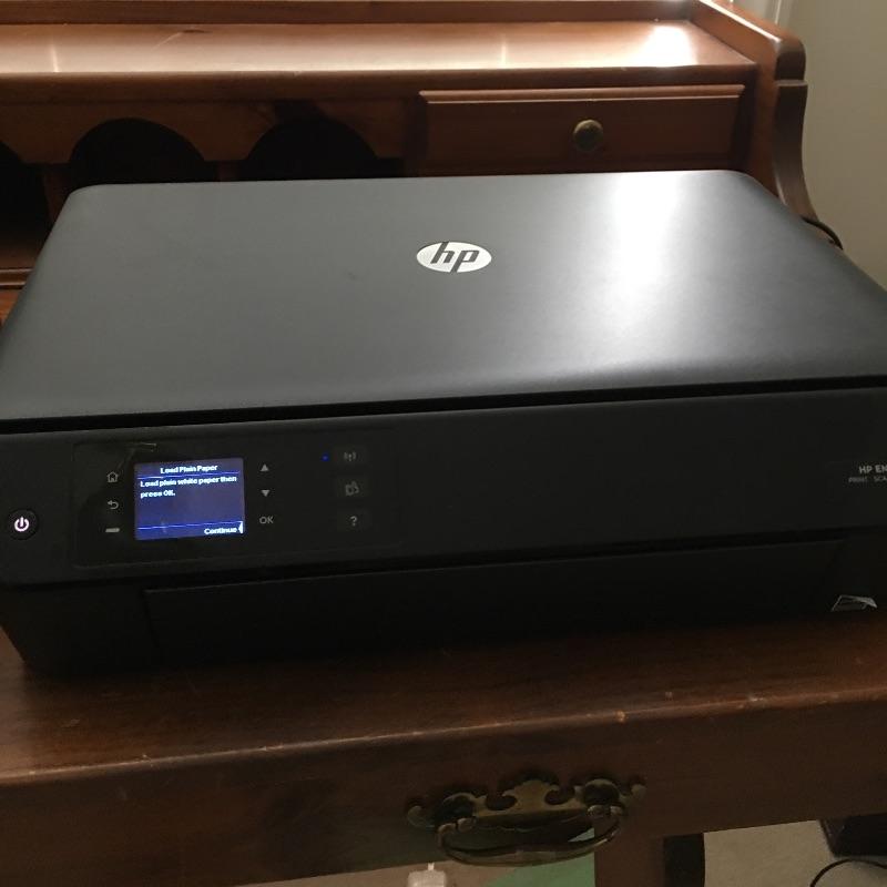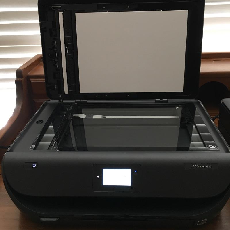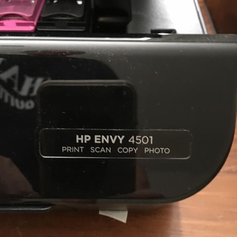 Pair of HP printers includes a HP Envy 4501 and Hp Office Jet 5255. Both printers powered on but could not be tested as no computer was available. Extra pack of ink for the Office Jet 5255.