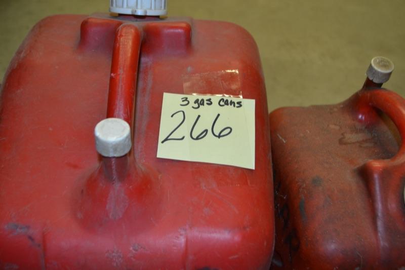LOT 266. THREE PLASTIC GAS CANS