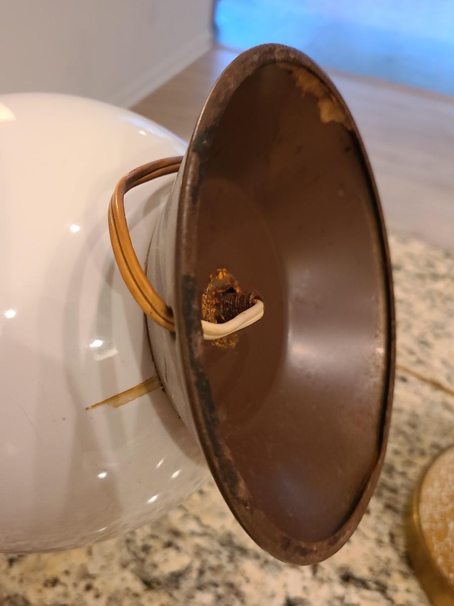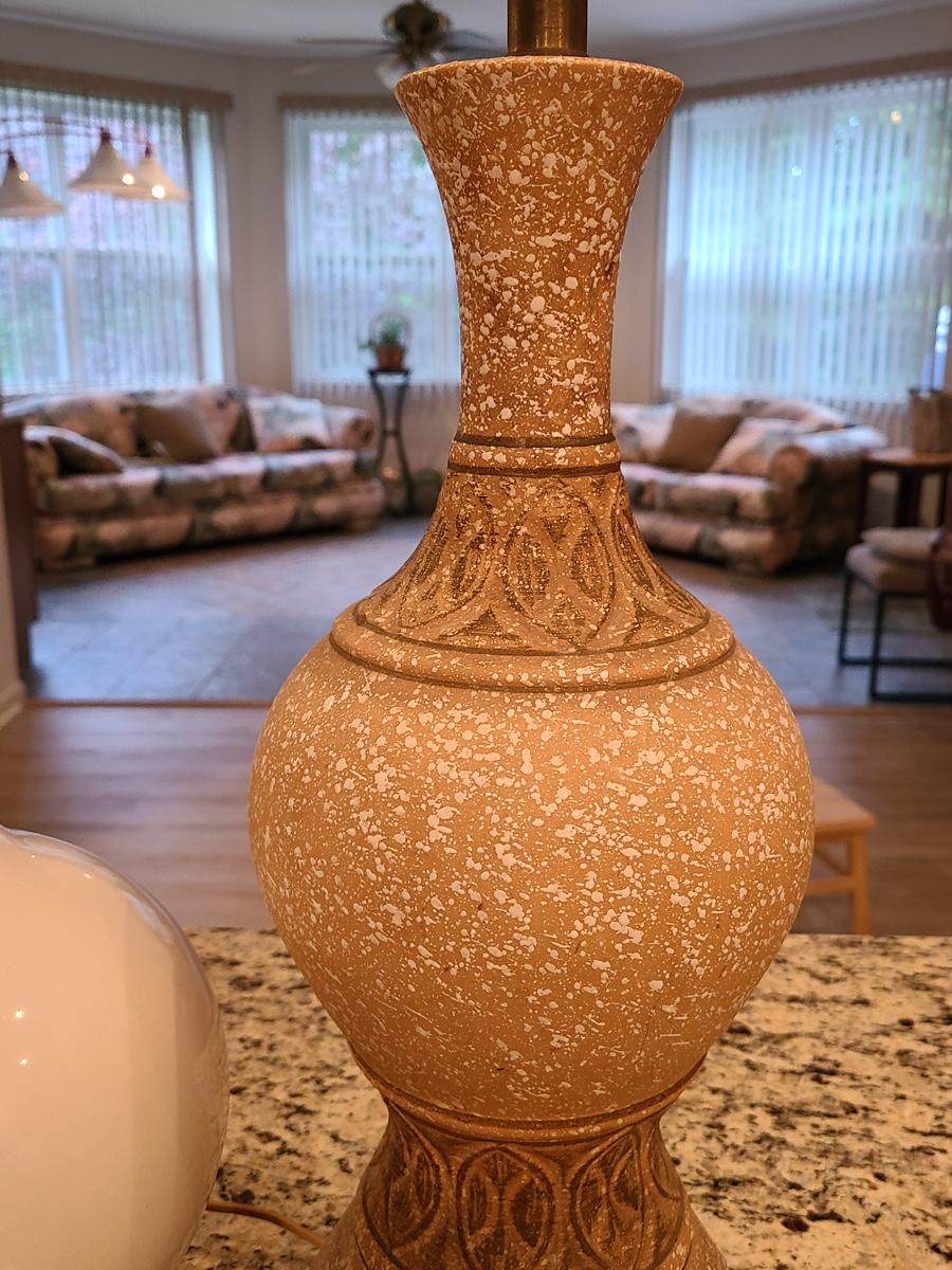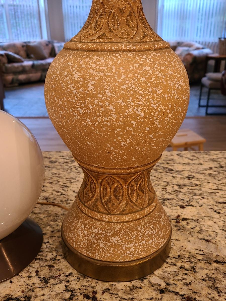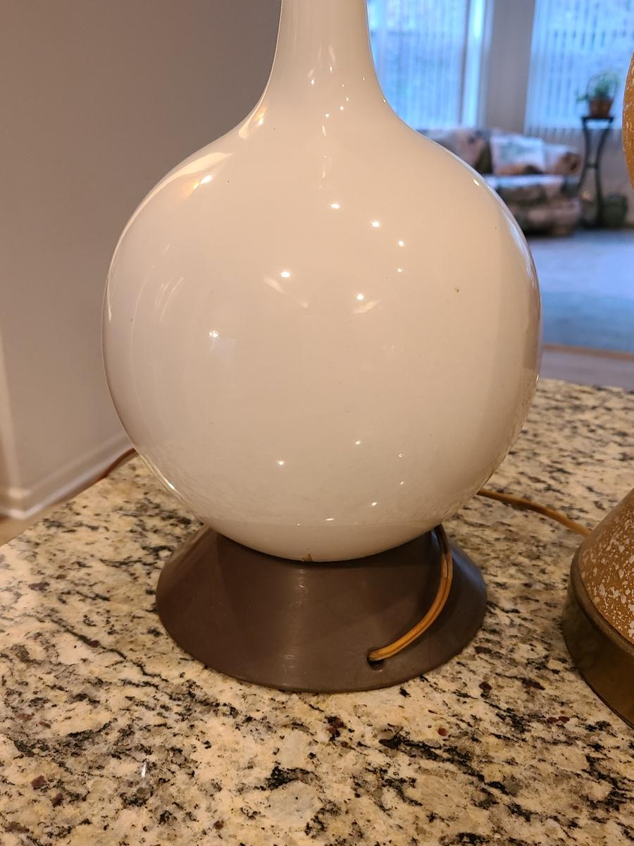 These two unique vintage lamps show style while being functional. They do not come with shades. They both work great. The white bulb, with teak arm, has a metal base. The other is pottery. Please see all pictures as they are the best representation of the items. The pictures show condition, measurements if taken, and what is included in the lot. Due to the large amount that we photograph and the time frame, we are not always able to take measurements. All items unless noted, are pre-owned and have been used. If you purchased furniture, you must bring help. We do not allow one person to carry large furniture out on their own. Bring help, tools and a truck for the safety of our client’s homes, and your personal safety. Company policy. Thank you.