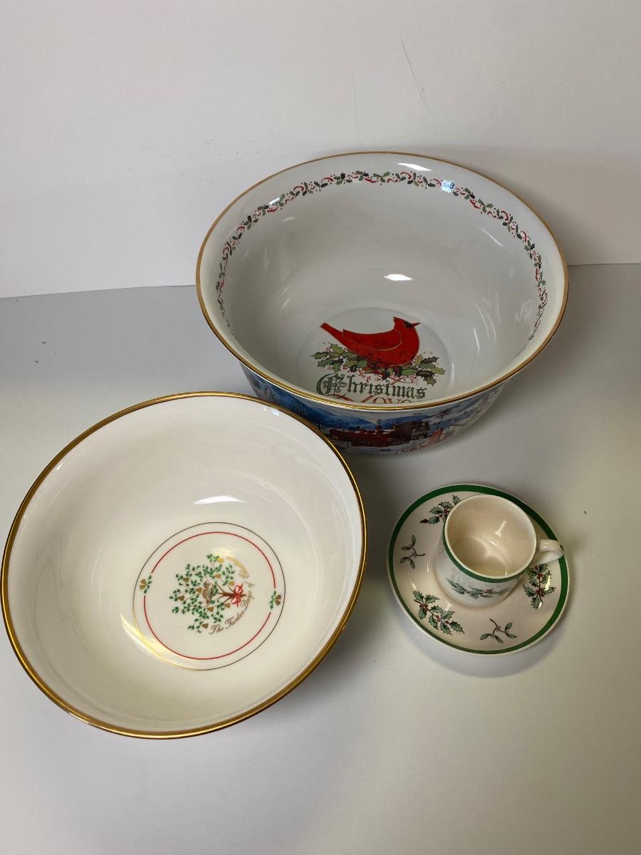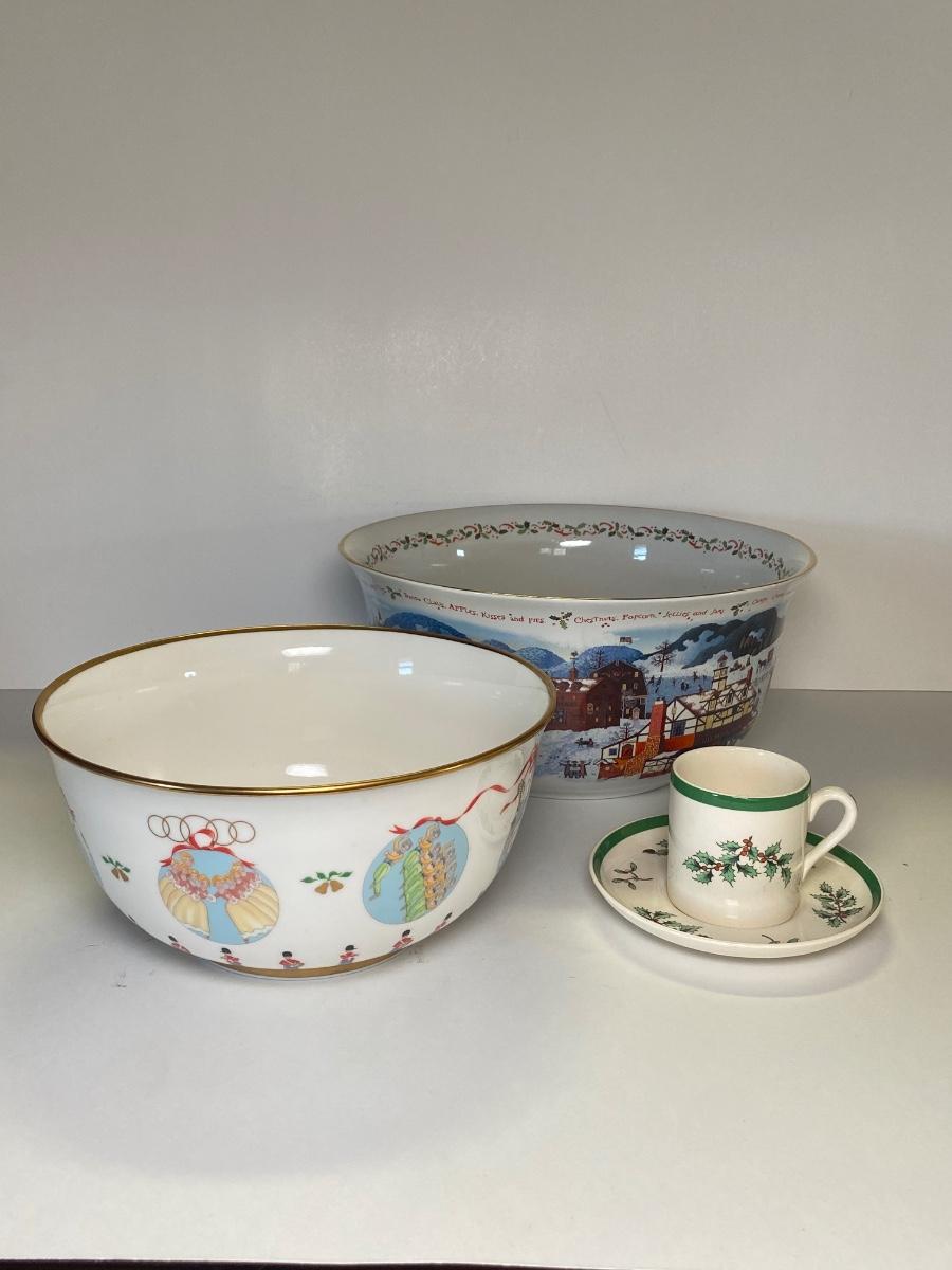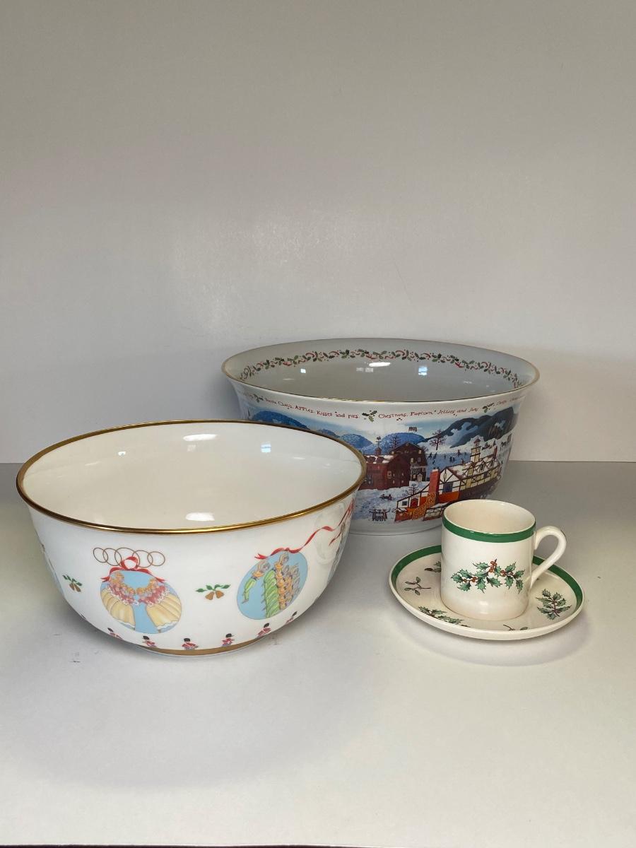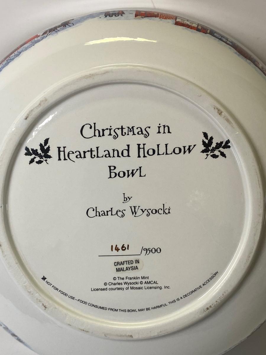 Christmas in Heartland Hollow Bowl by Charles Wysocki is Limited Edition number 1461 of 9500. Includes Spode Christmas tree cup and saucer.