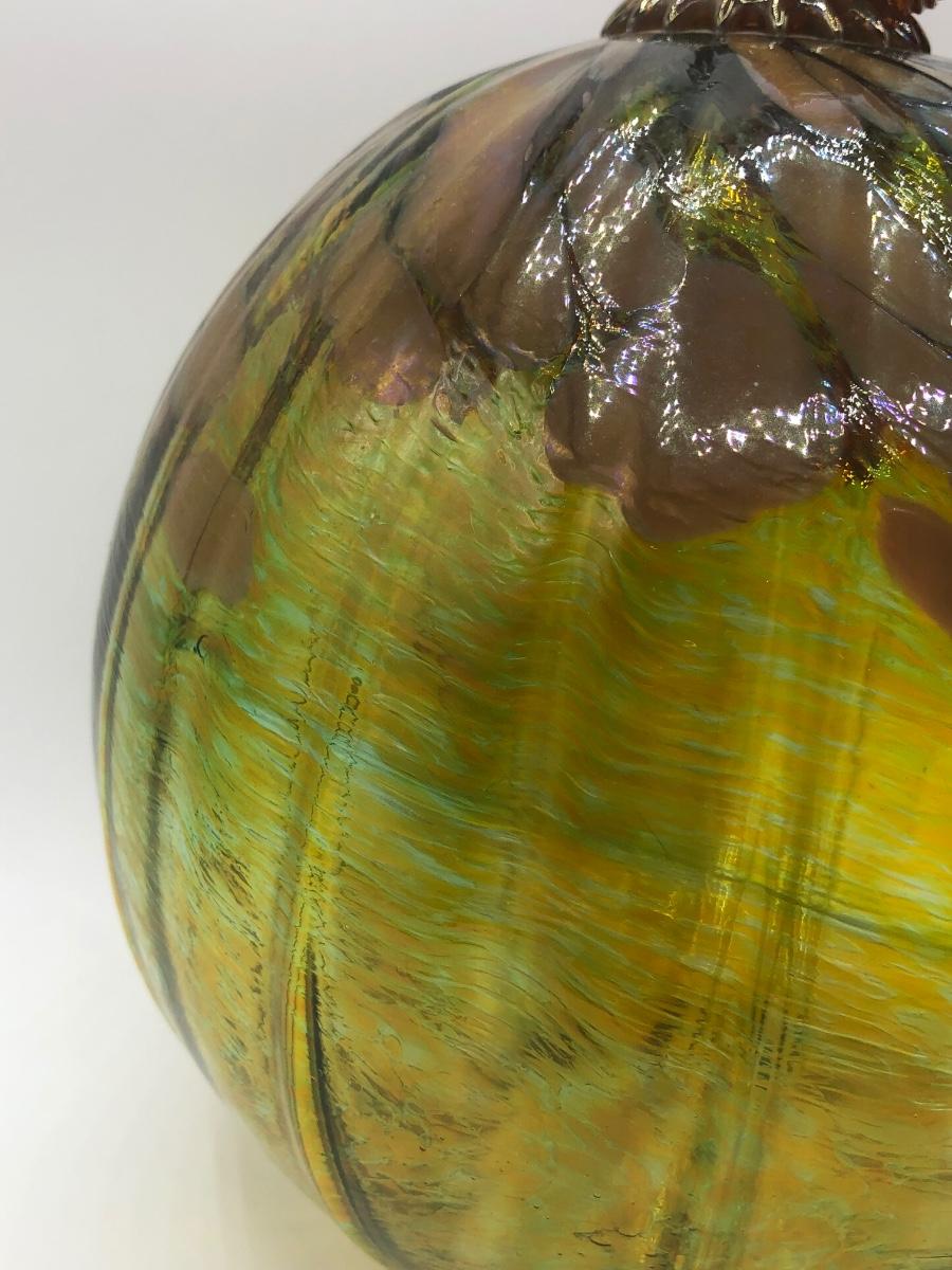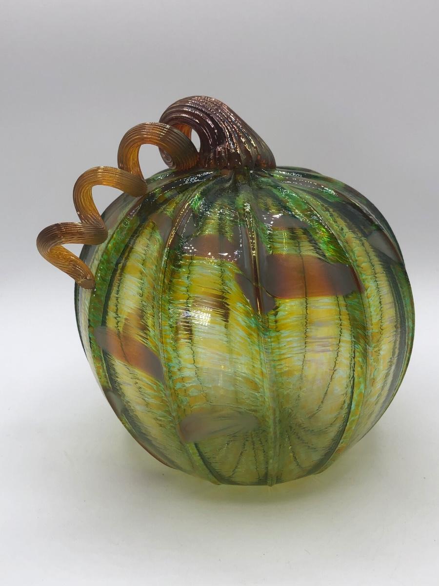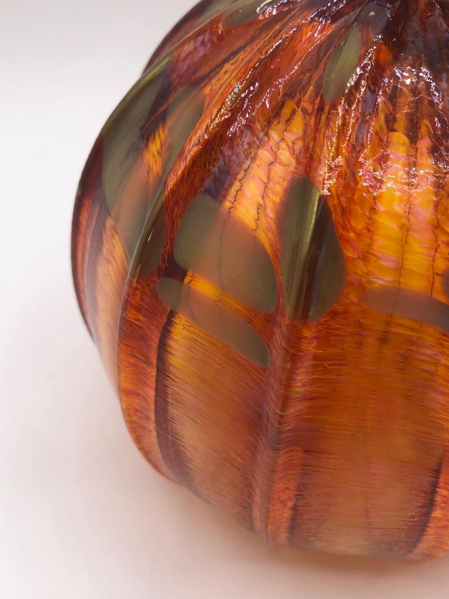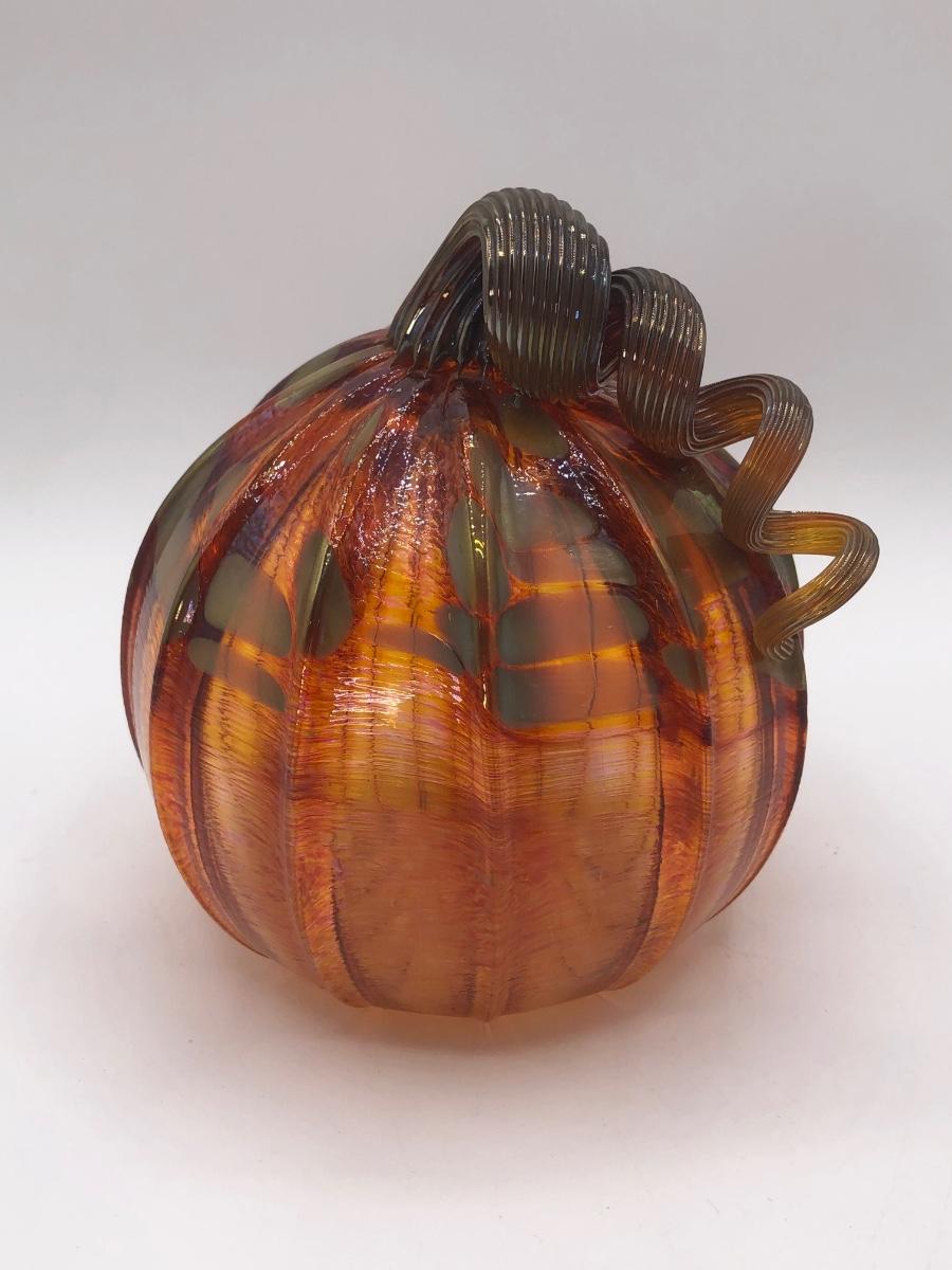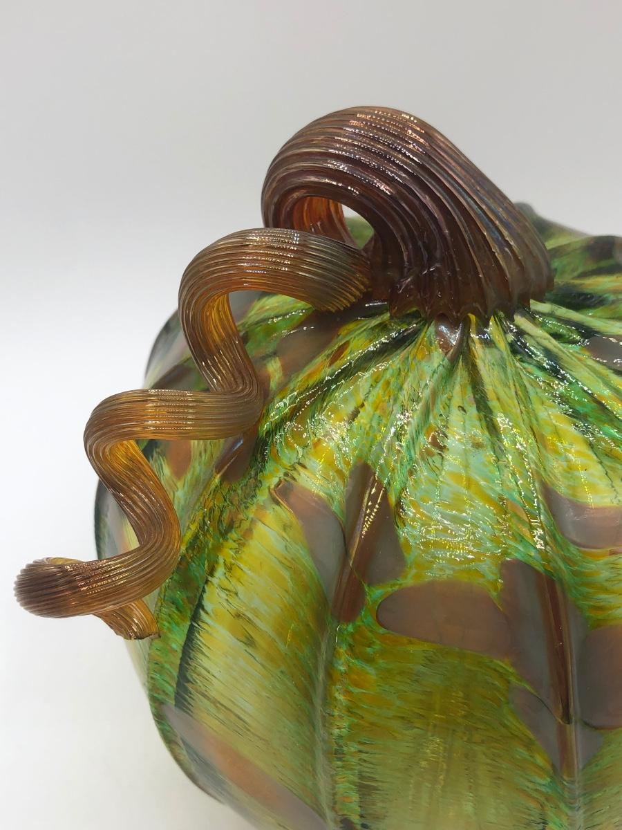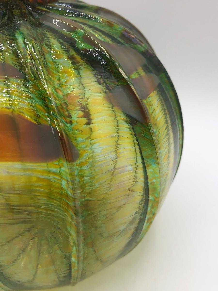 LOT 266L: Trio of Beautiful Artist Signed Luke Adams Art Glass Pumpkins w/ Spiral Stems