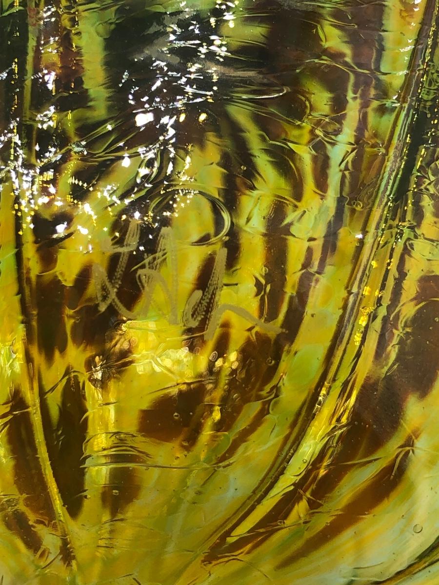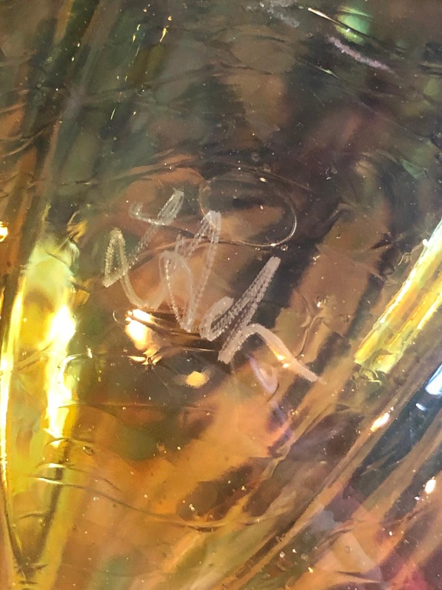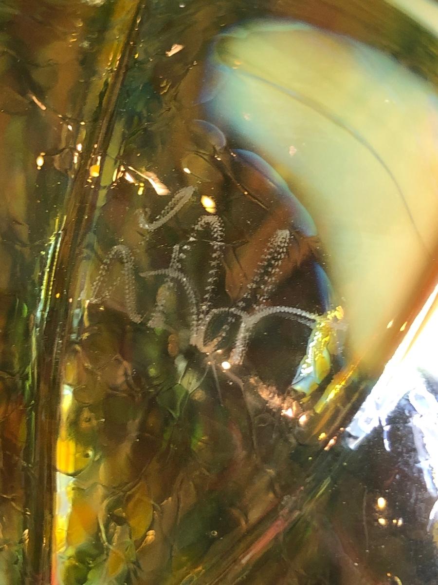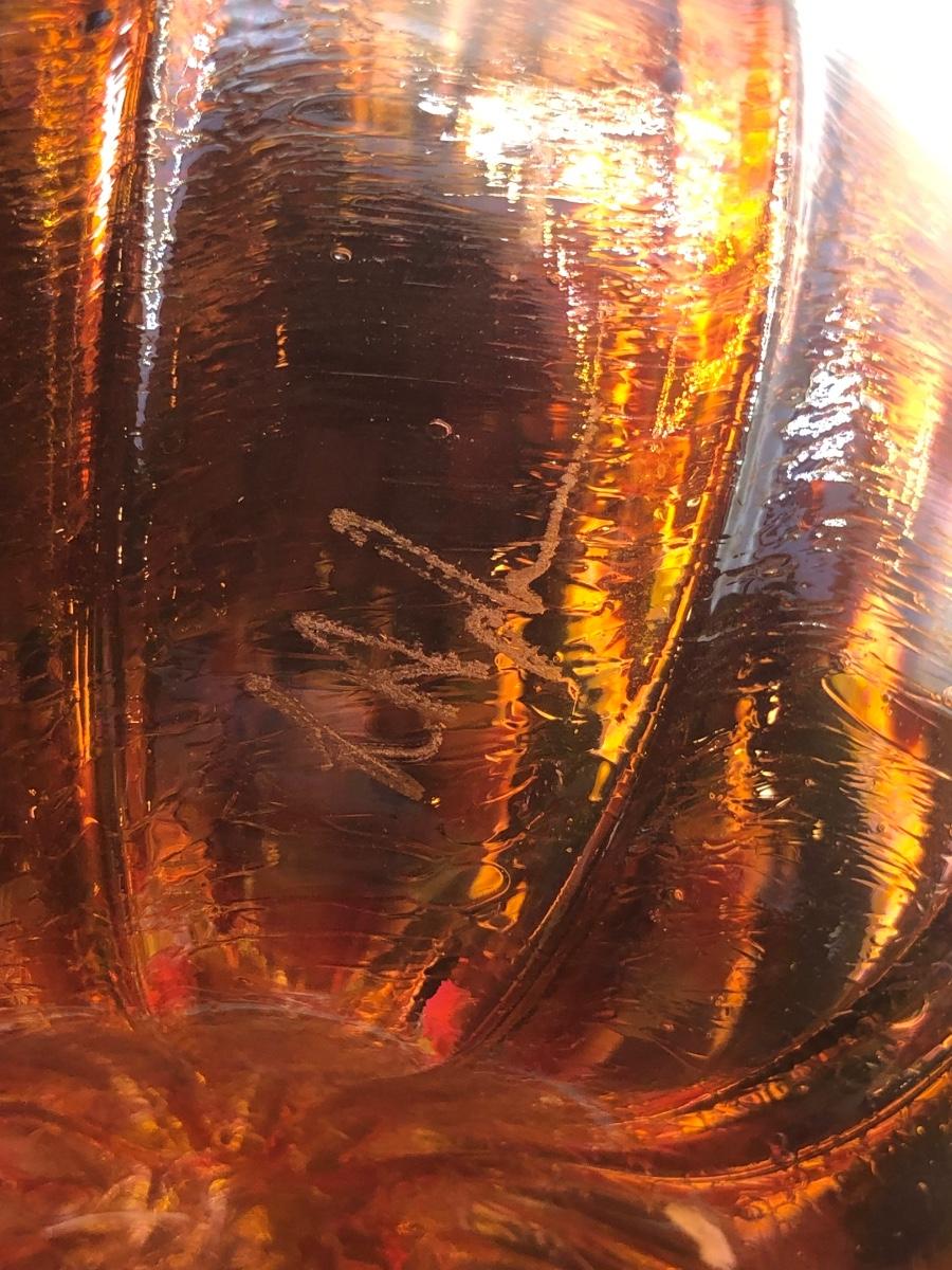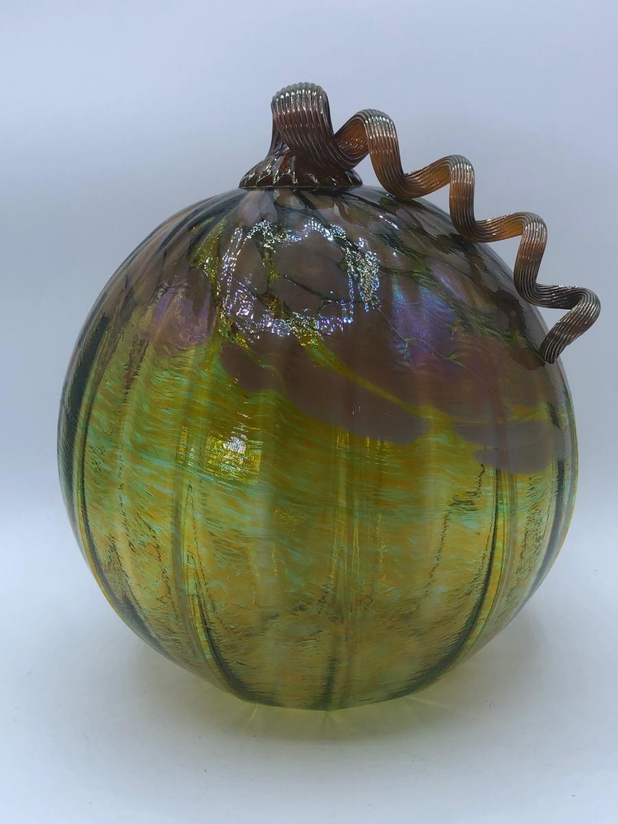 LOT 266L: Trio of Beautiful Artist Signed Luke Adams Art Glass Pumpkins w/ Spiral Stems