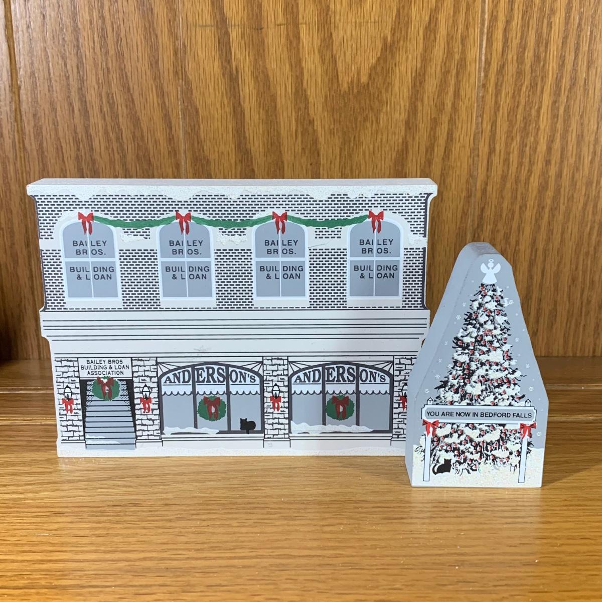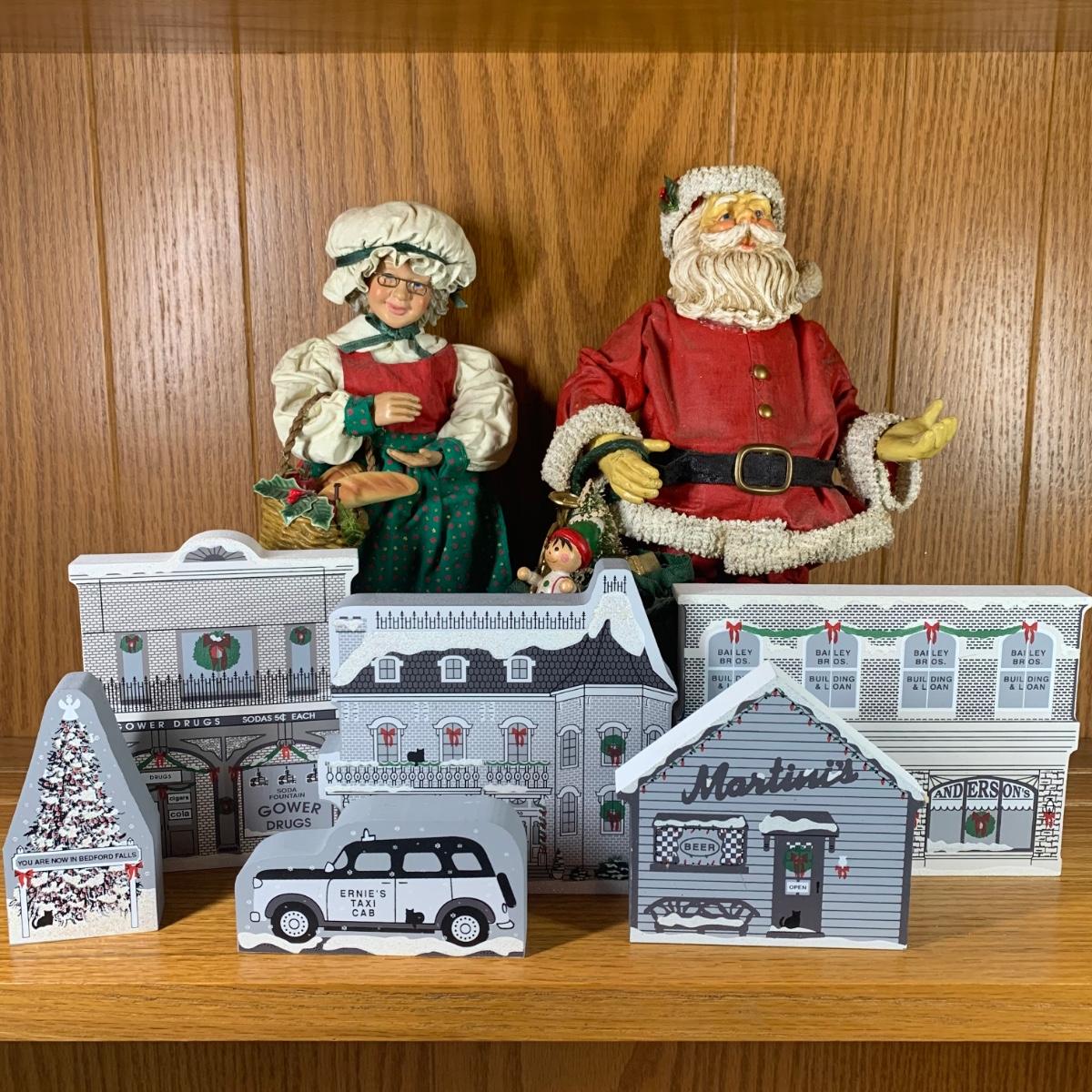 LOT 266R: Possible Dreams Clothtique Santa & Mrs. Claus along with The Cat's Meow Set of It's a Wonder Life, Bedford Fall PA
