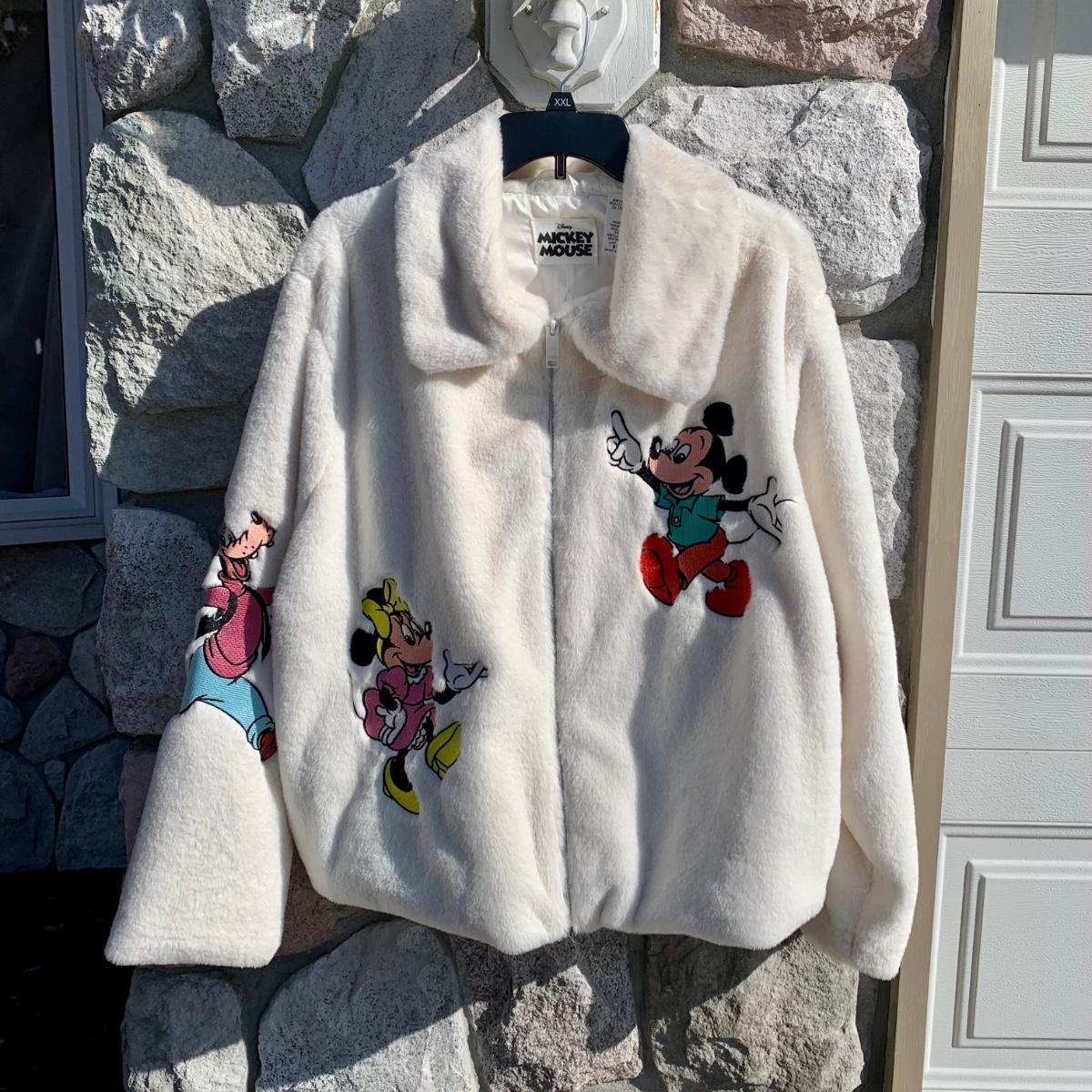 LOT 267 A: Disney White Mickey Mouse Embroidered Faux Fur Size 1 X-Large Coat