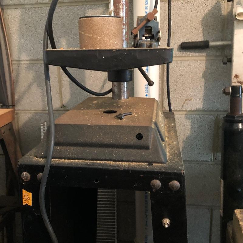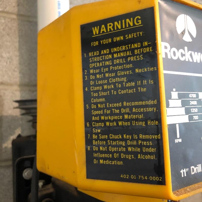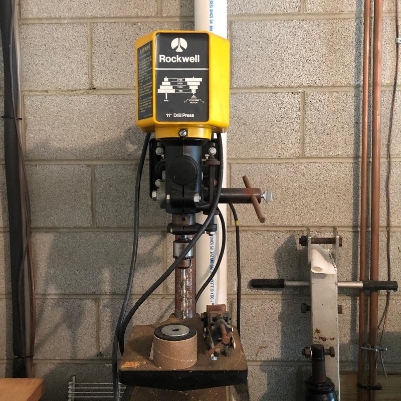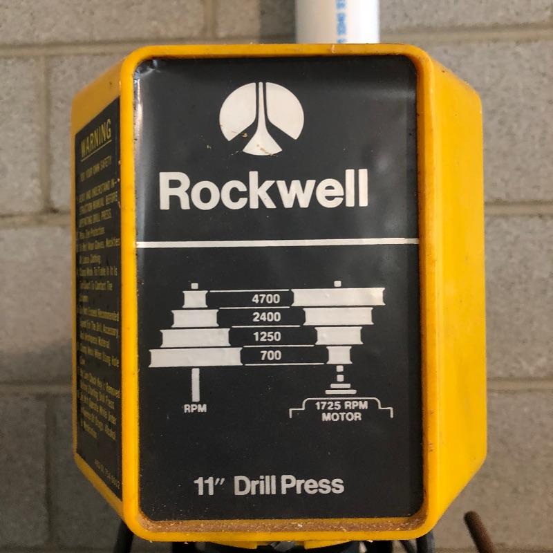 This lot includes one Rockwell drill press on a rolling metal cart. Drill press and cart together measures 65” tall. Local pick up only.