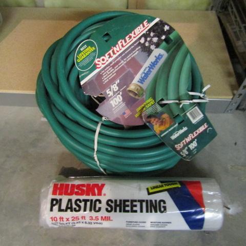LOT 267 OUTDOOR LIGHTS, 100' HOSE & PLASTIC SHEETING
