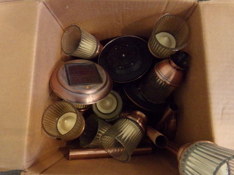 OUTDOOR SOLAR LIGHTS, 100 FOOT GARDEN HOSE & NEW PLASTIC SHEETING