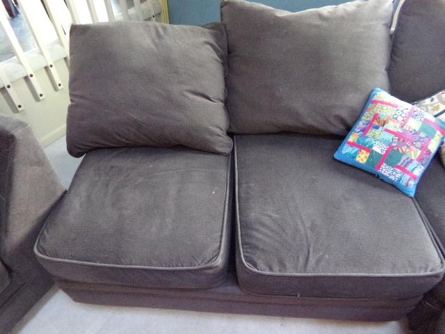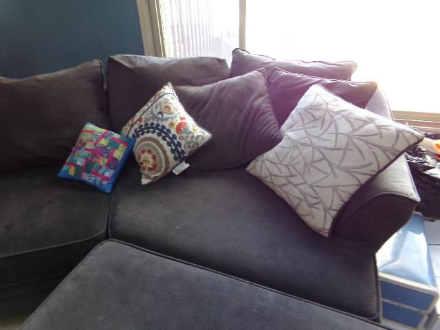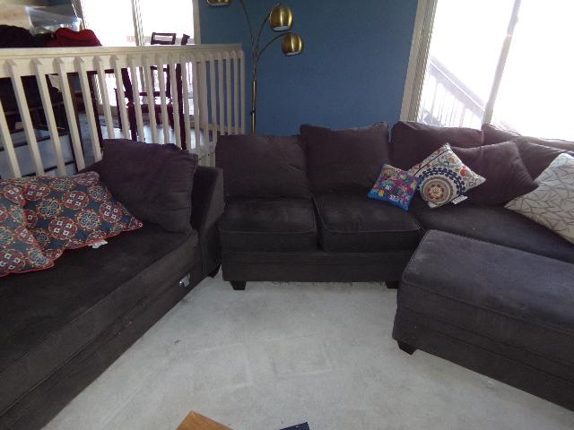 THERE IS DOG HAIR UNDER THE CUSHIONS, TOP OF SECTIONAL IS IN GOOD - VERY GOOD CONDITION
