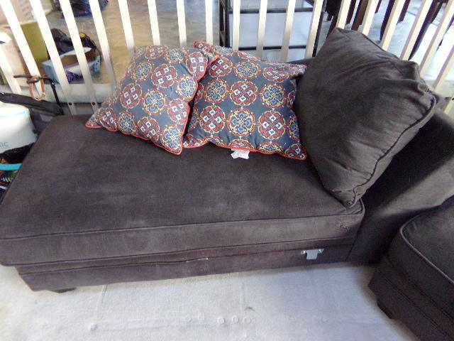 LOT 252 BROWN SECTIONAL SOFA WITH CHAISE LOUNGE & OTTOMAN