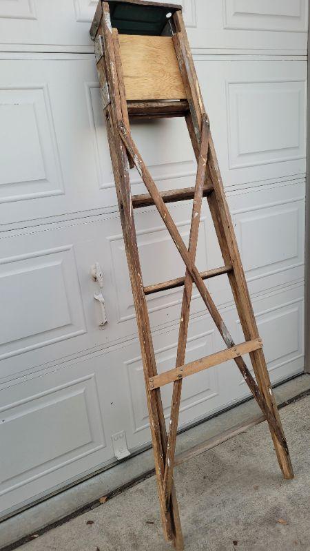 Lot 267: Vintage 6 foot Wooden Ladder
