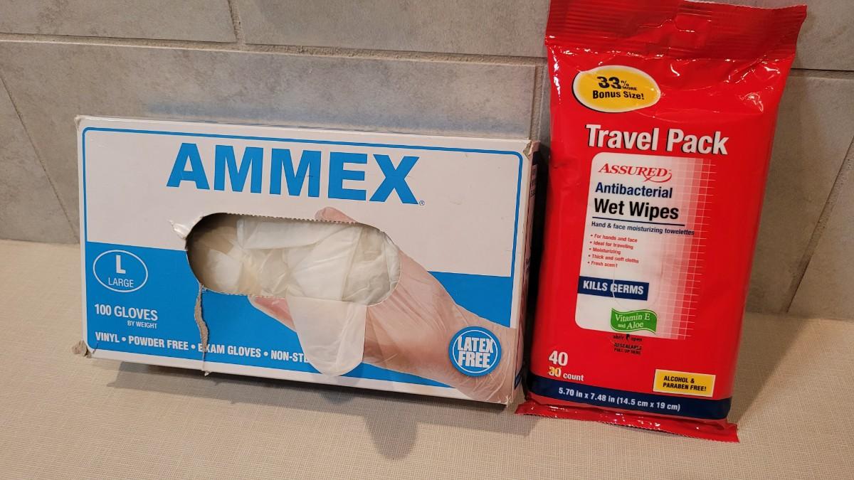 Lot 267: Nearly Full LARGE Exam Gloves + New Wet Wipes
