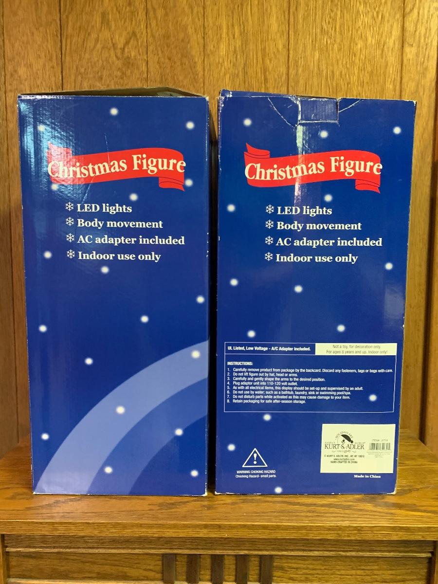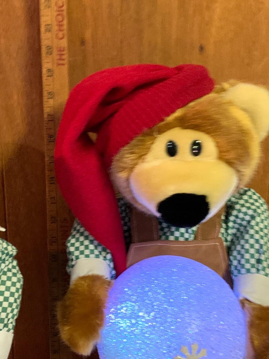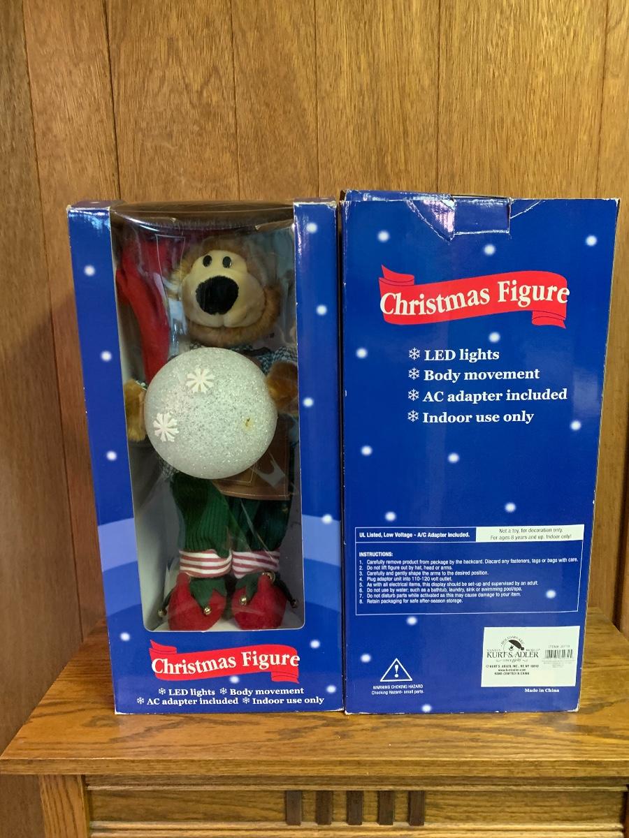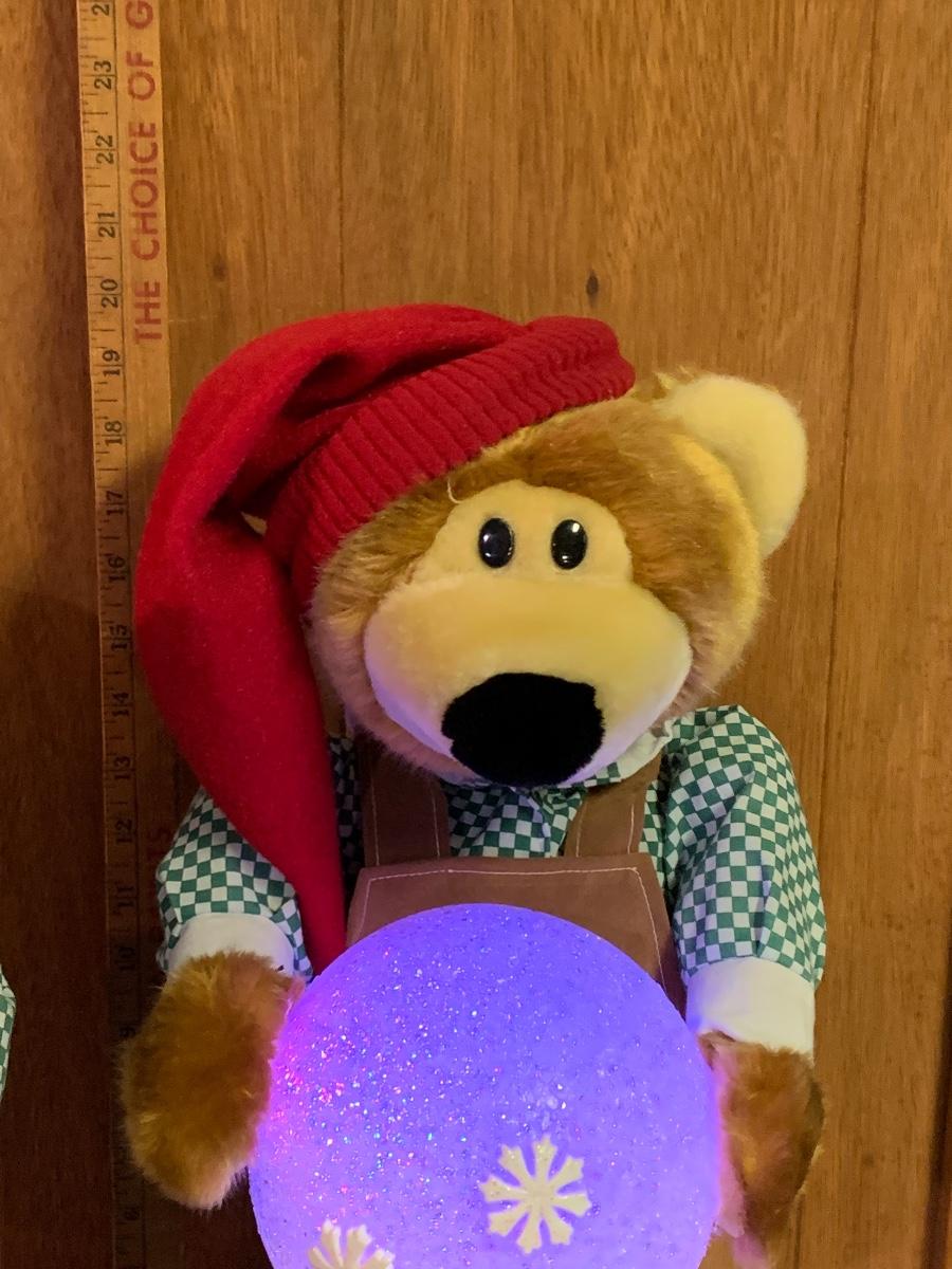 Pair of animated holiday bears with boxes. These both work and are so fun. The boxes do show wear from storage.