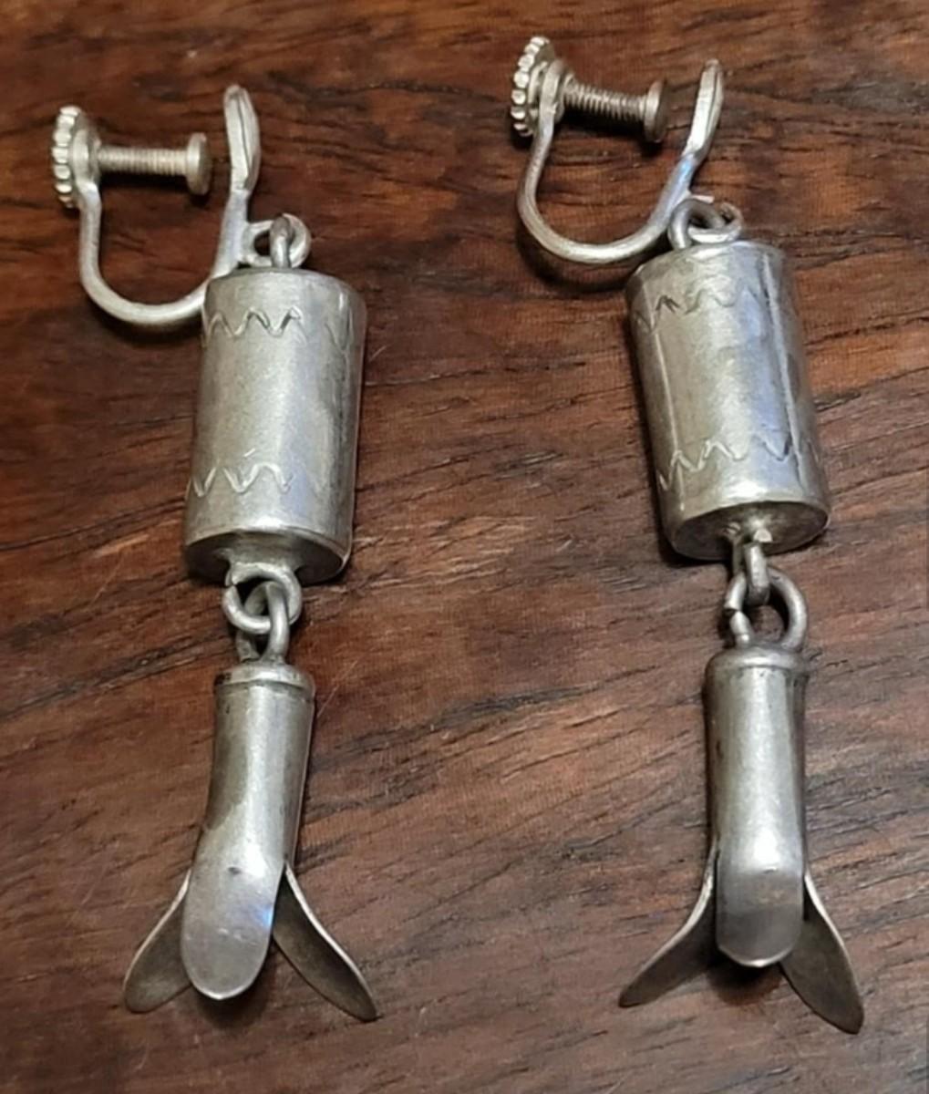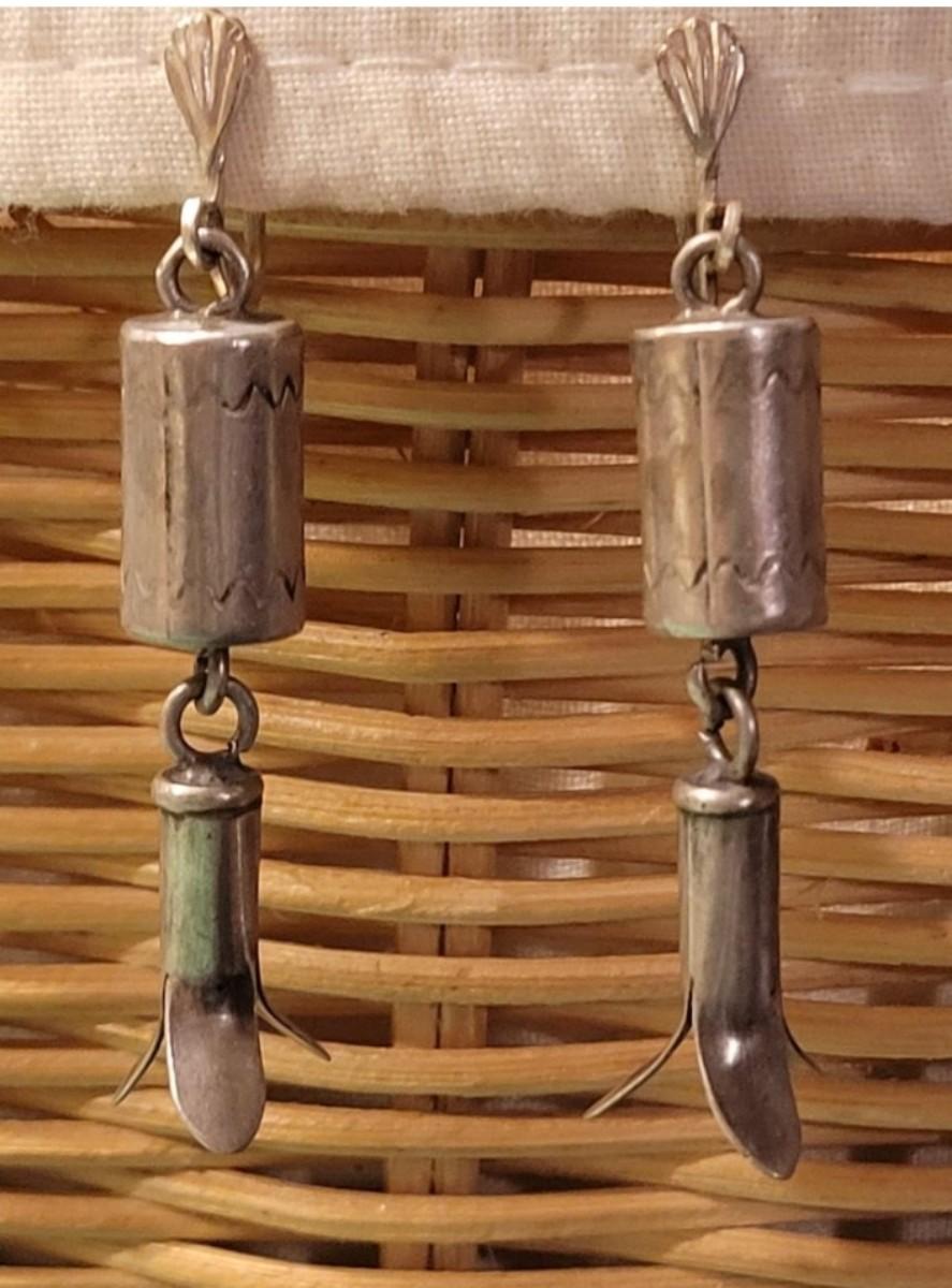 Old Pawn Silver Squash Blossom Earrings. Not marked.