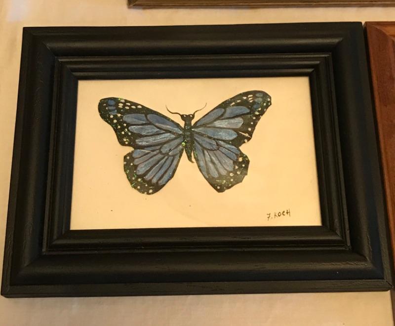 Lot #267 Fran Koch Painted Feather and Butterfly