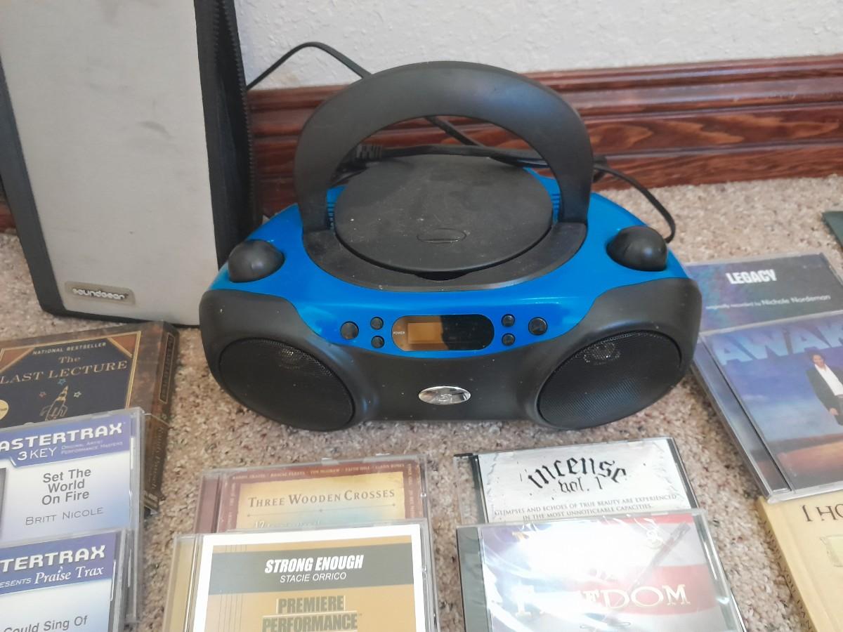 GPX CD/ RADIO BOOMBOX WITH A VARIETY OF CD'S