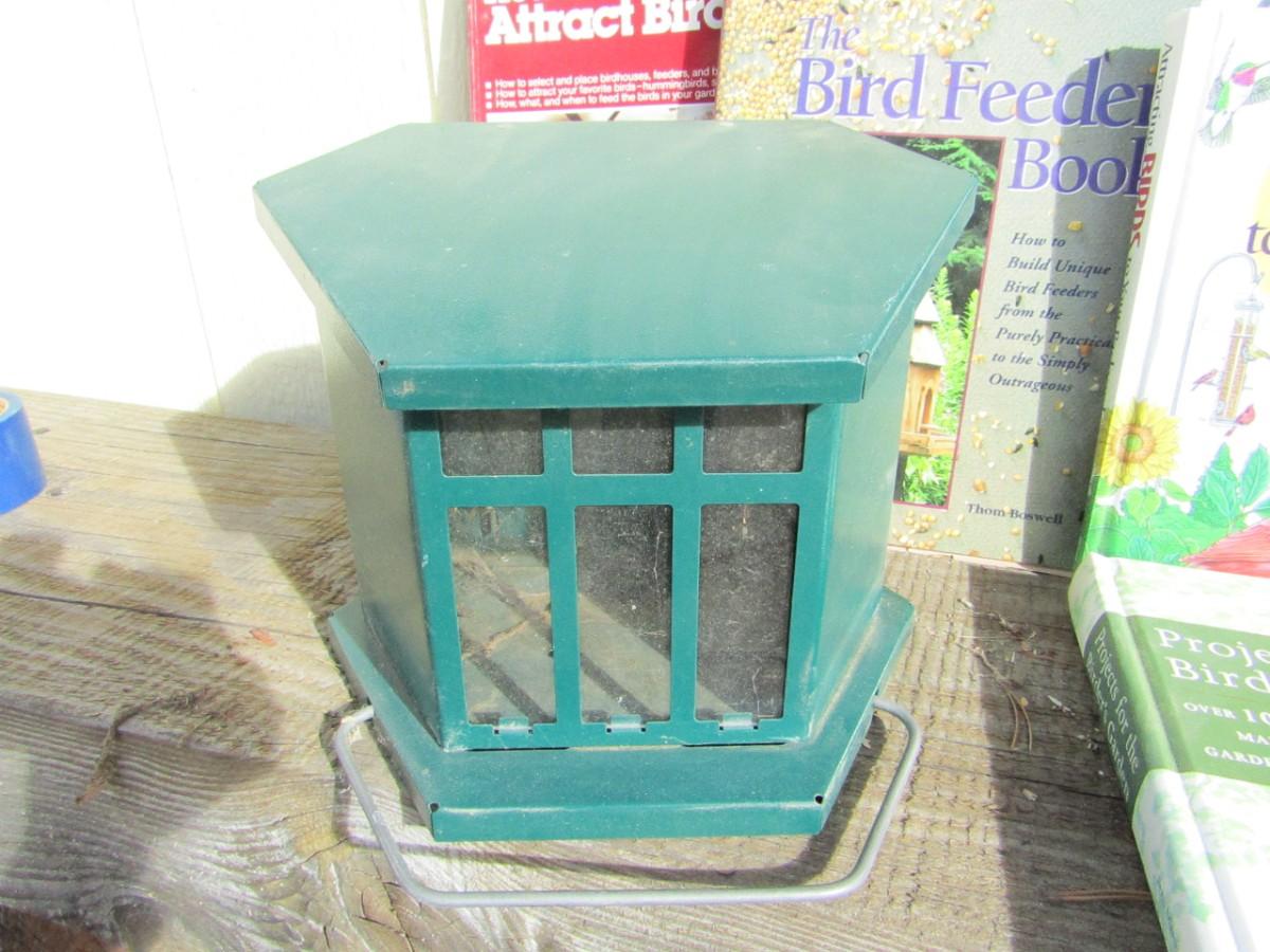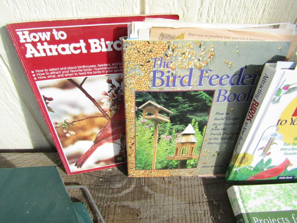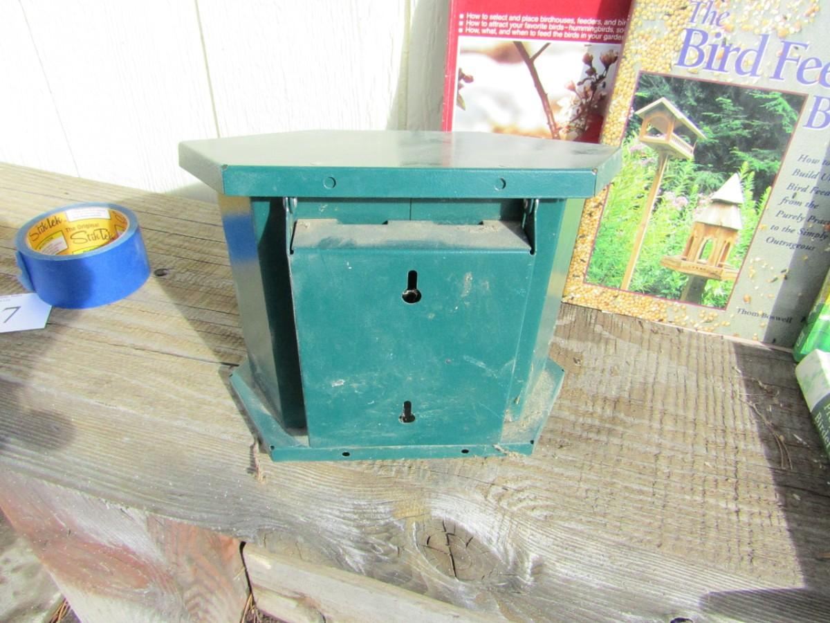 METAL BIRD FEEDER AND BOOKS ON BIRD FEEDERS