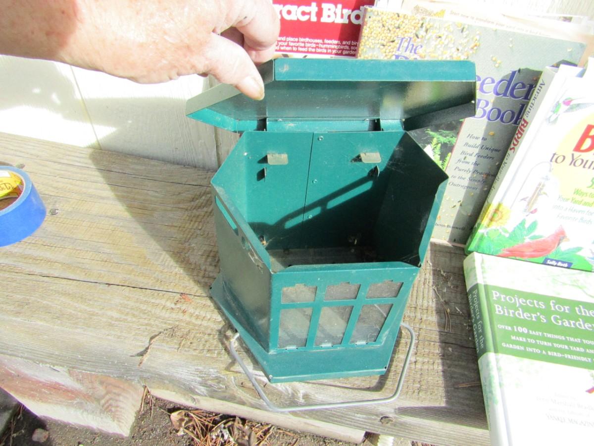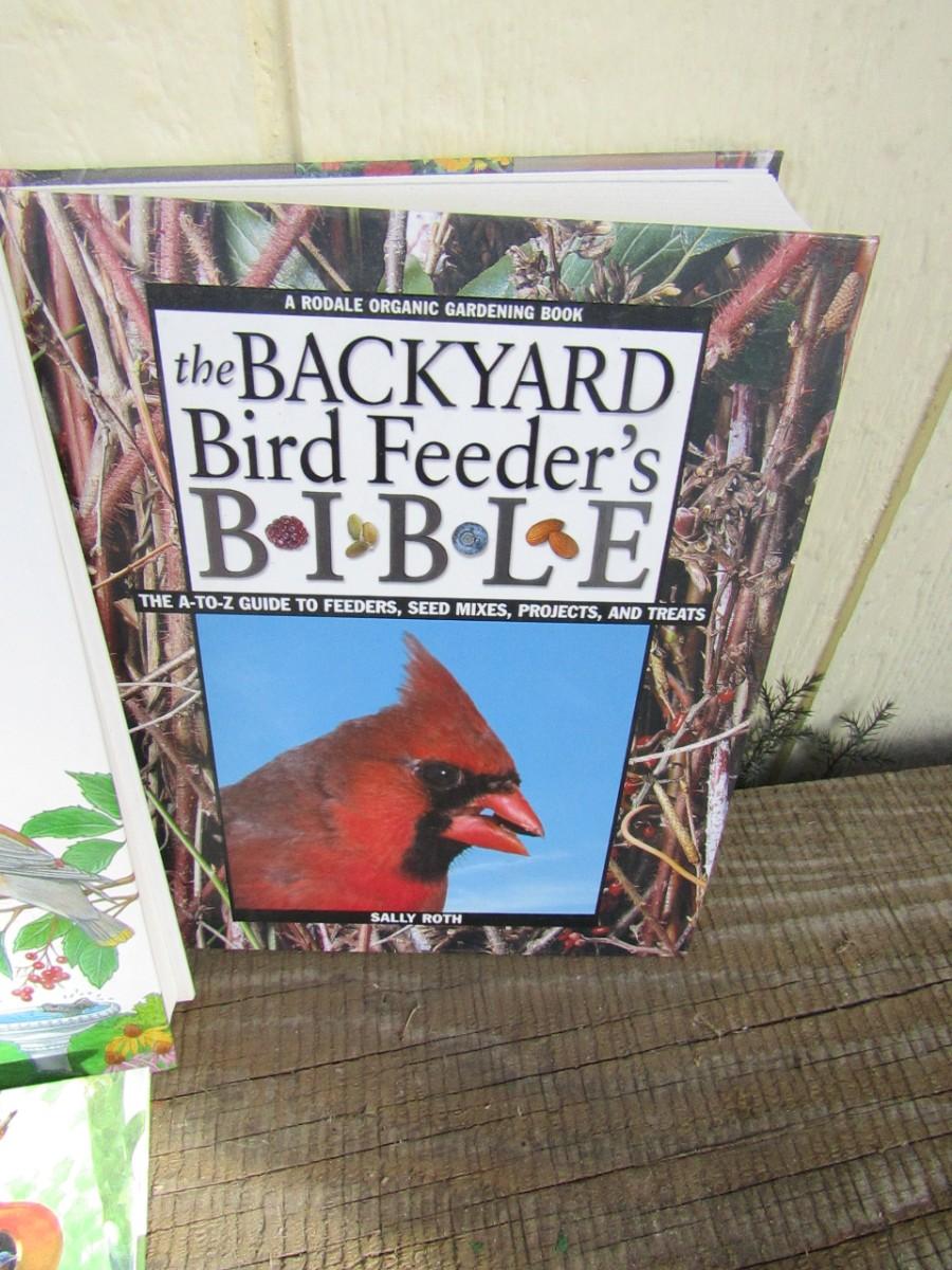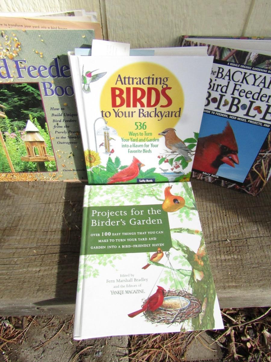 METAL BIRD FEEDER AND BOOKS ON BIRD FEEDERS