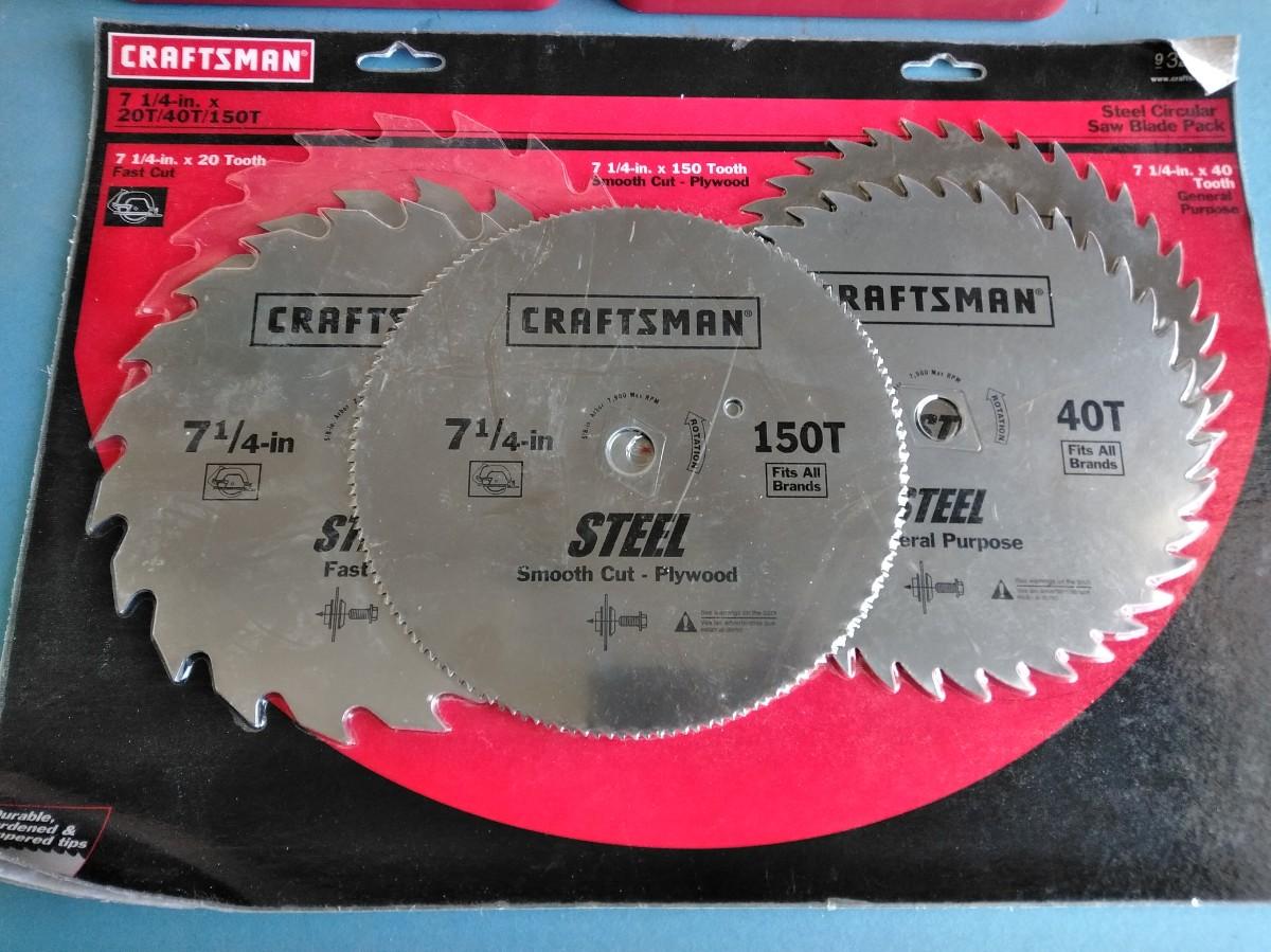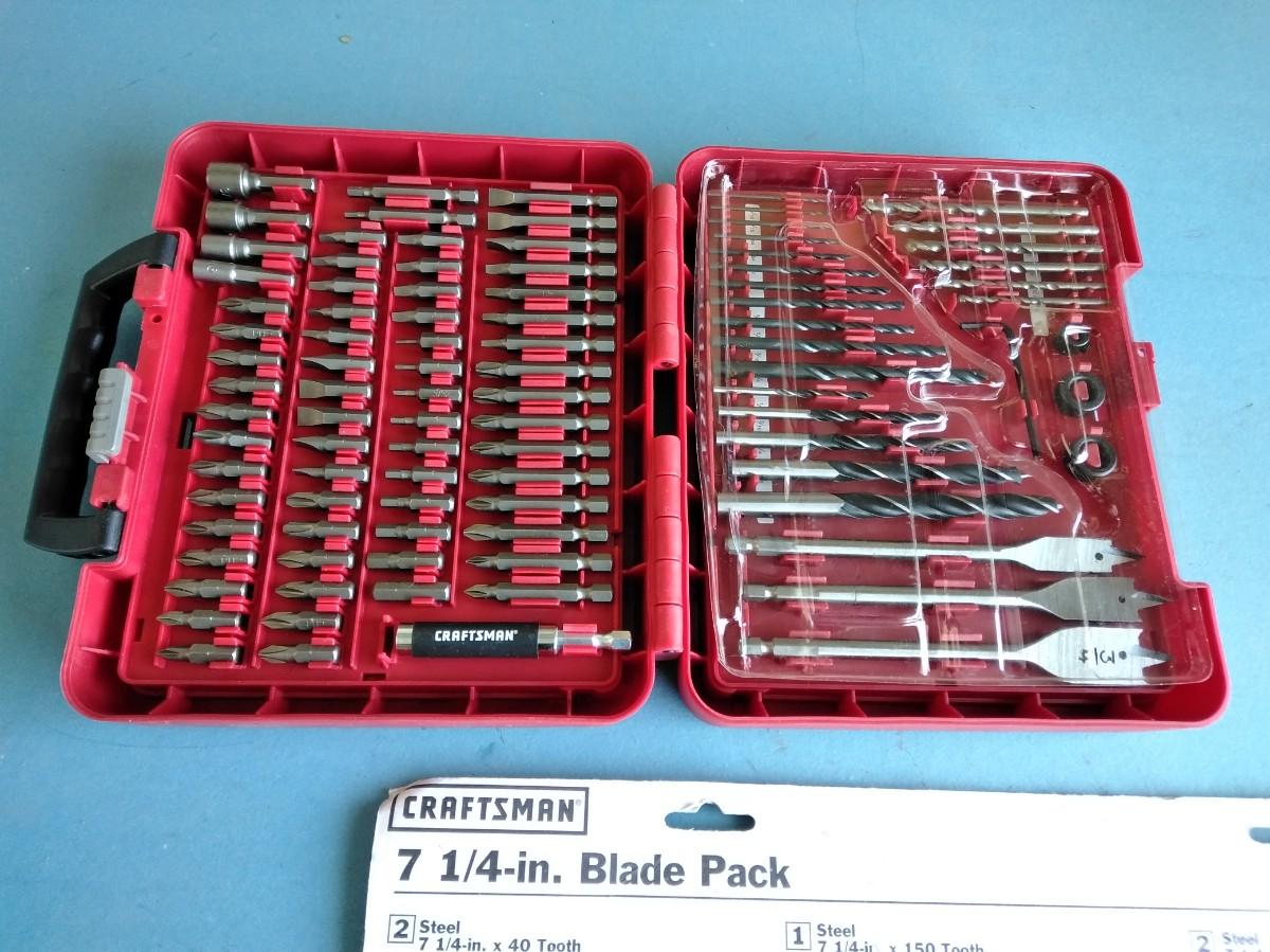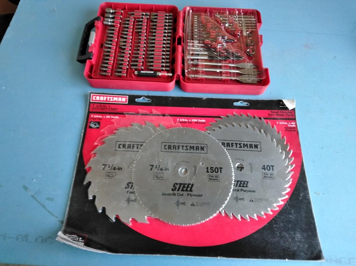 THREE NEW CRAFTSMAN 7 1/4" STEEL BLADES AND CRAFTSMAN BIT SET