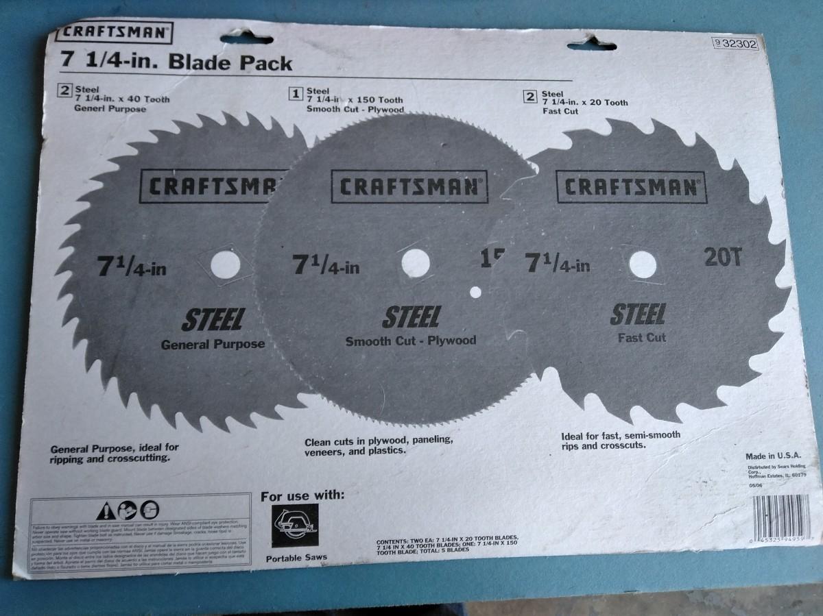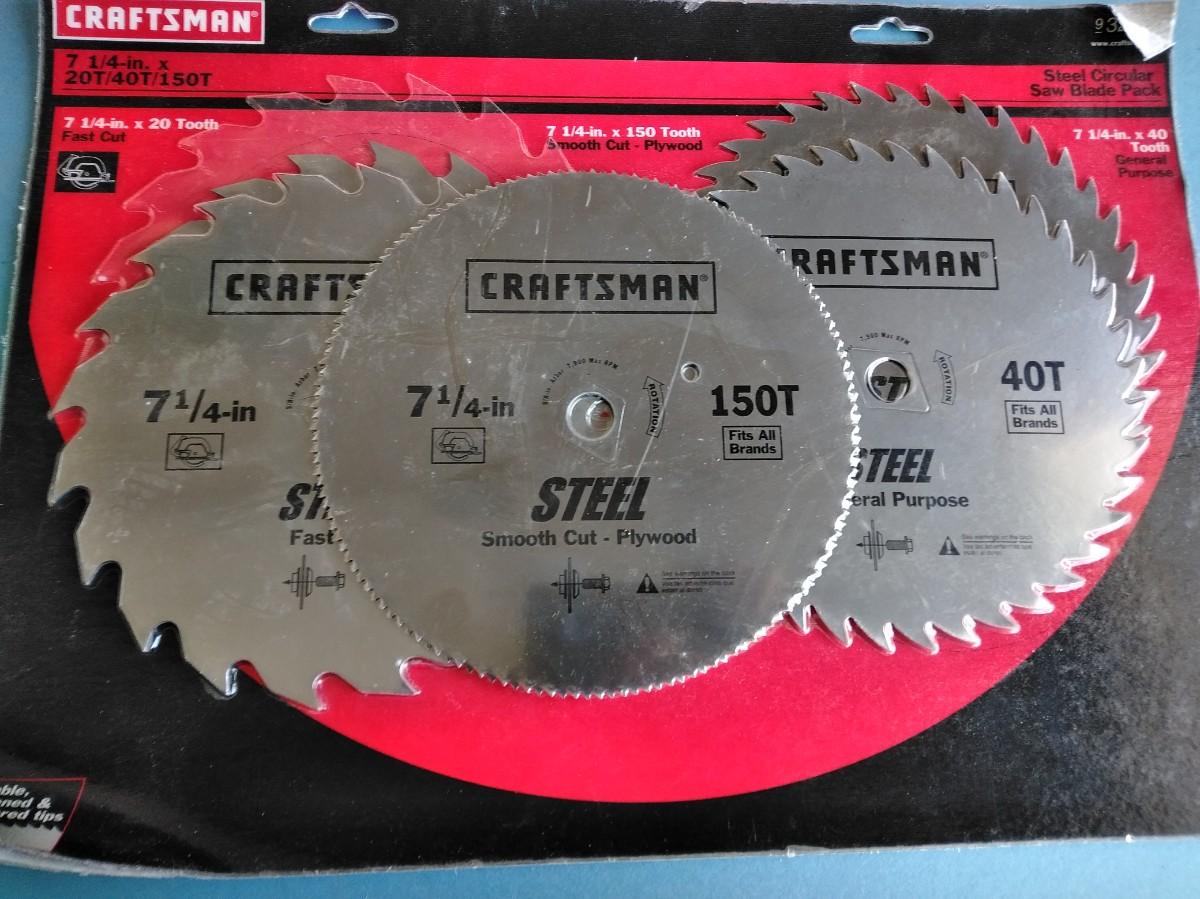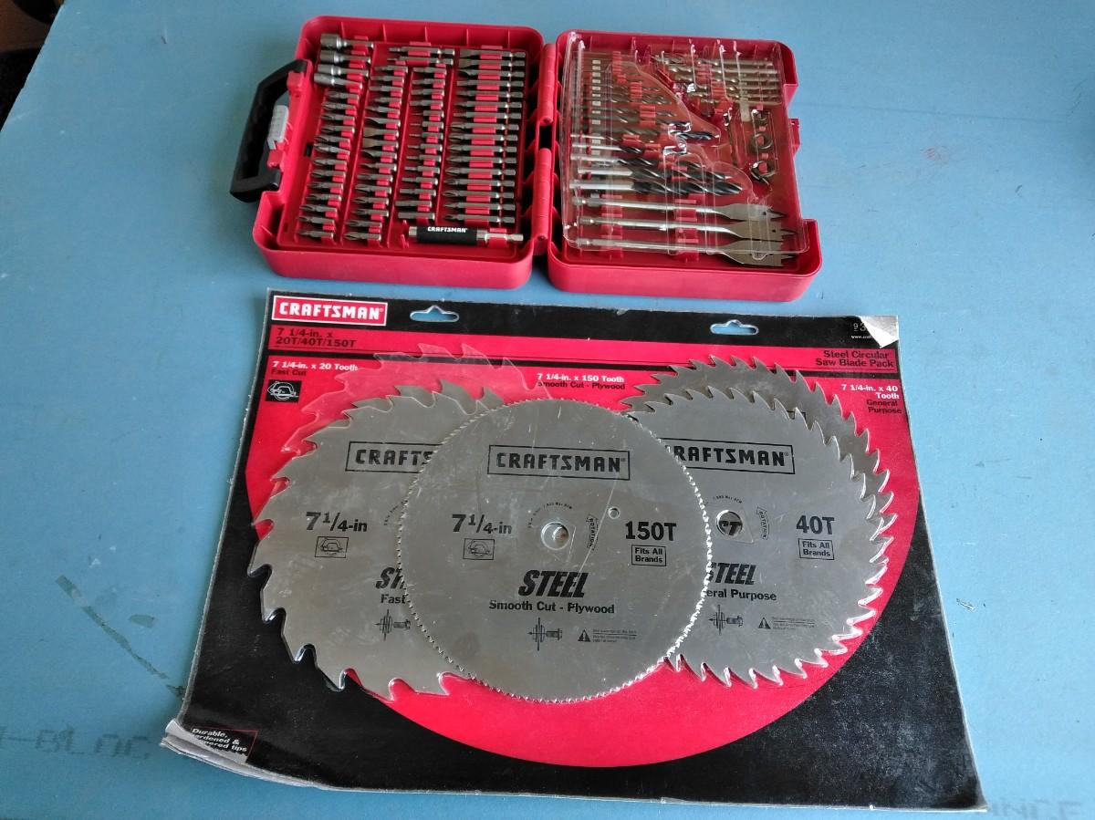 THREE NEW CRAFTSMAN 7 1/4" STEEL BLADES AND CRAFTSMAN BIT SET