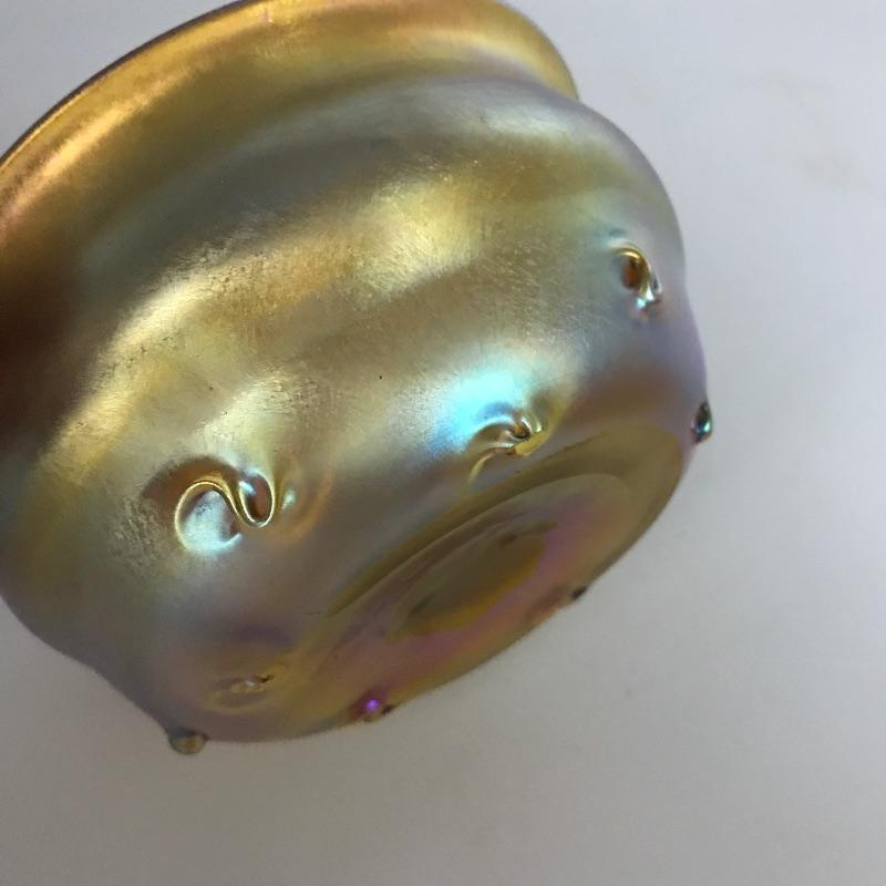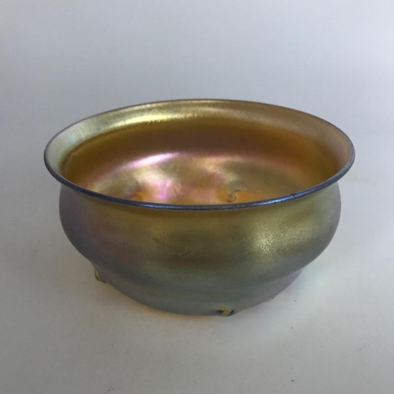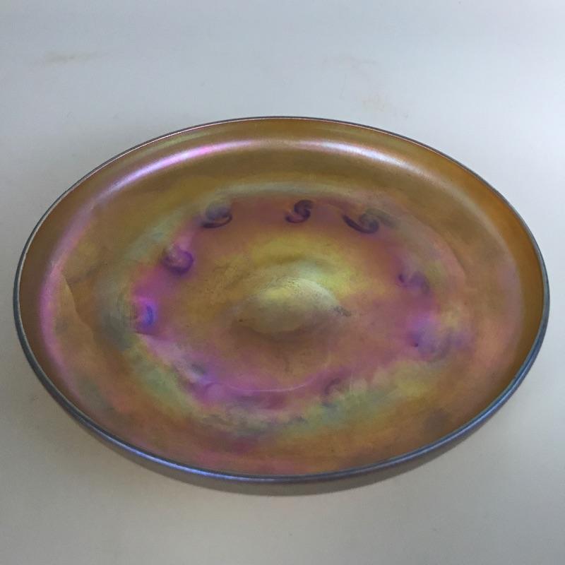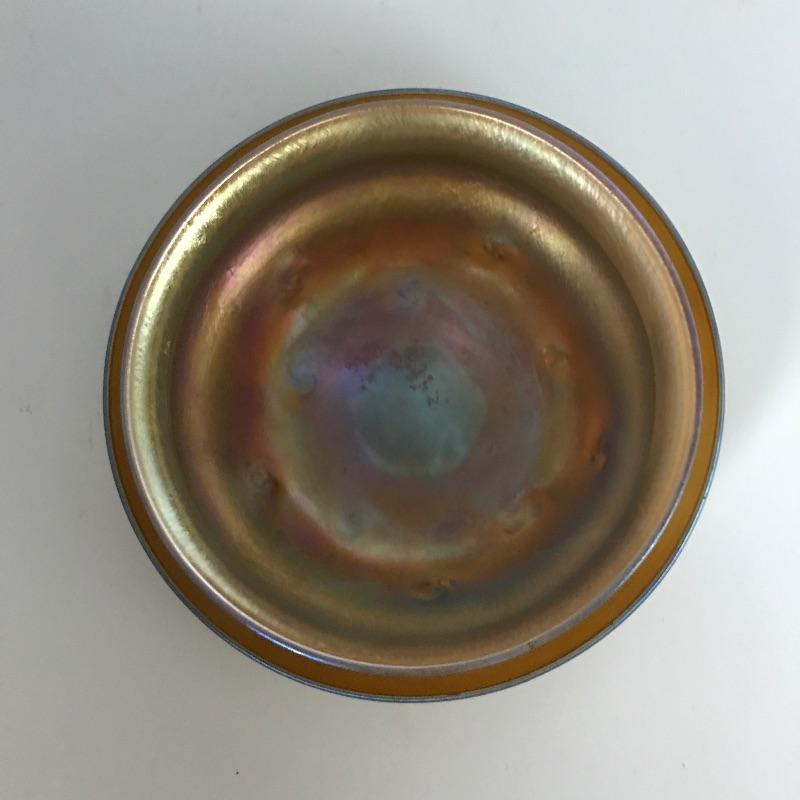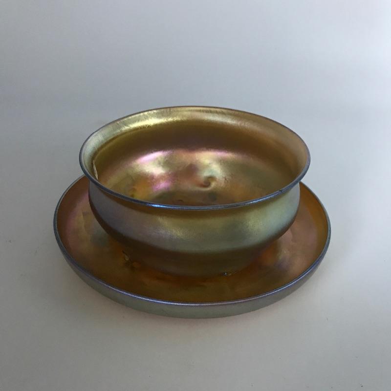 Gorgeous gold translucent set by Tiffany. Includes small bowl and matching plate. Marked LCT on each piece. Excellent condition. Bowl measures 4.5” d x 2.5” high and plate is 6” diameter. Great detail on bottom of both.