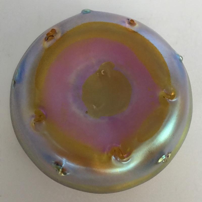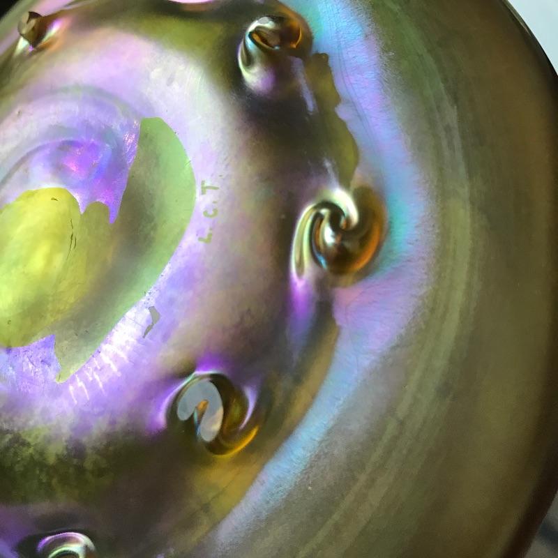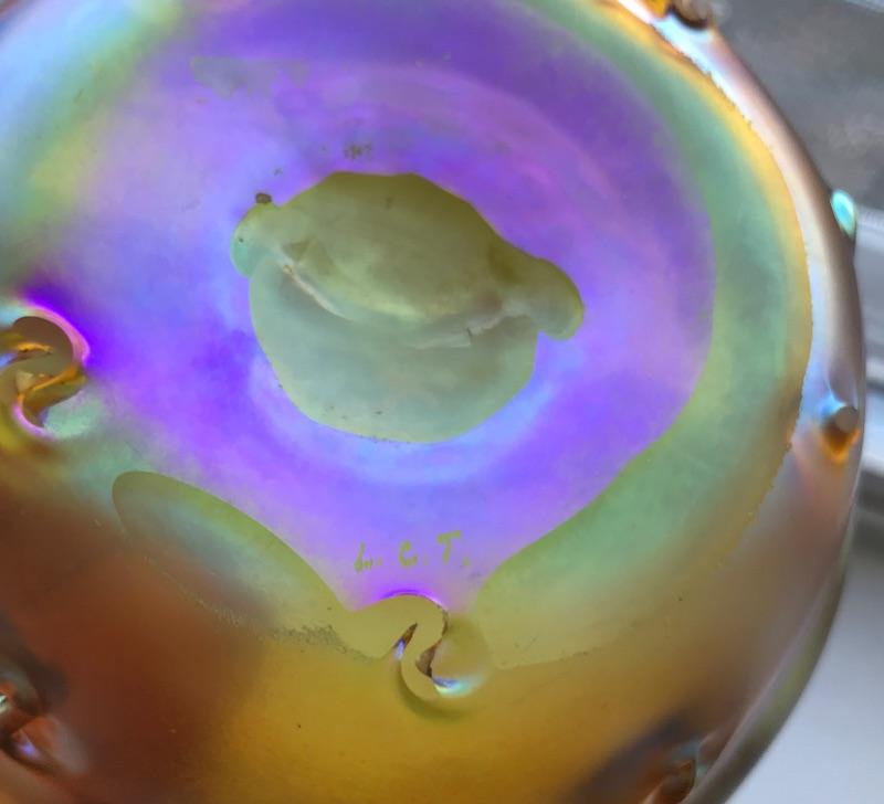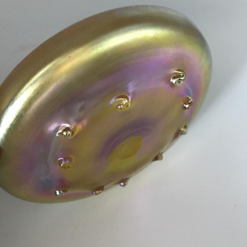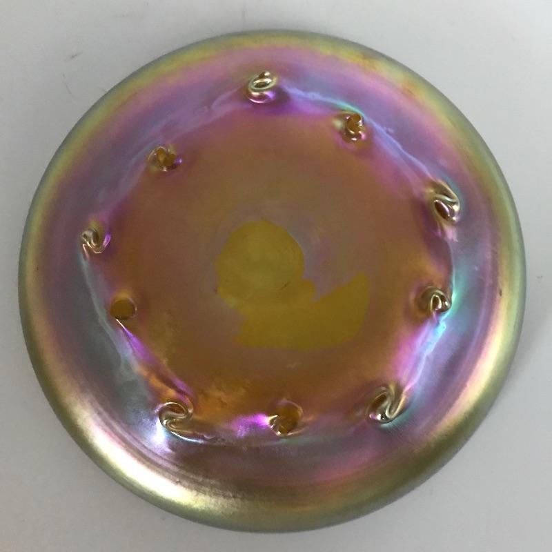 Gorgeous gold translucent set by Tiffany. Includes small bowl and matching plate. Marked LCT on each piece. Excellent condition. Bowl measures 4.5” d x 2.5” high and plate is 6” diameter. Great detail on bottom of both.