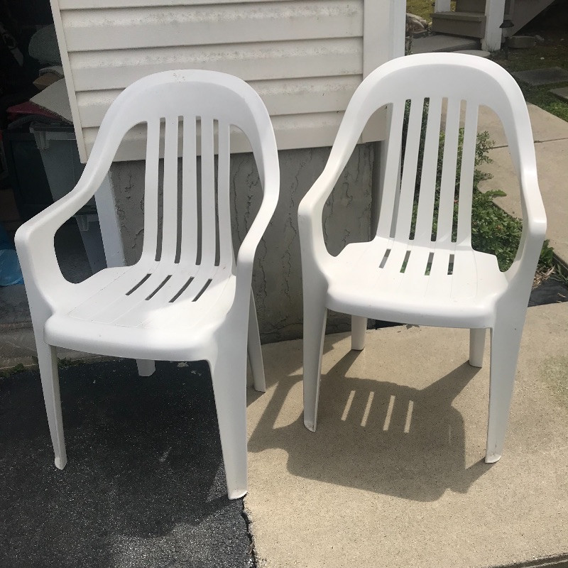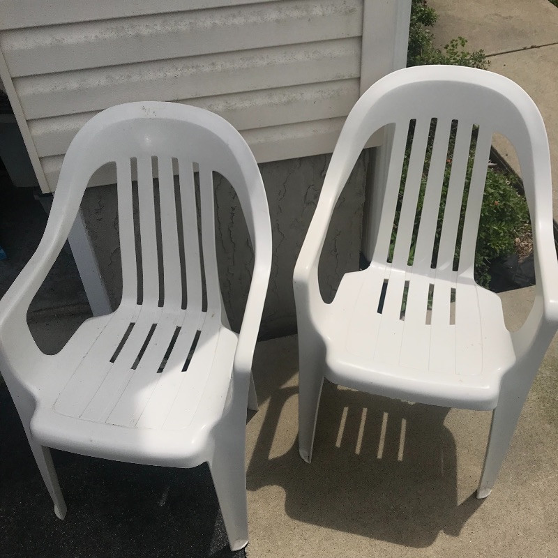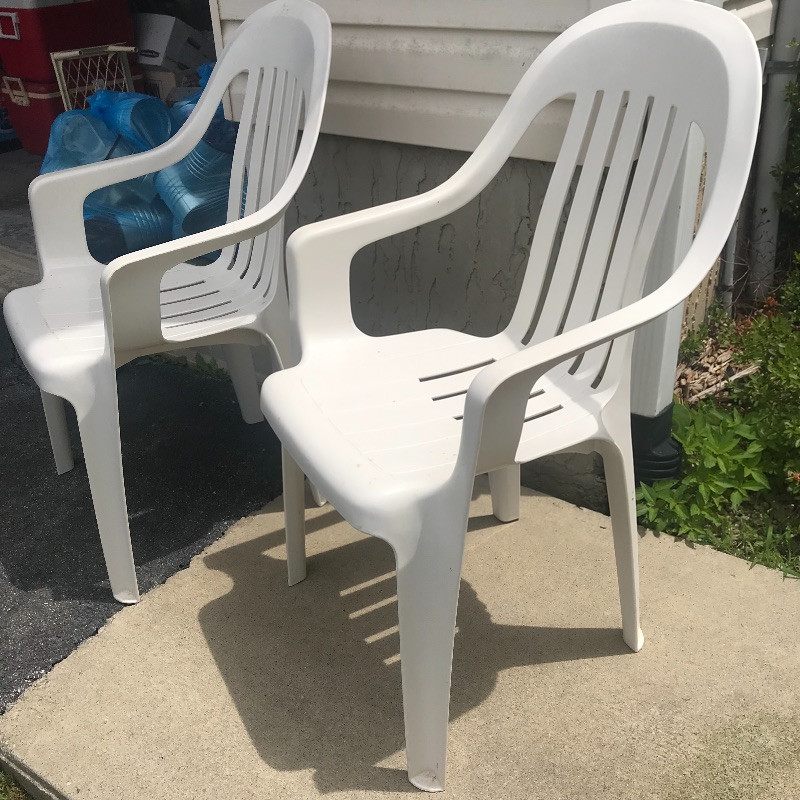 These two white plastic chairs are like new and have been garage kept and barely been used. Local pick up only.