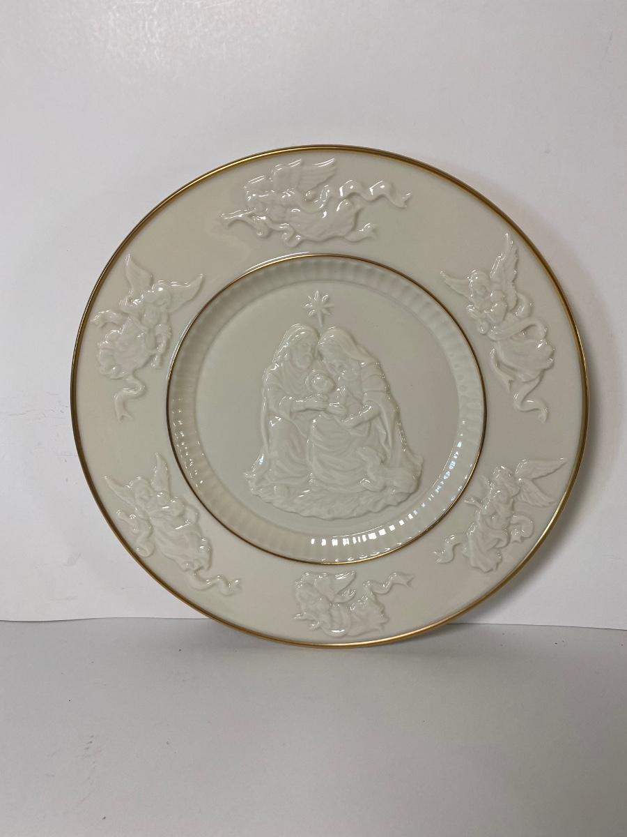Includes 1991 Lenox Nativity Bowl, a rose trinket dish with gold rim and a plate with gold rim.