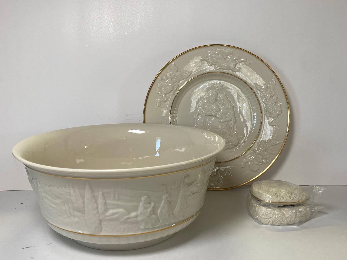 LOT267C: Lenox Collection: Nativity Bowl, Plate, & Rose Trinket Dish