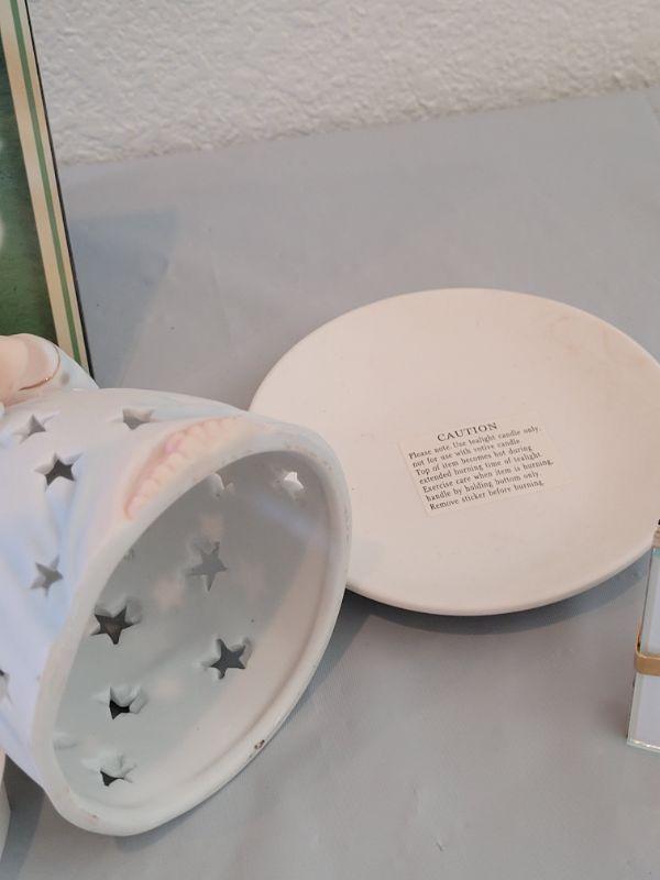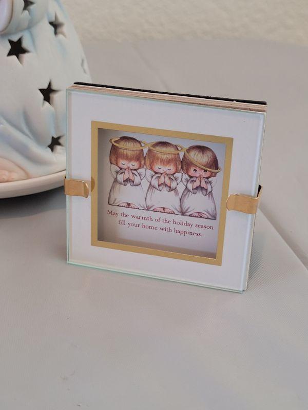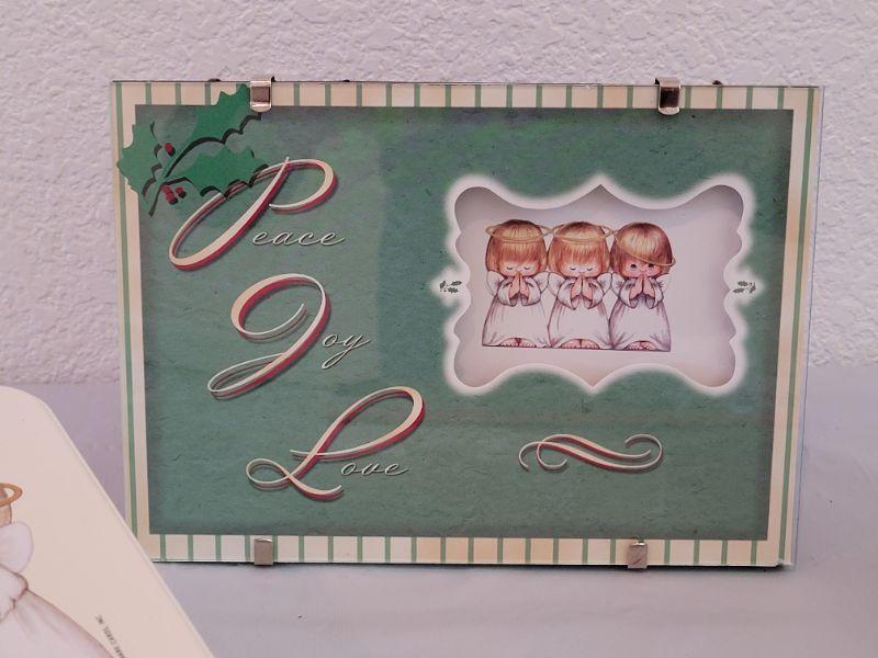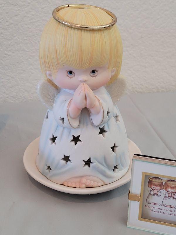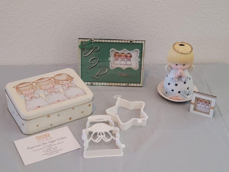 Lot 268: 3 Angels Cookie Tin Set, Framed Art and Candle Luminary
