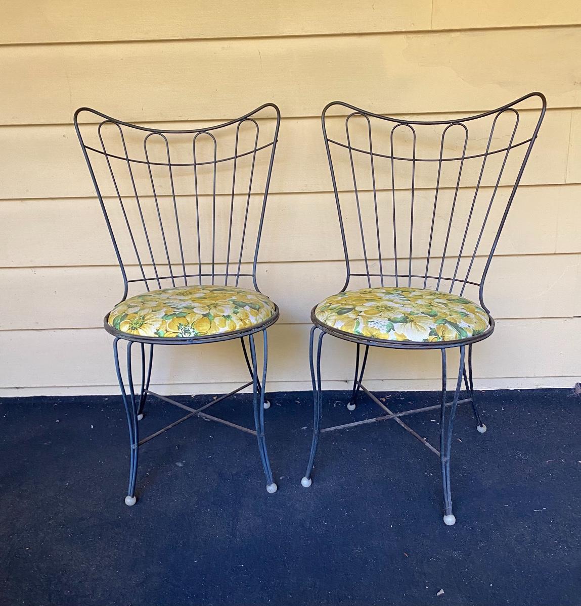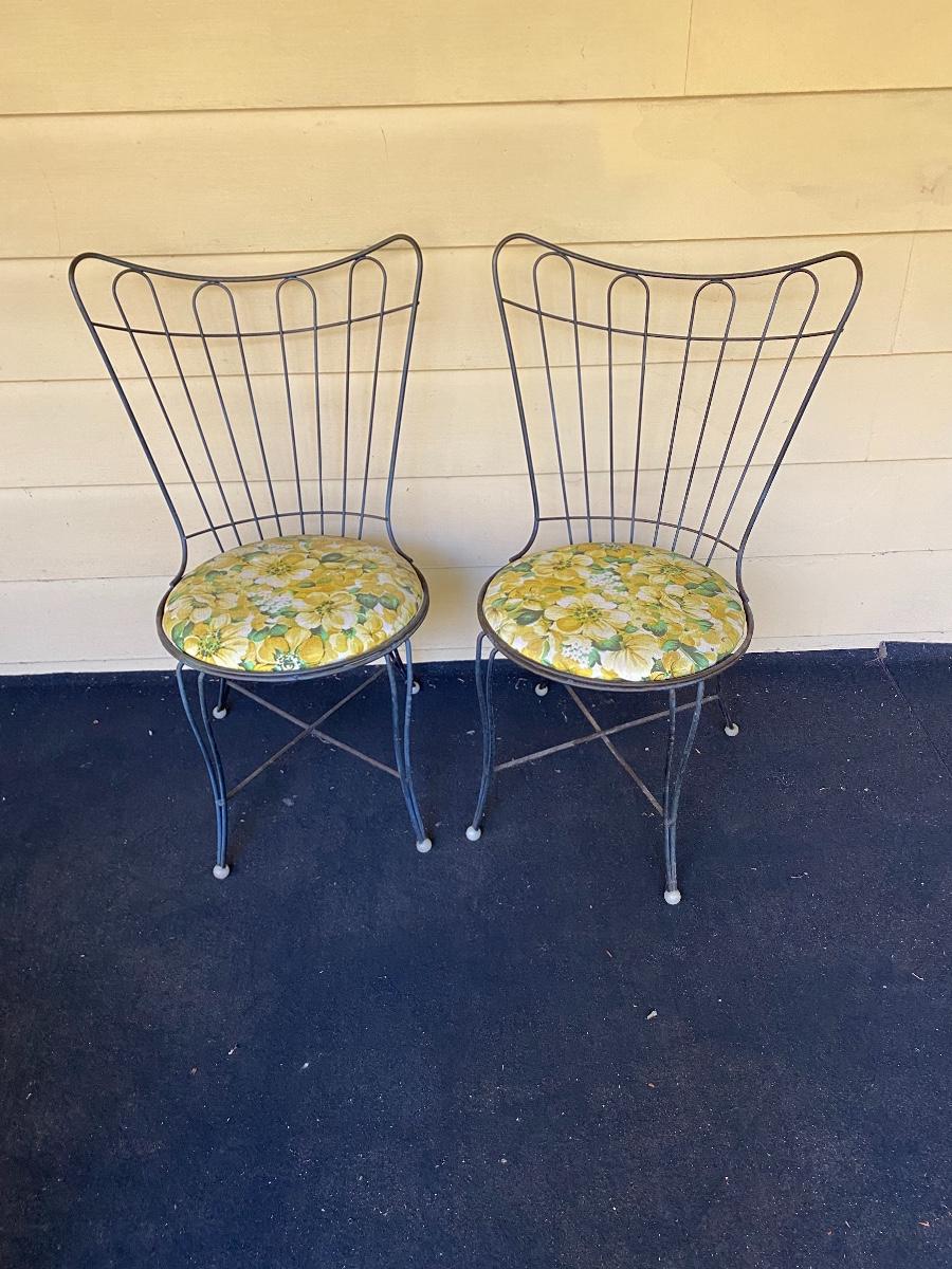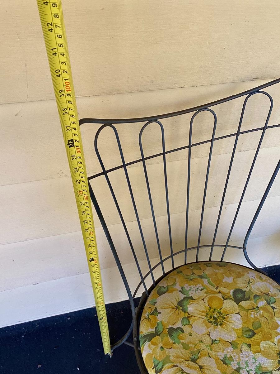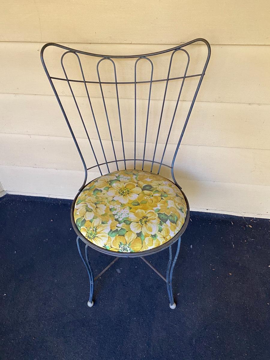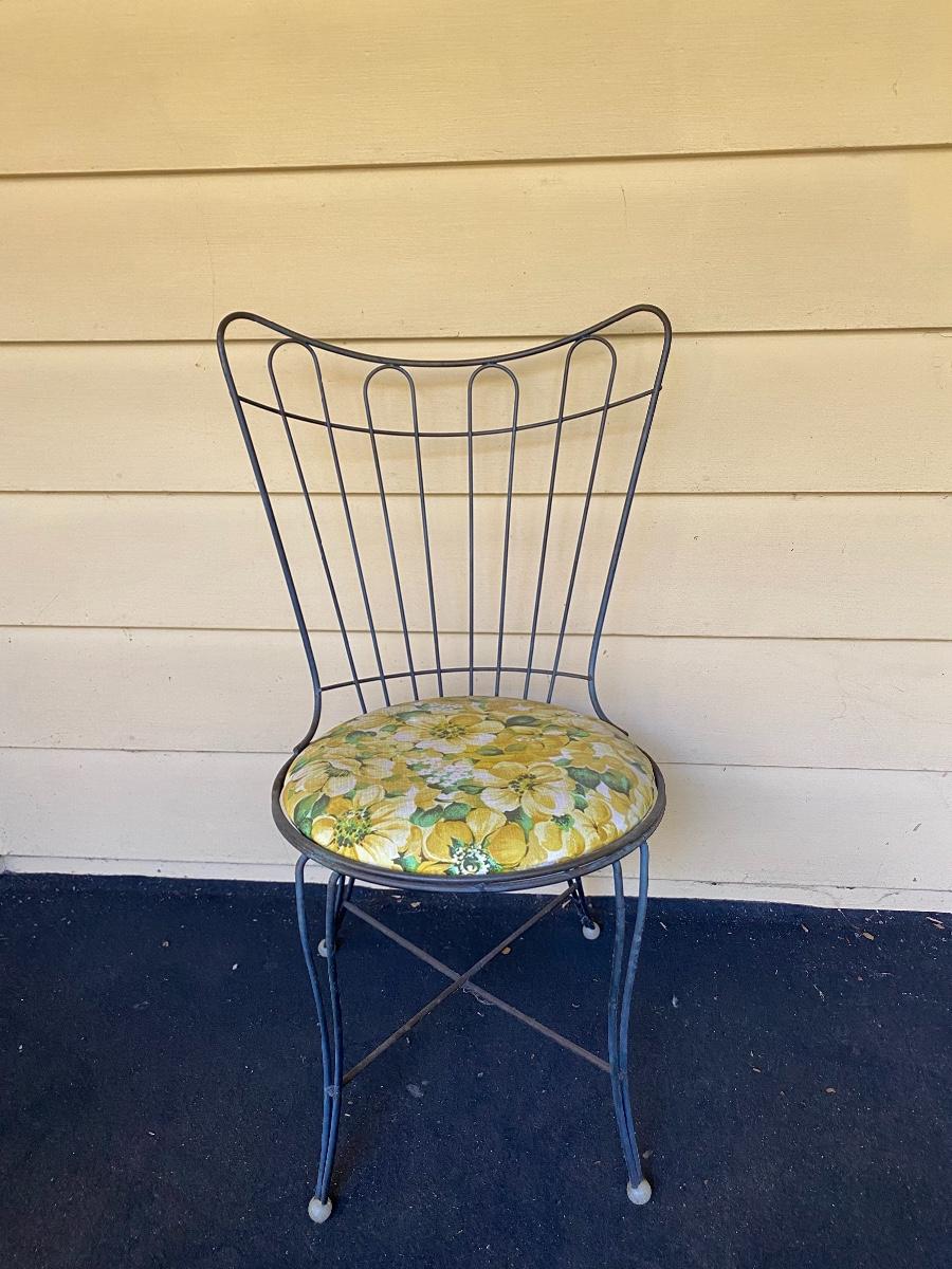 Vintage metal outdoor table and 6 matching chairs. Table comes with vintage yellow floral tablecloth. Yellow print matches chair seats. The seats can come off and be recovered. The metal is lightweight, not heavy cast. The pictures show condition, measurements if taken, and what is included in the lot. Due to the large amount that we photograph and the time frame, we are not always able to take measurements. All items unless noted, are pre-owned and have been used. If you purchased furniture, you must bring help. We do not allow one person to carry large furniture out on their own. Bring help, tools and a truck for the safety of our client’s homes, and your personal safety. Company policy. Thank you.