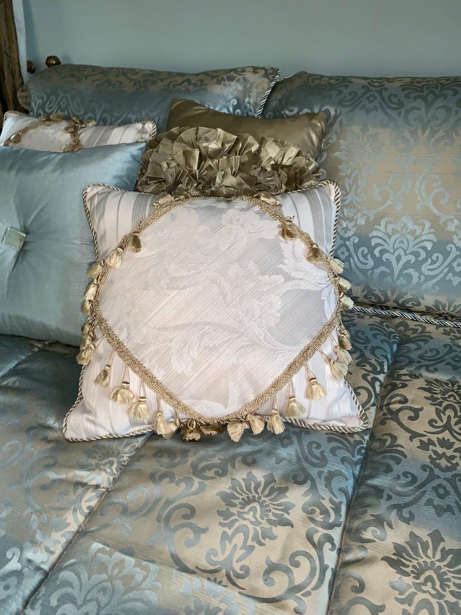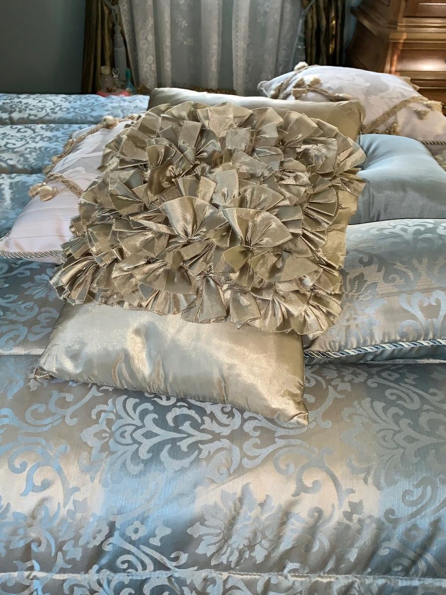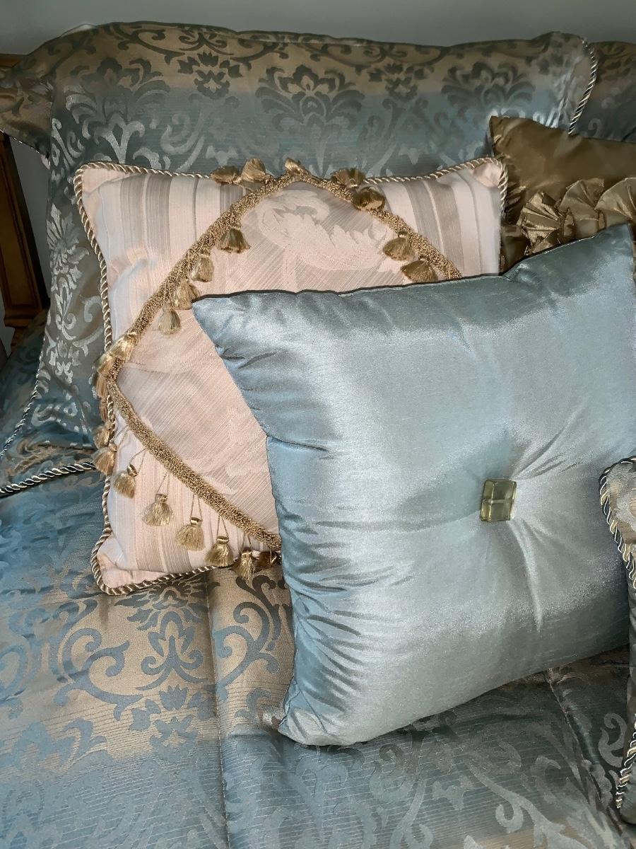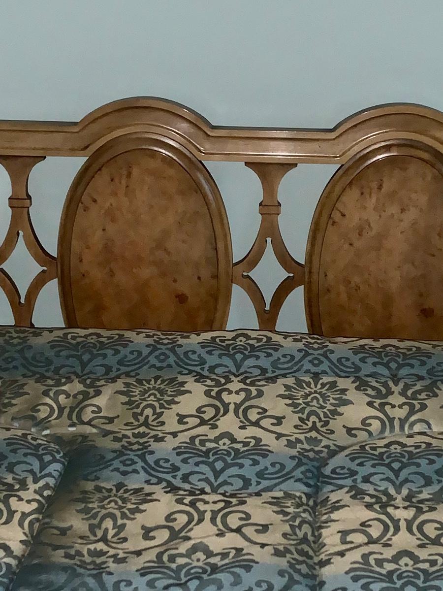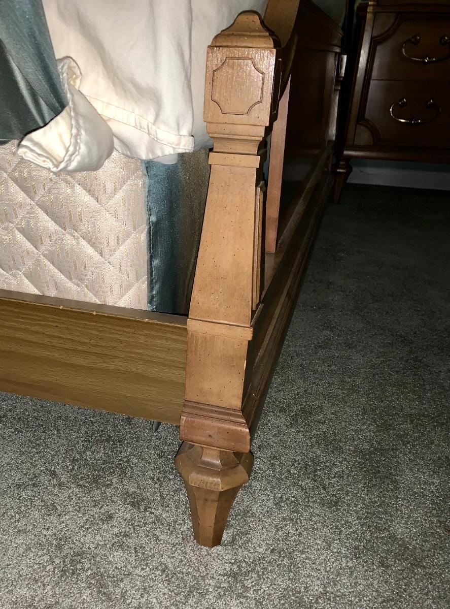 Beautiful, well made and taken care of Head Board, foot board and bedding: mattress & box spring if you want as well.