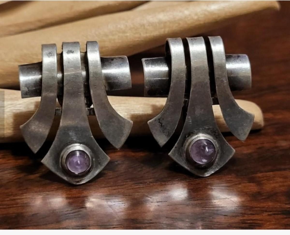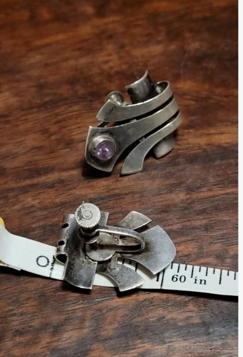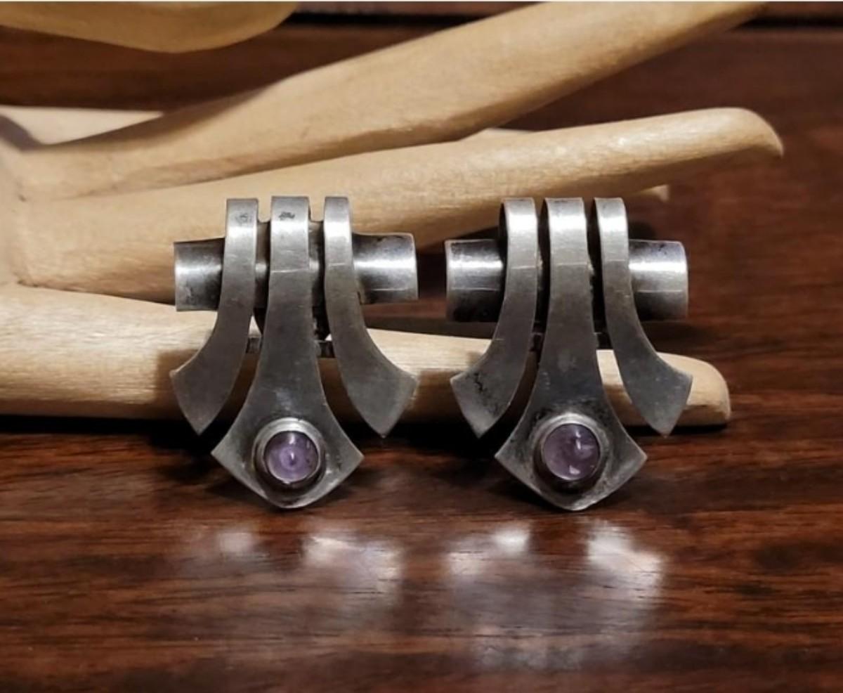 Lot 268: Pre-1948 Mexican Sterling & Amethyst Screwback Earrings