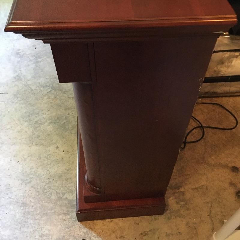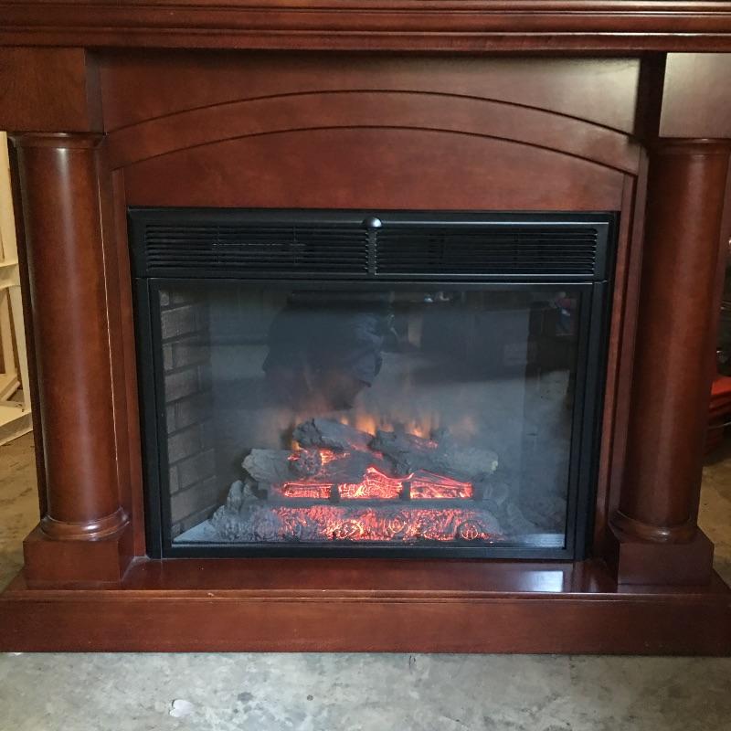 Winter is almost here and this piece will add handsome elegance to your room whilst providing some much needed warmth for the months ahead. This electric fireplace comes with adjustable flame lighting and temperature control for the heater in a beautiful surround with mantle. Fireplace measures 18” x 53” x 43”.