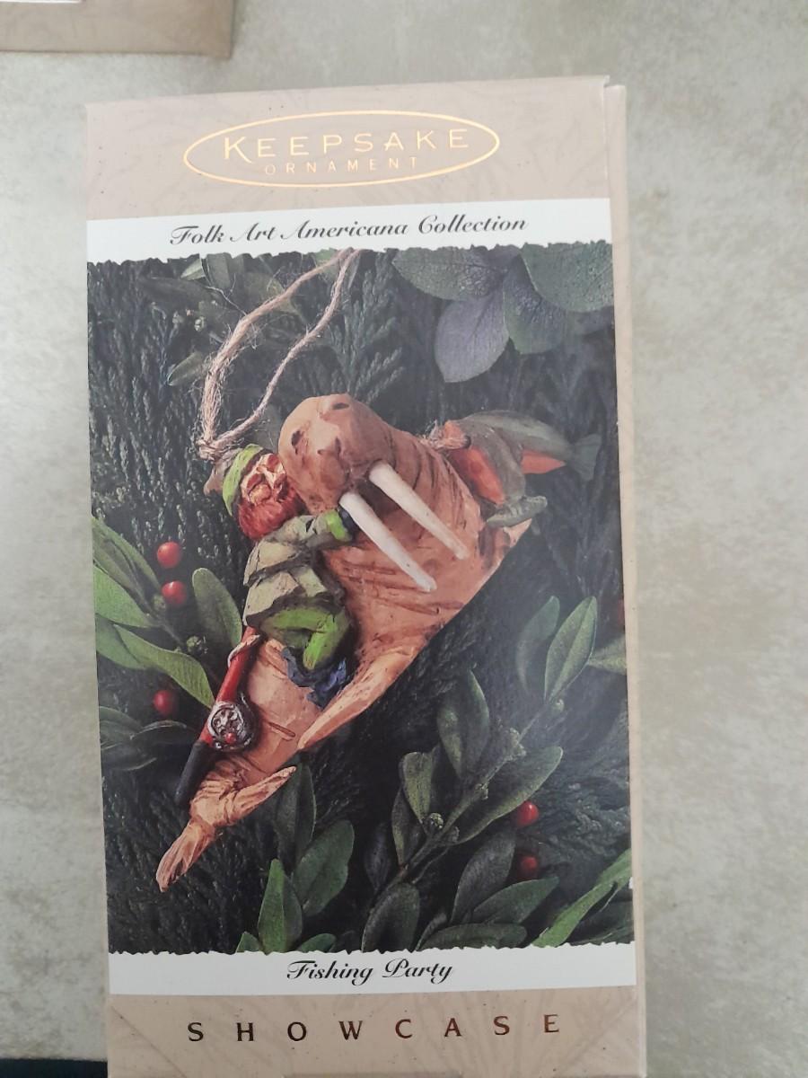 LOT 268 HALLMARK CHRISTMAS ORNAMENTS SANTA, FISHING PARTY, CAROLING ANGEL